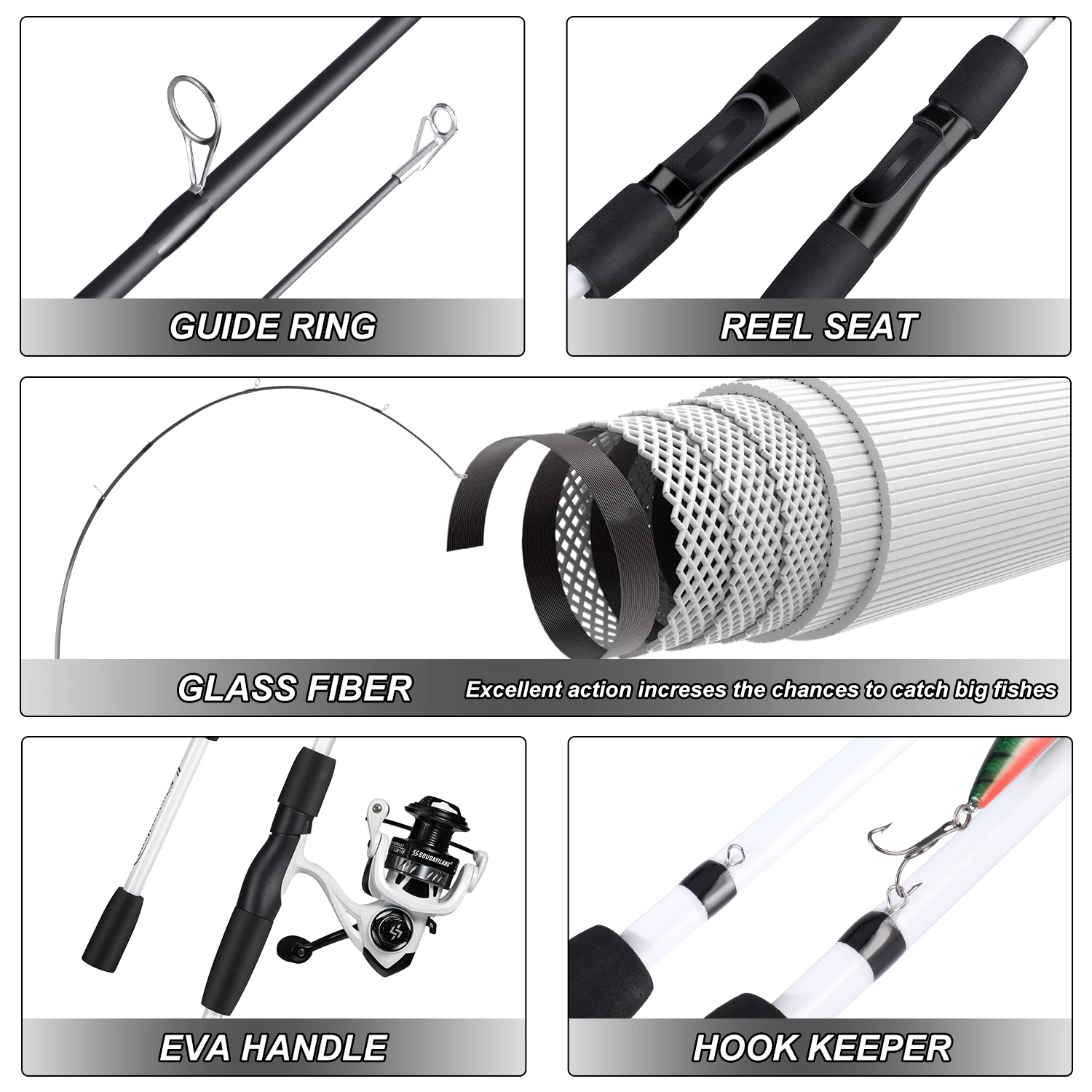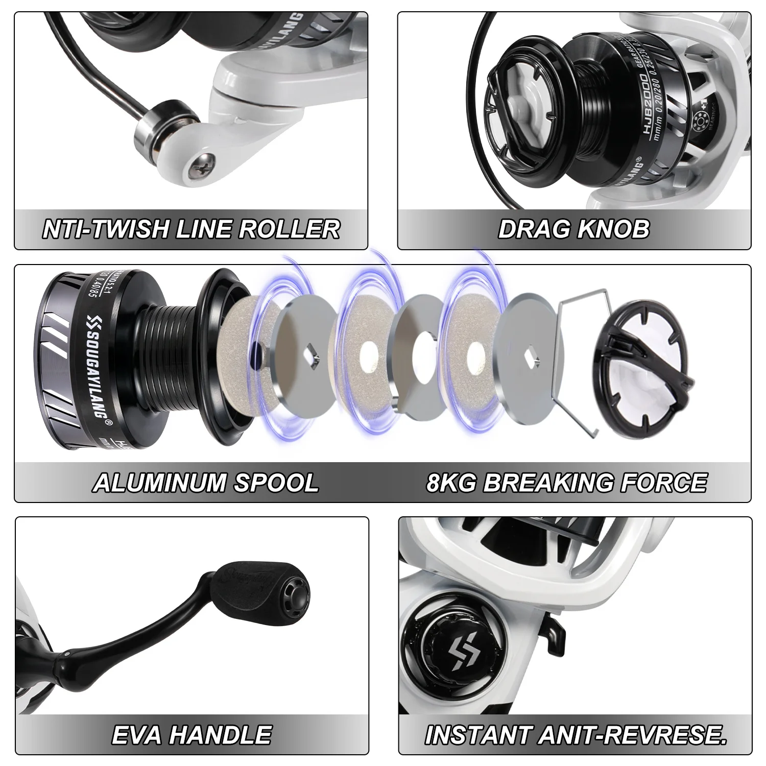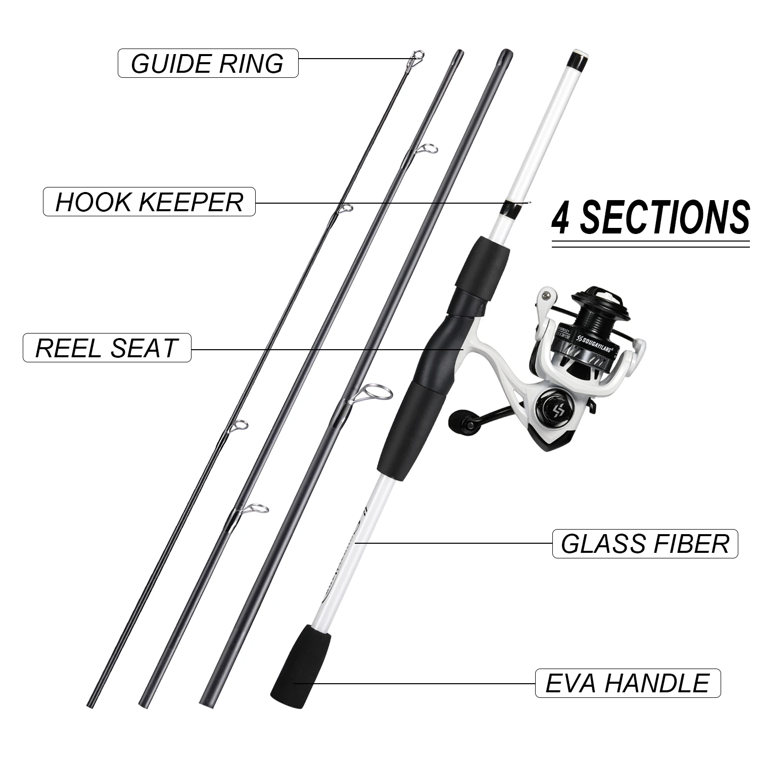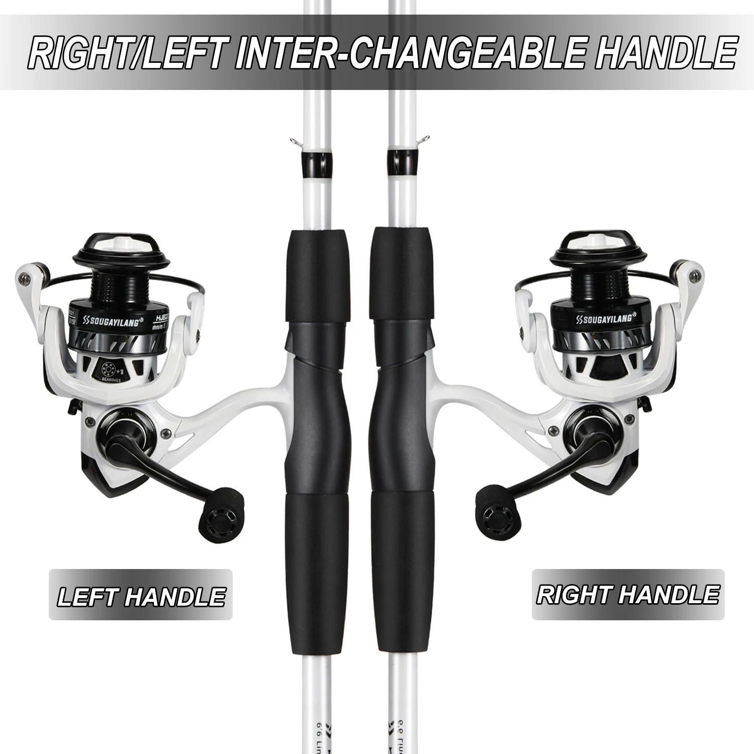 Sougayilang, kits completos de pesca de 1,98m, caña de pescar giratoria de 4 secciones y carrete de pesca 5,2:1 y carrete de pesca y línea, bolsa de gancho, combinación de herramientas