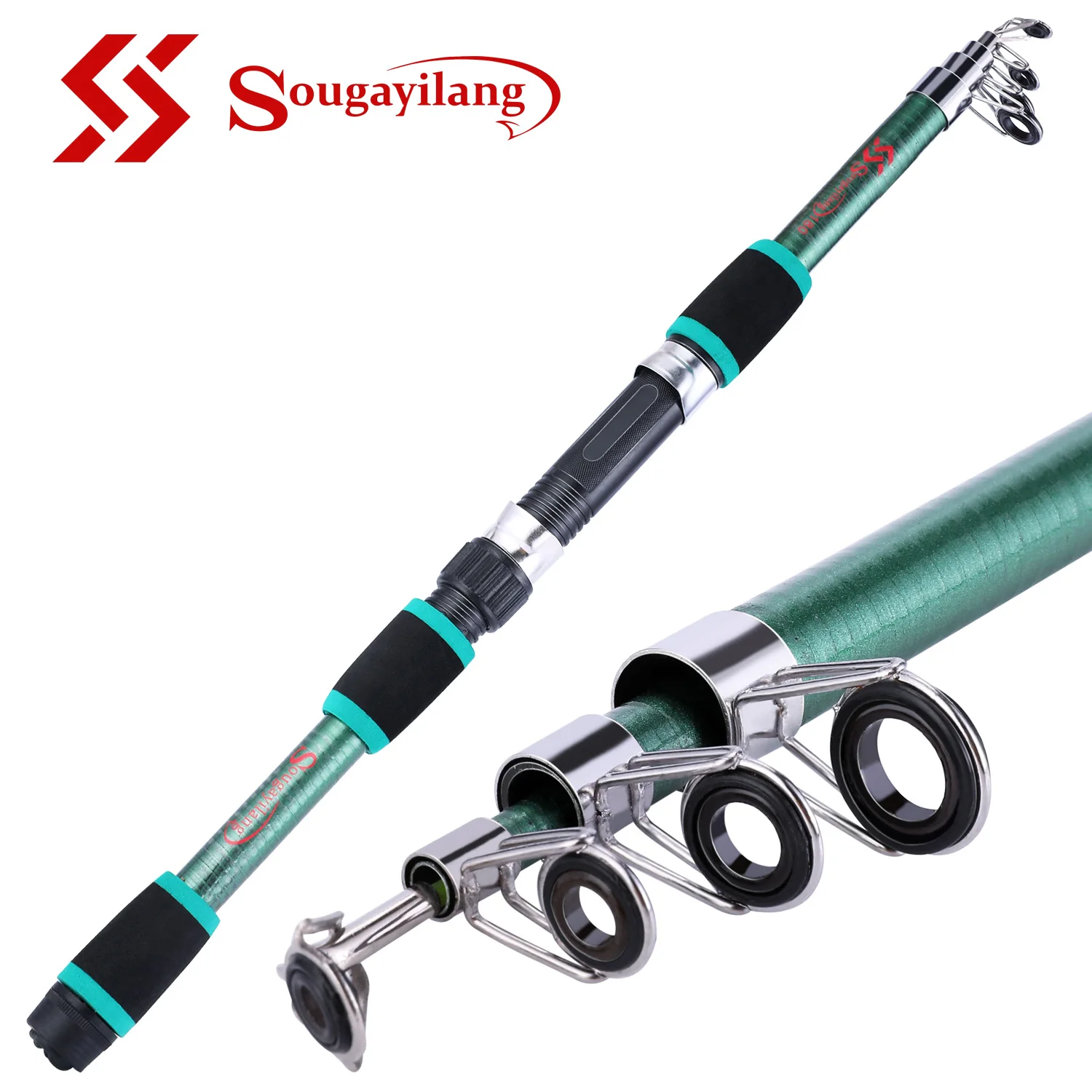 Sougayilang caña de pescar giratoria fibra de carbono 99% trucha carpa caña de pescar telescópica 2.1M 2,4M 2.7M 3,0M señuelo caña de pescar aparejosDescripción del producto:1. Tipo de modelo: caña de pescar giratoria2.Longitud: 2,1 m, 2,4 m, 2,7 m, 3,0 m, 3,6 m3.Longitud cerrada: 64 cm4.Material: fibra de carbono5.Secciones: 5/6/6/76.Peso: 155-300 g7. Rango de peso del señuelo: aproximadamente 30-60 gEl paquete incluye:1 unidad * caña de pescar(No incluye carrete fiahing)