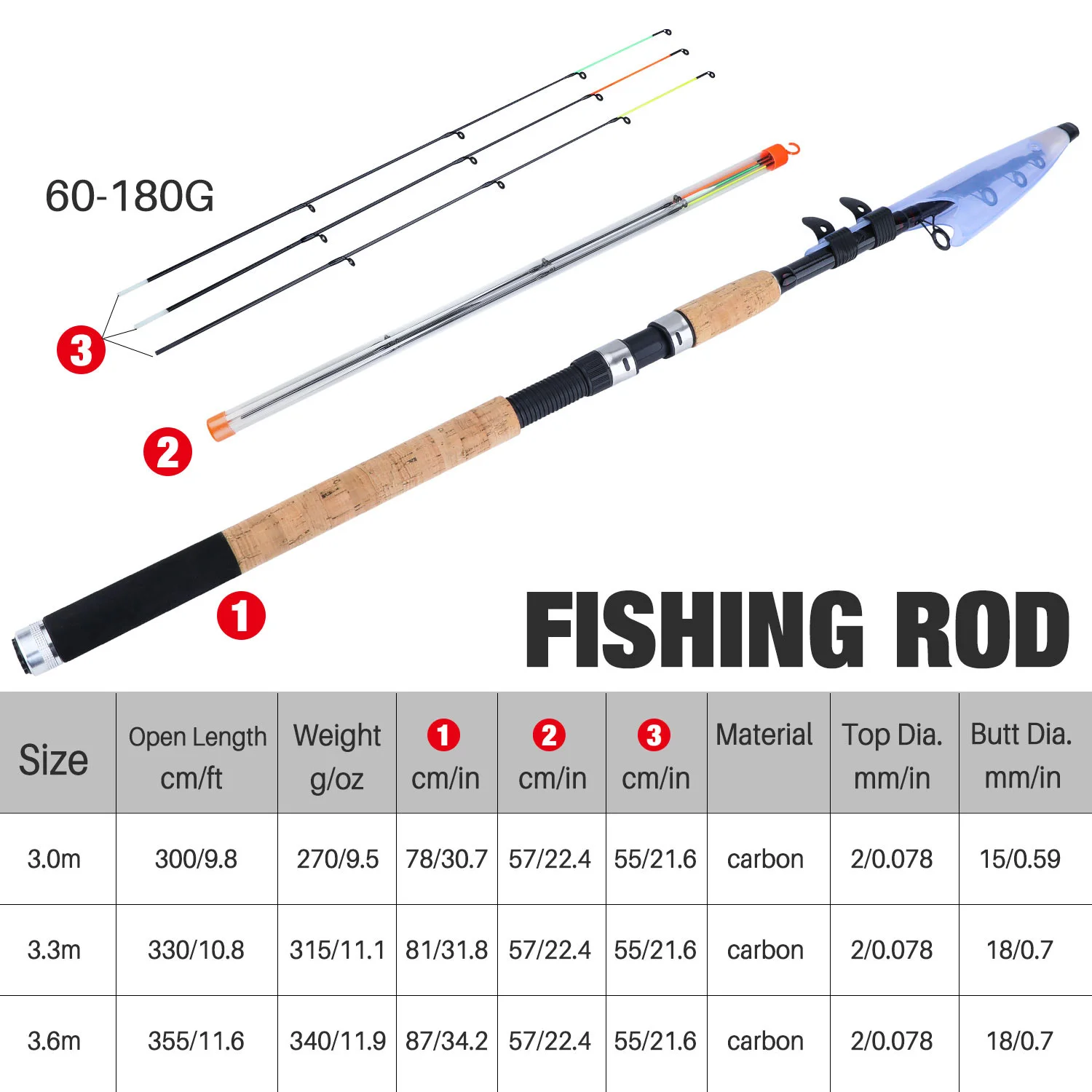 5.Portable closed length design for conveniently carrying around.Super large fishing weight