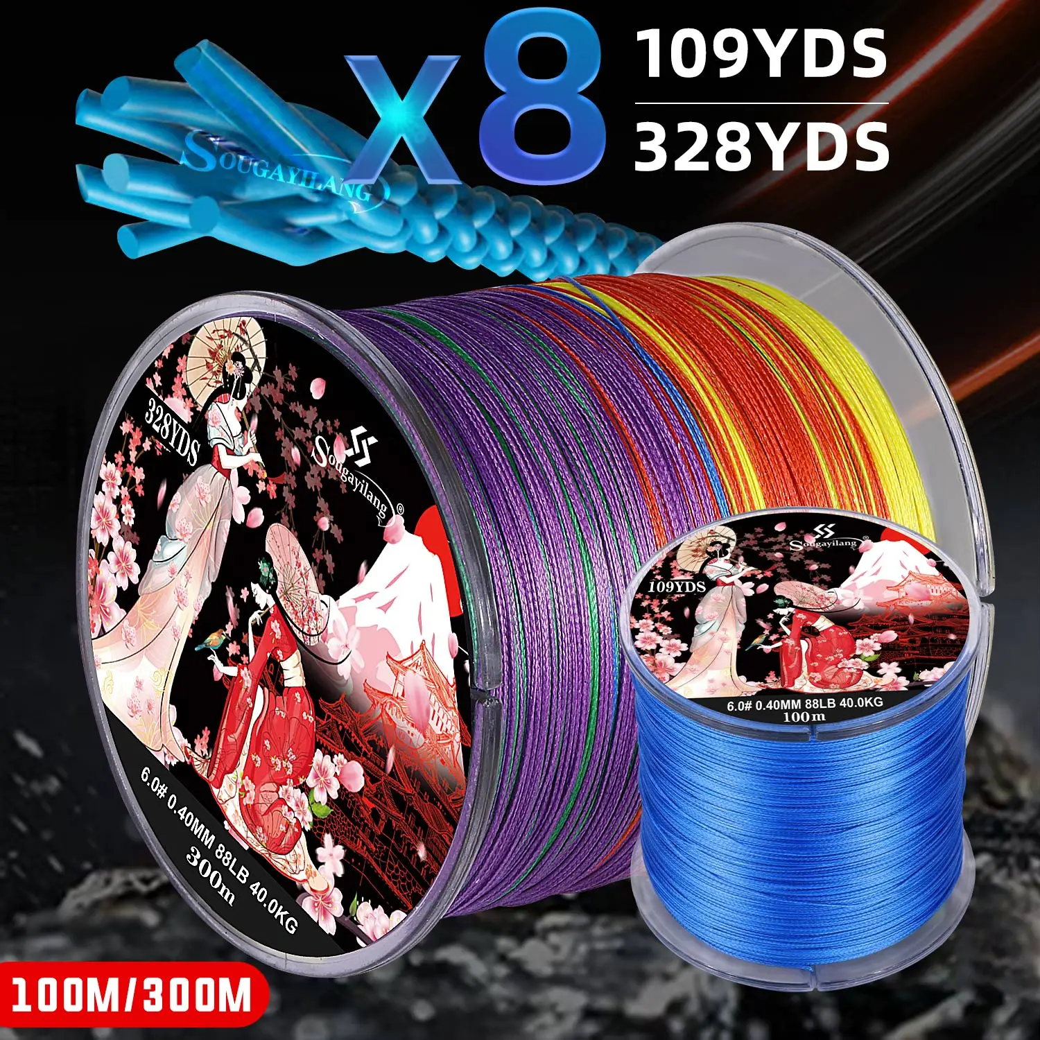 Sougayilang 300M 8 hebras línea de pesca trenzada multifilamento Japón líneas de pesca X8 hilo de pesca alambre trenzado lubina pesca de carpa