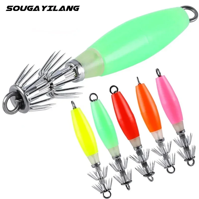 Sougayilang 5 uds anzuelo de calamar 5,8 cm 15g pulpo sepia señuelo de pesca cebo anzuelo de pesca pesca en alta mar
