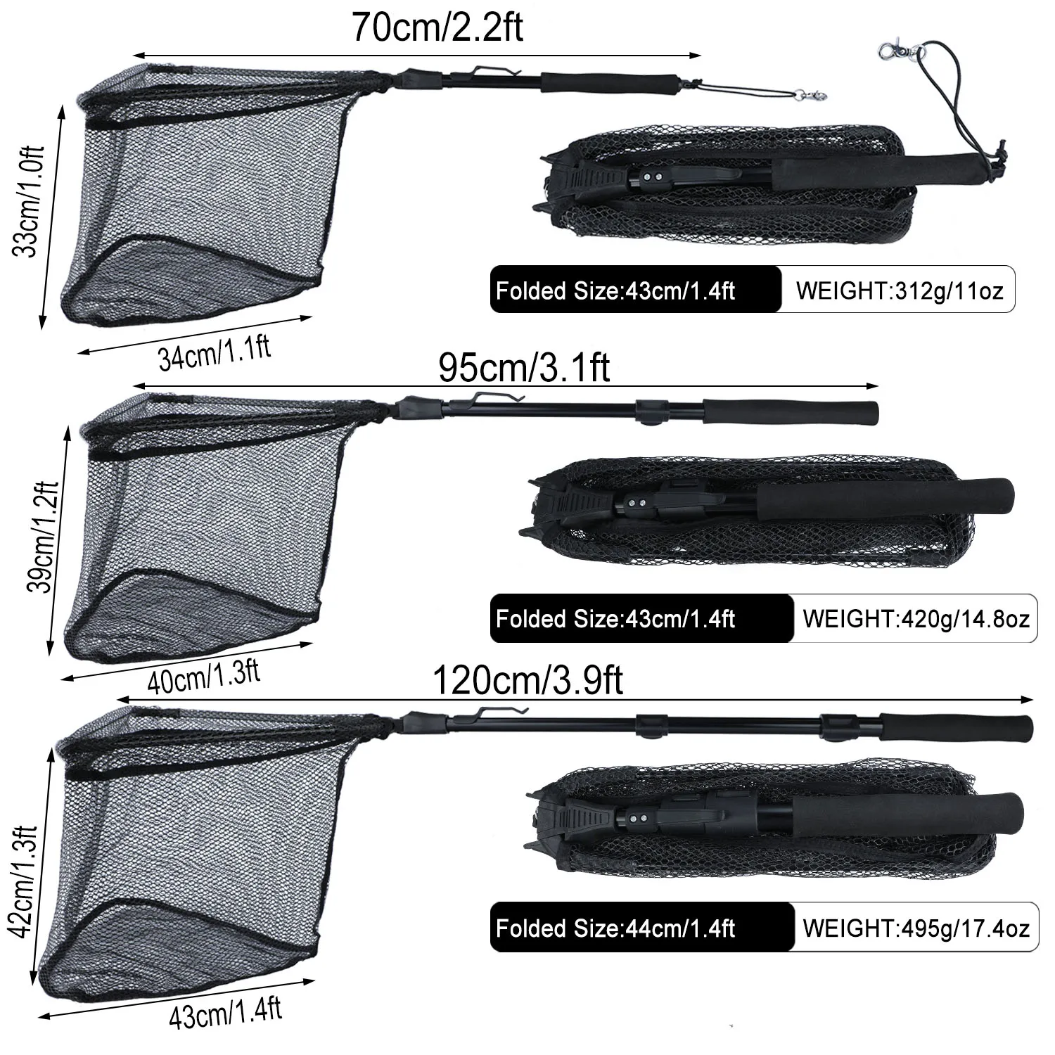 Sougayilang 70cm 95cm 120cm Red de pesca plegable telescópica retráctil aleación de aluminio pesca amigable grande red de tierra plegable