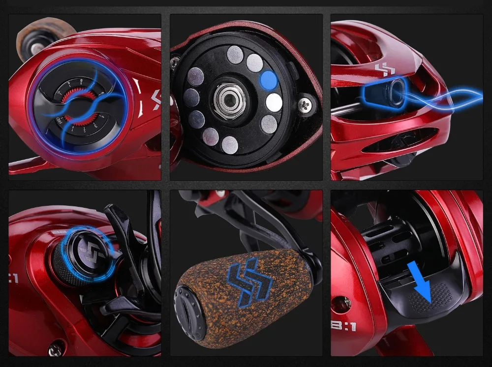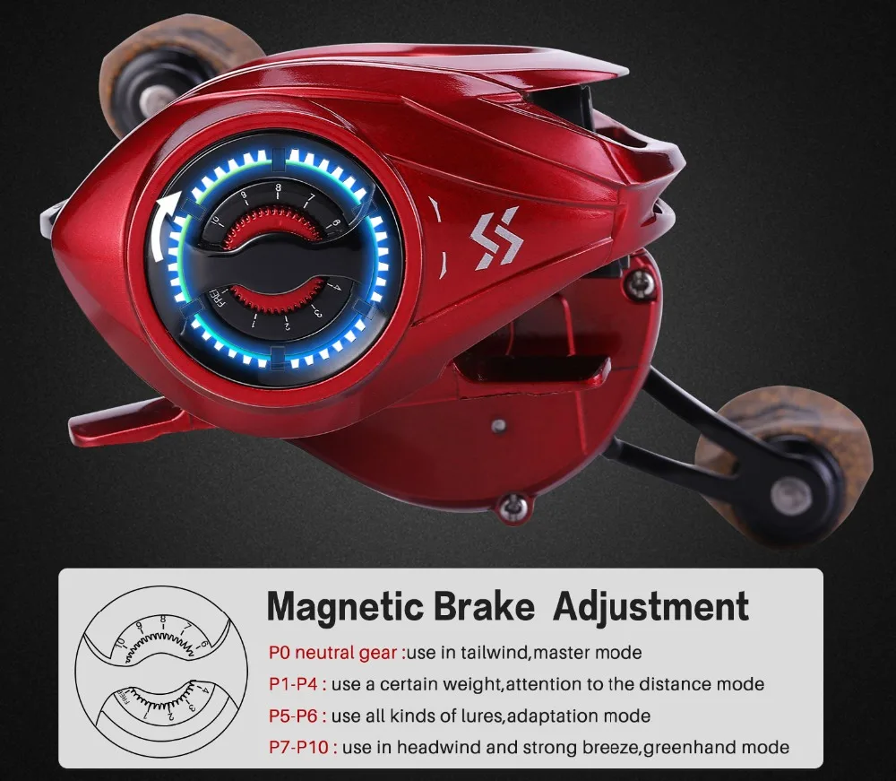 4.Sistema de frenos de 10 velocidades: el sistema de frenos de 10 velocidades proporciona un control más preciso y una mayor seguridad, reduce el riesgo de rotura de la línea y protege la seguridad de los pescadores.