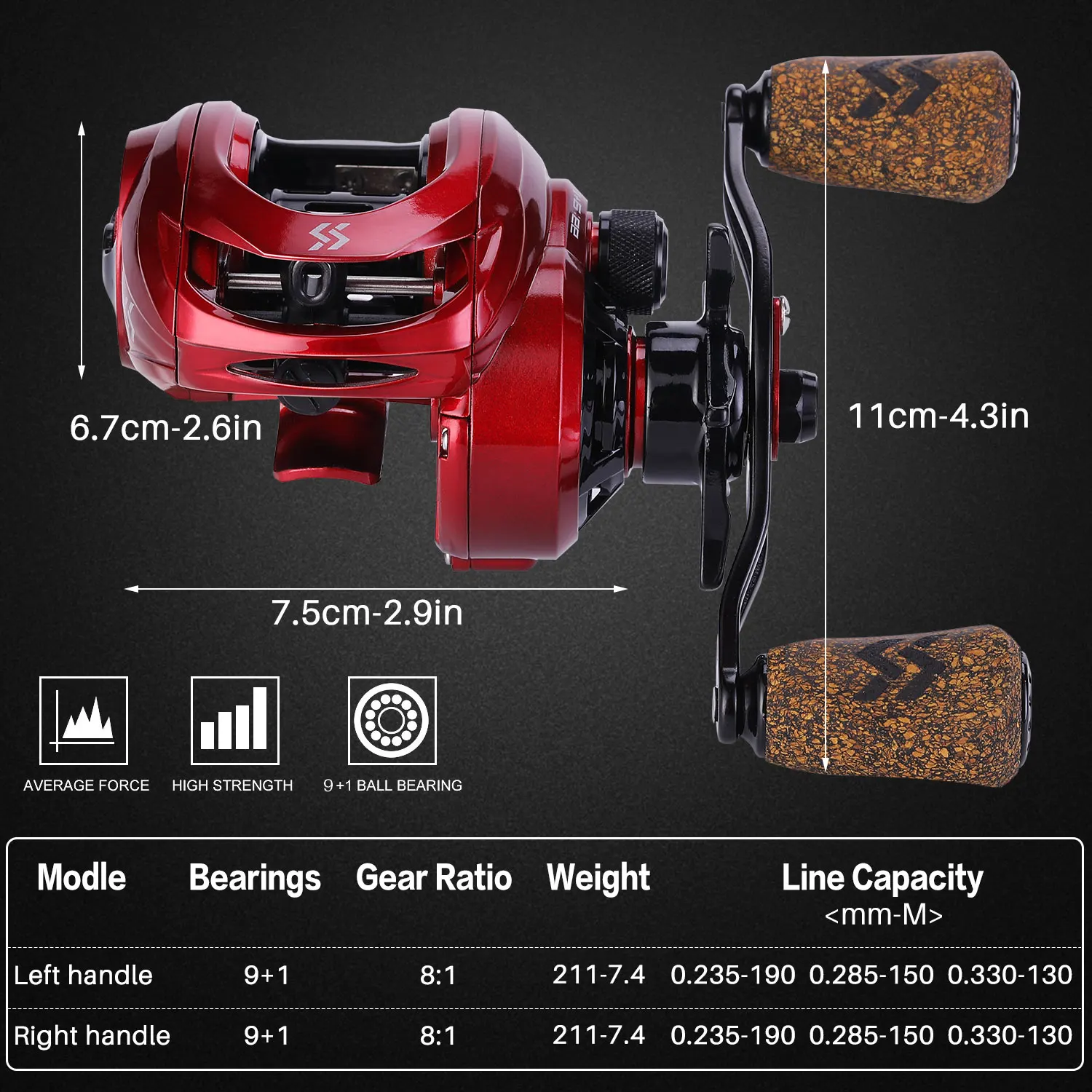 2.Relación de velocidad eficiente: la relación de velocidad alta de 8,1:1 proporciona una velocidad de recogida muy rápida, adecuada para escenarios de pesca en los que el grupo de líneas debe recuperarse rápidamente y mejora la eficiencia y la tasa de éxito de la pesca.
