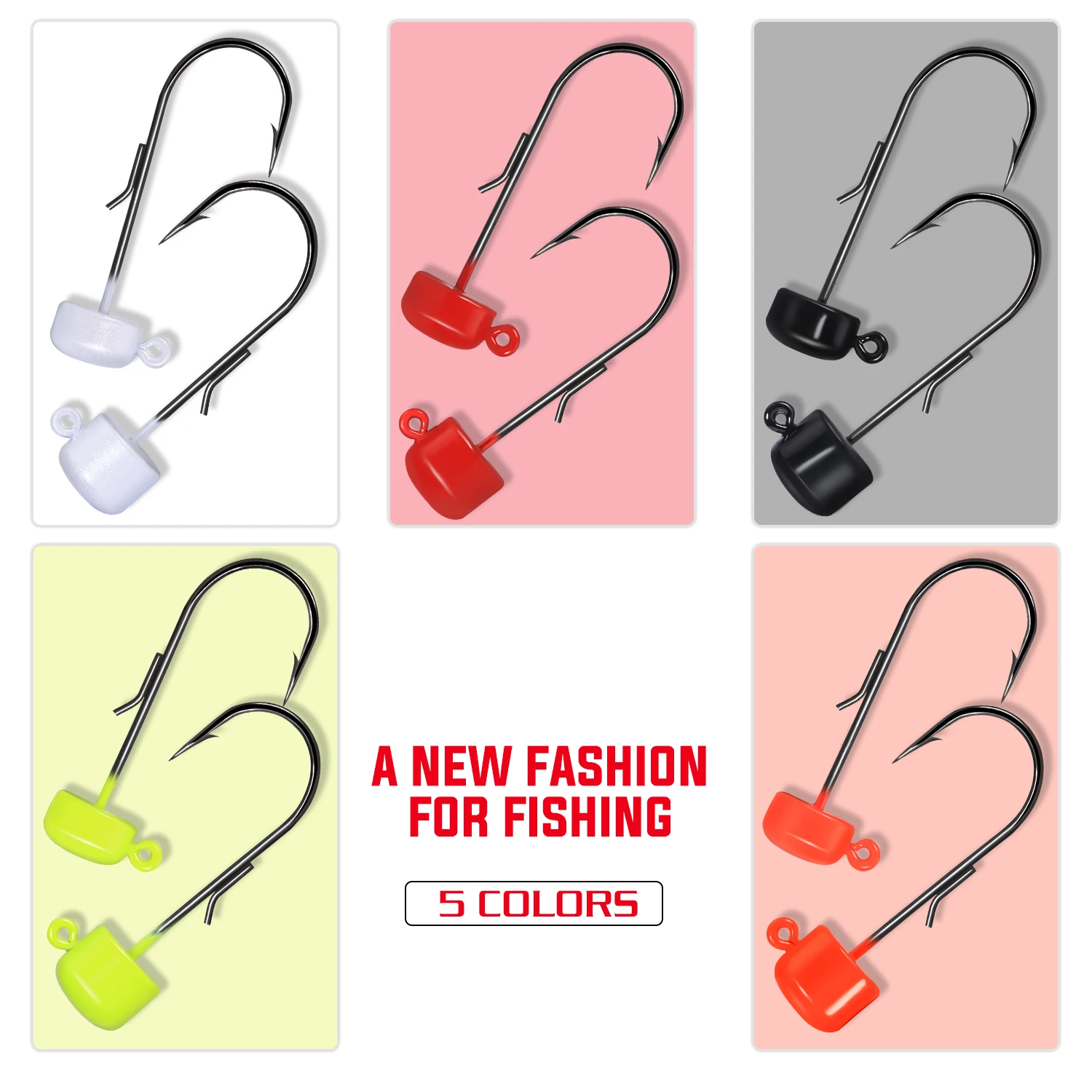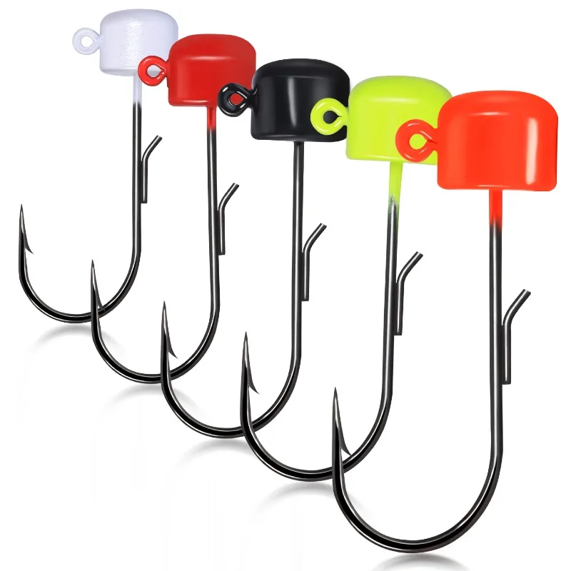 Sougayilang-anzuelo de pesca con cabeza de anzuelo, 5 uds., 3,5g, 5,5g, aparejo Ned, anzuelo de pescado, señuelos de gusanos suaves, anzuelos de anzuelo de seta, anzuelos de pesca para lubina y trucha
