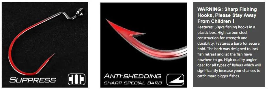 Los anzuelos de pesca de 50 piezas están hechos de acero con alto contenido de carbono, con alta resistencia y resistencia a la corrosión. Una gran opción para los pescadores de agua dulce y salada.