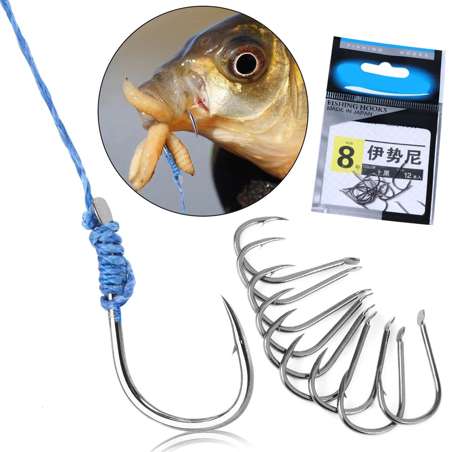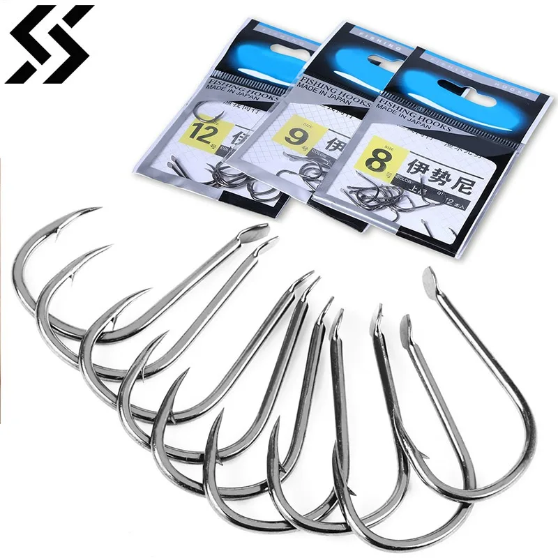 Sougayilang Anzuelos de Pesca de Acero de Alto Carbono, Equipo de Pesca Fuerte para Agua Dulce, 8 #9 #12 #, 12 #