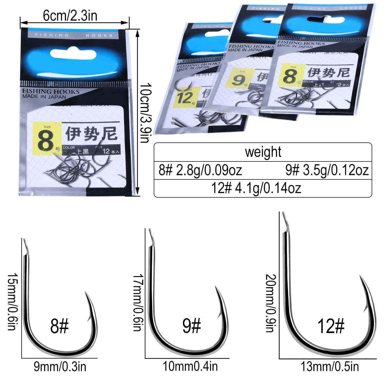1. Tamaño: 8 #9 #12 #