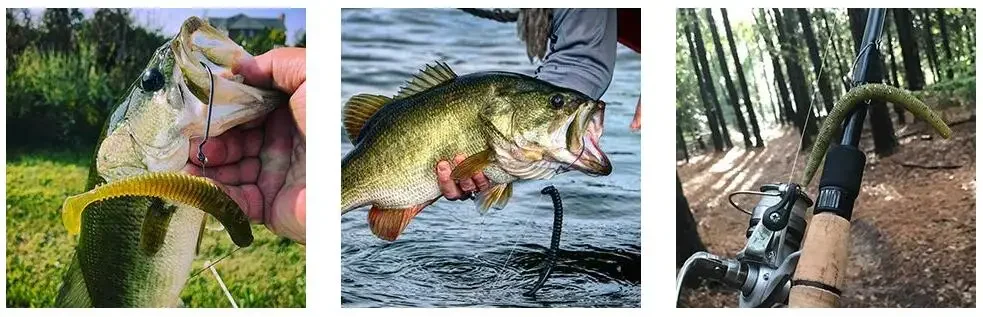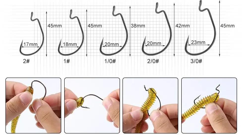 5. Mano de obra fina, no se oxida, permanece afilada y cumple con los estándares, aparejo con gusanos y otros cebos blandos de goma y plástico.