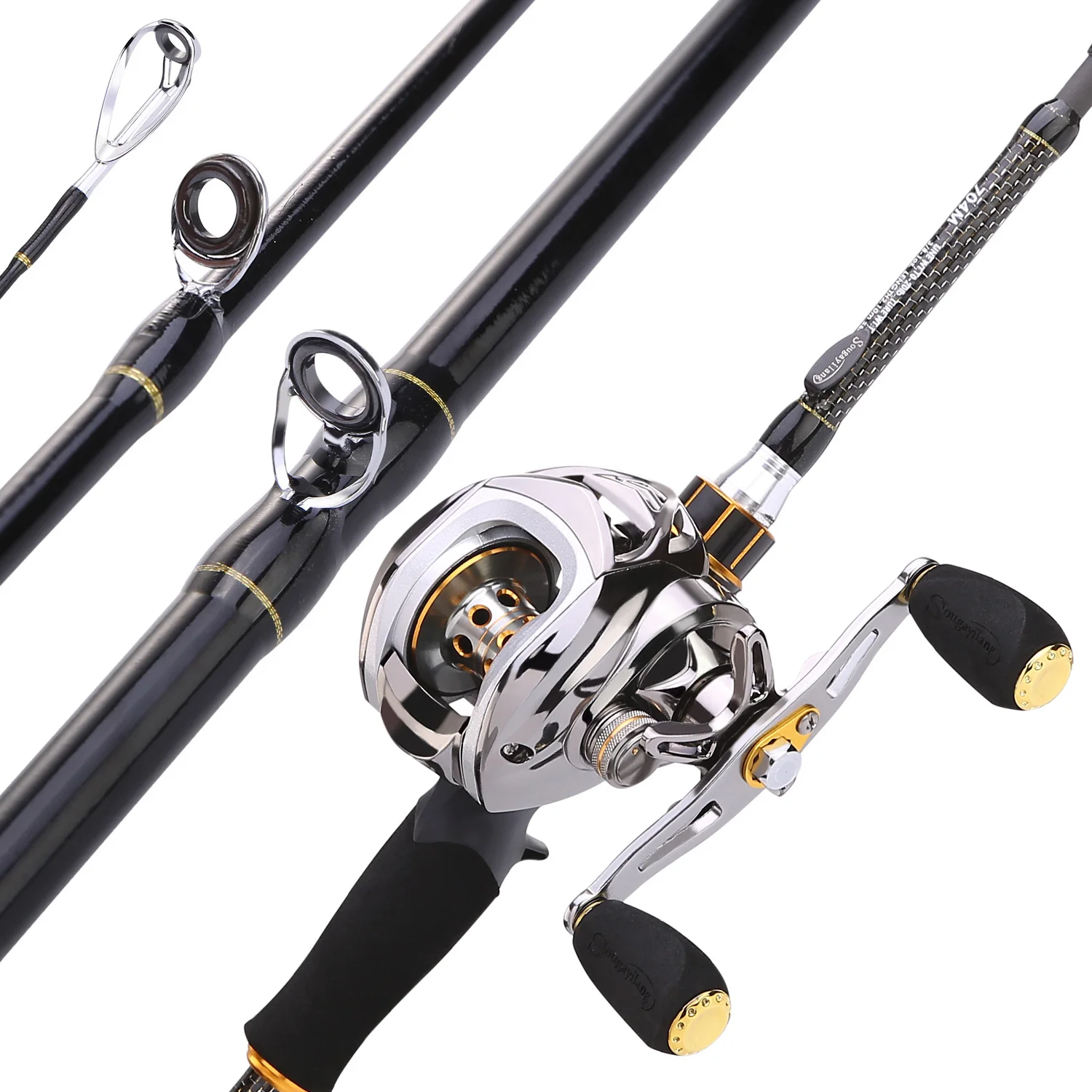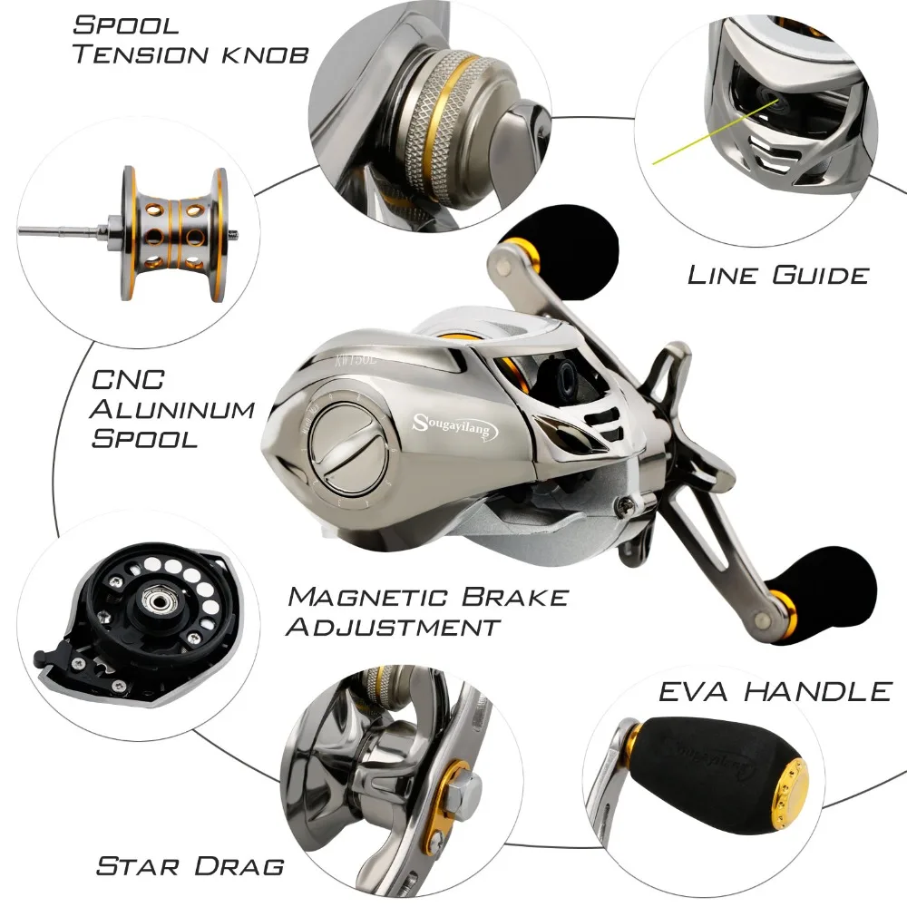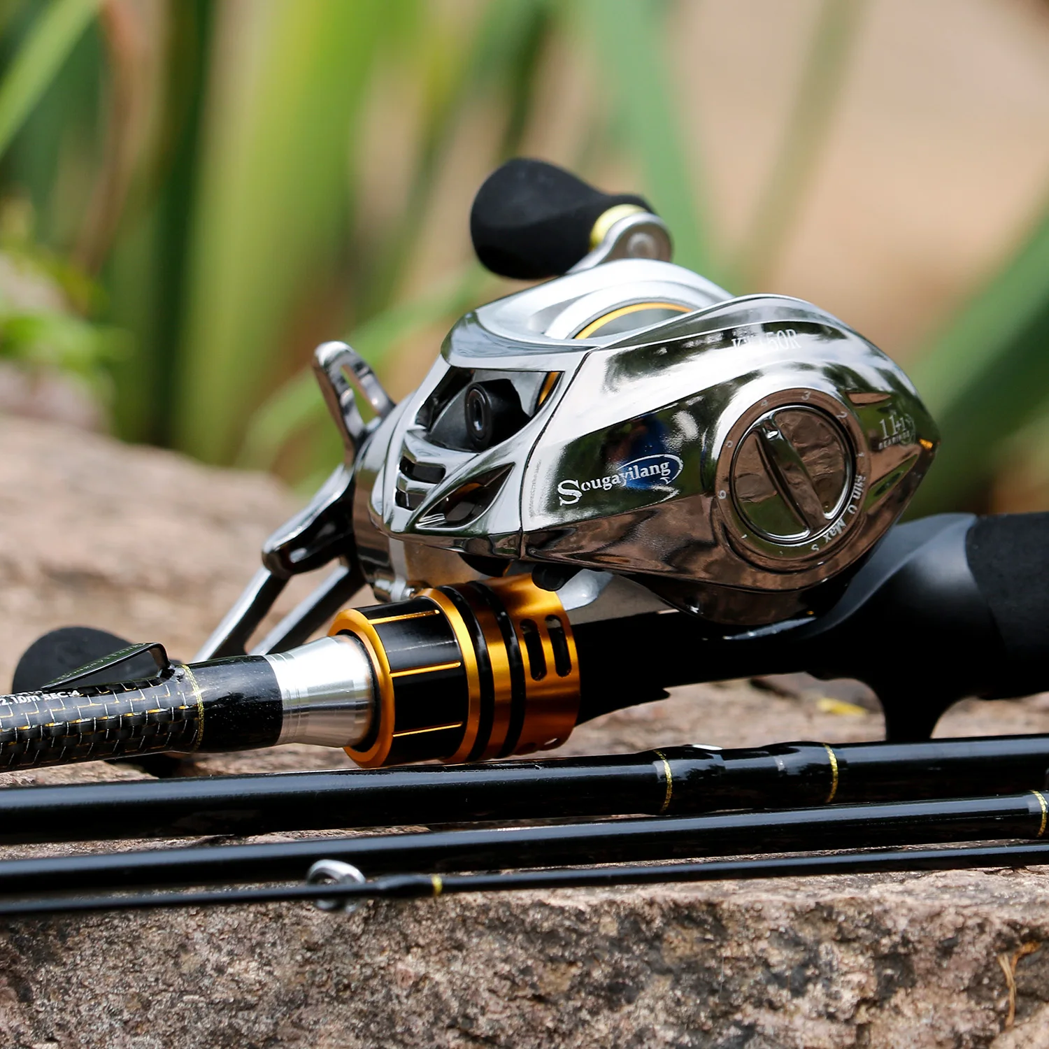 Combinación de carrete de caña Baitcast Sougayilang, caña de pescar portátil de 4 secciones M Power Casting con 11 + 1BB, Kit de carrete de pesca Baitcasting para pesca