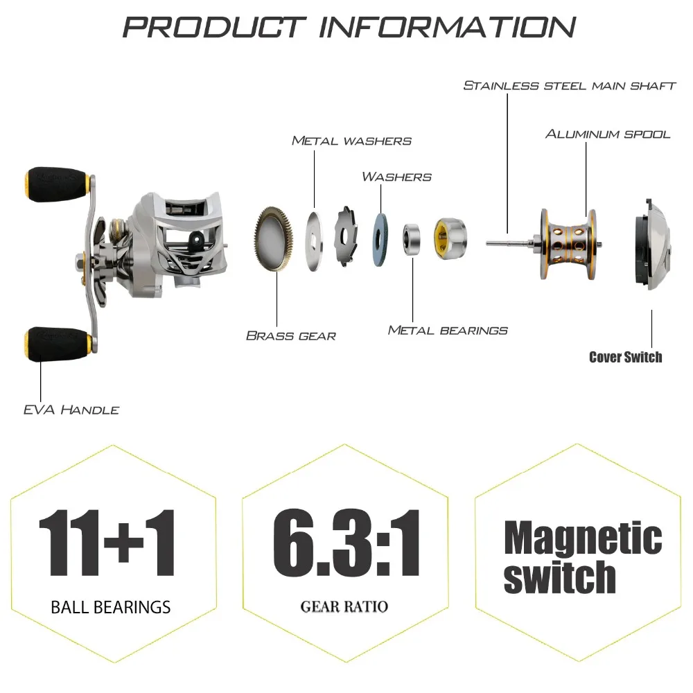 1.El carrete de pesca tiene 11 + 1 rodamientos de bolas blindados resistentes a la corrosión,