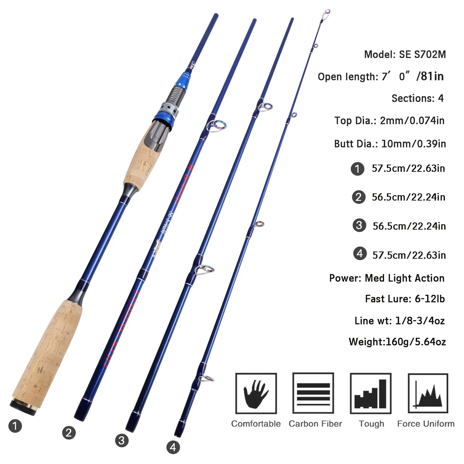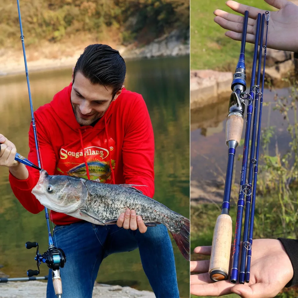 Sougayilang-varilla de pescar de 4 secciones, caña de pescar ultraligera de 2,1 M, caña de carbono, caña de pescar de fundición giratoria, aparejos de pesca de carpa