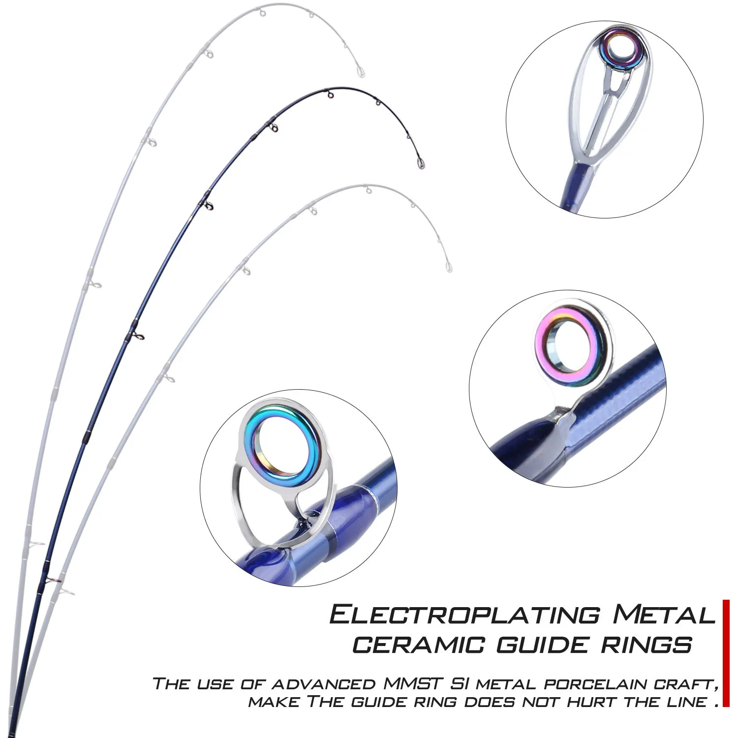 1.Mango de corcho: proporciona un agarre cómodo y un diseño antideslizante, reduce la fatiga de la mano, mejora la seguridad en el uso y es naturalmente hermoso.2.Azul 2,1 metros: apariencia elegante, gran adaptabilidad, adecuado para aguas medianas y una variedad de entornos de pesca.3.Puede soportar una tensión de 5 kg: fuerte fuerza de apoyo, adecuada para pescar peces de tamaño mediano, proporcionando suficiente soporte de resistencia para garantizar la estabilidad y confiabilidad del grupo de líneas.4.Longitud cerrada 57 cm: almacenamiento portátil, tamaño reducido, montaje y desmontaje rápidos, fácil de cambiar entre diferentes lugares de pesca, mejora la eficiencia de la pesca.5.Tonalidad M, eje 160 g: la tonalidad moderada proporciona buena sensibilidad y control, y el diseño liviano reduce la fatiga debido al uso prolongado.