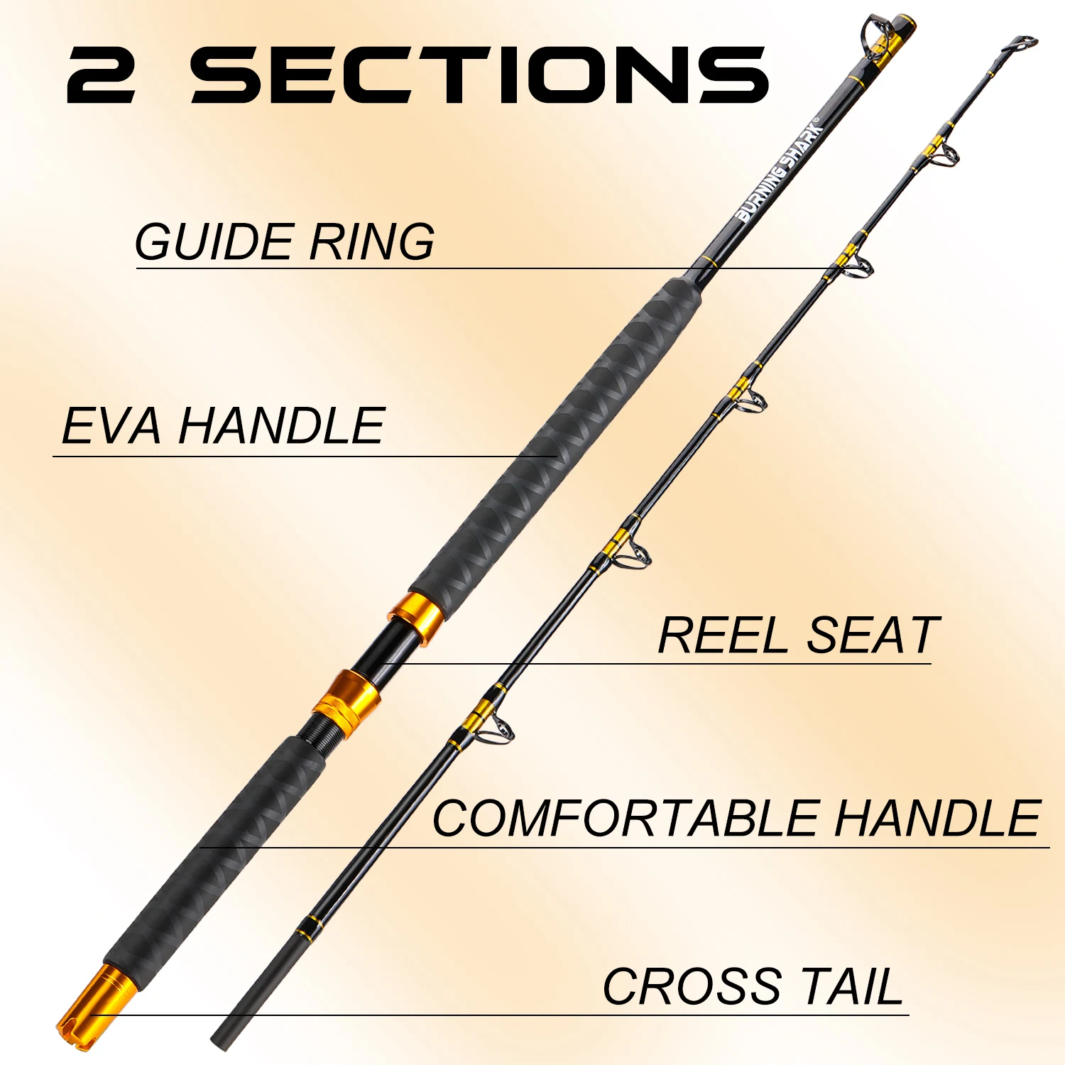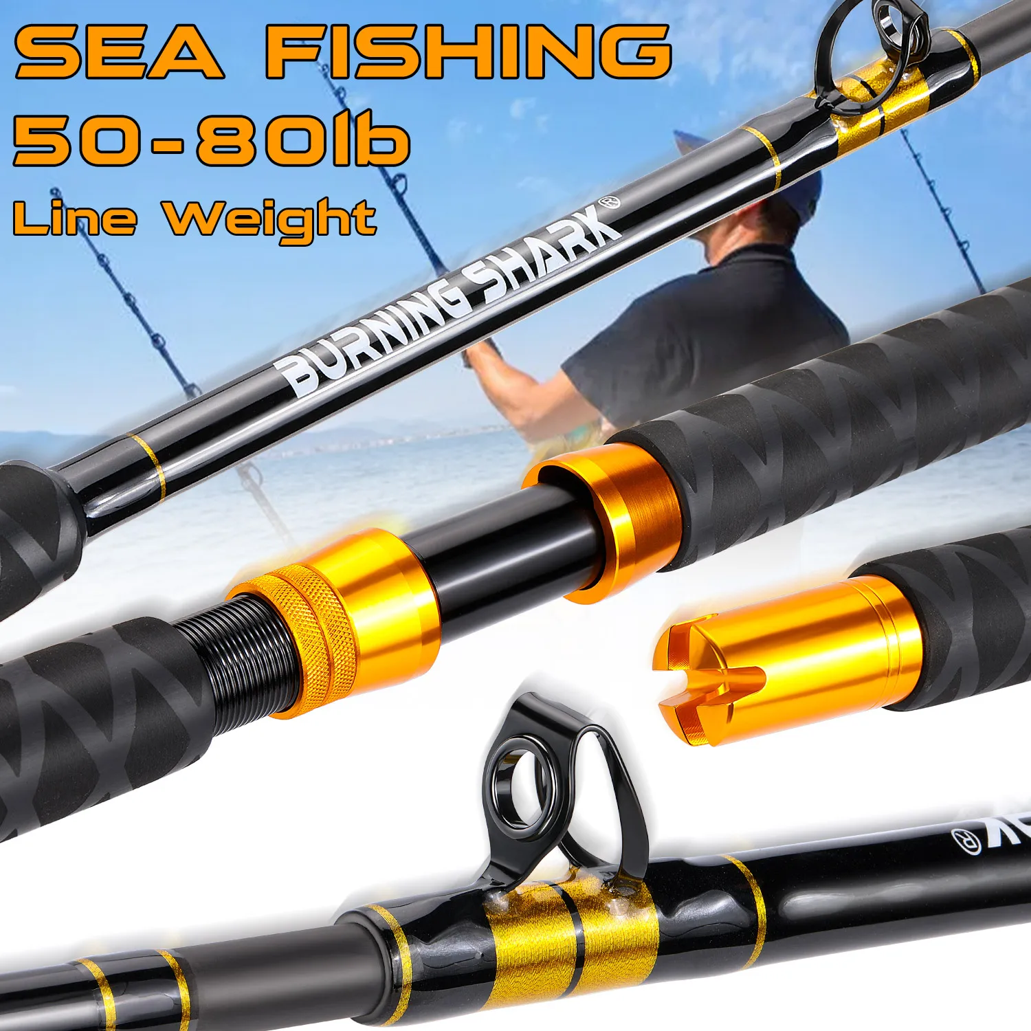 Sougayilang-caña de pescar de curricán pesada, 1,8 m, 2 piezas, arrastre máximo de 20K, caña de pescar de barco convencional para Pesca en agua salada