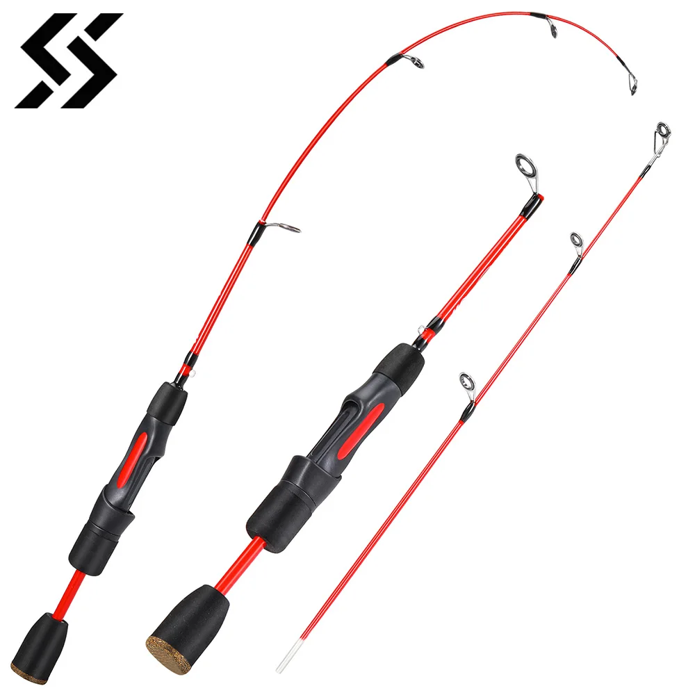 Sougayilang caña de pescar en hielo EVA mango antideslizante río camarón carpa caña de pescar 68cm 2 secciones M L potencia caña de pescar de invierno