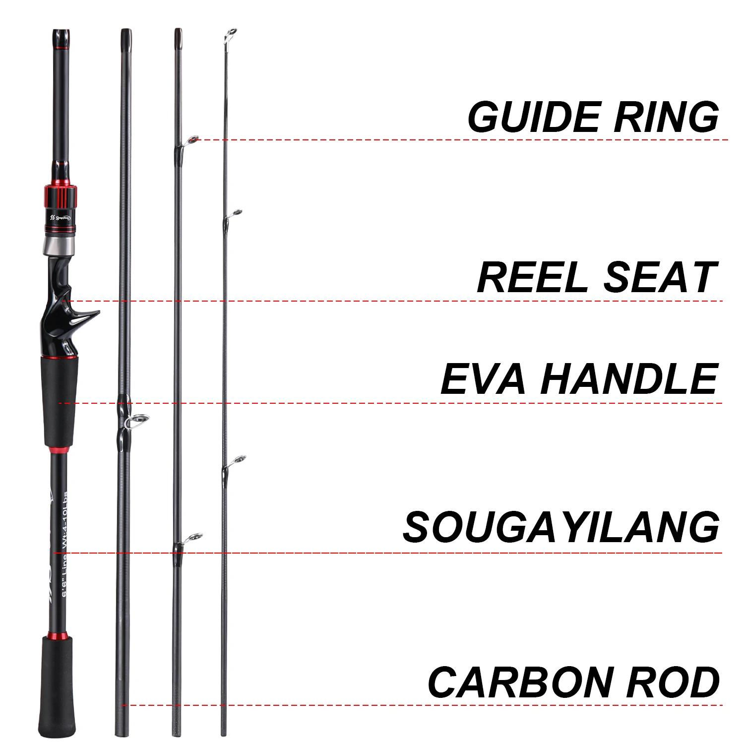 Sougayilang Caña de Pescar con Señuelos, 4 Secciones, Fibra de Carbono, Carpa, 5kg, Potencia de Arrastre, Caña de Viaje Ultraligera para Pesca de Lucio