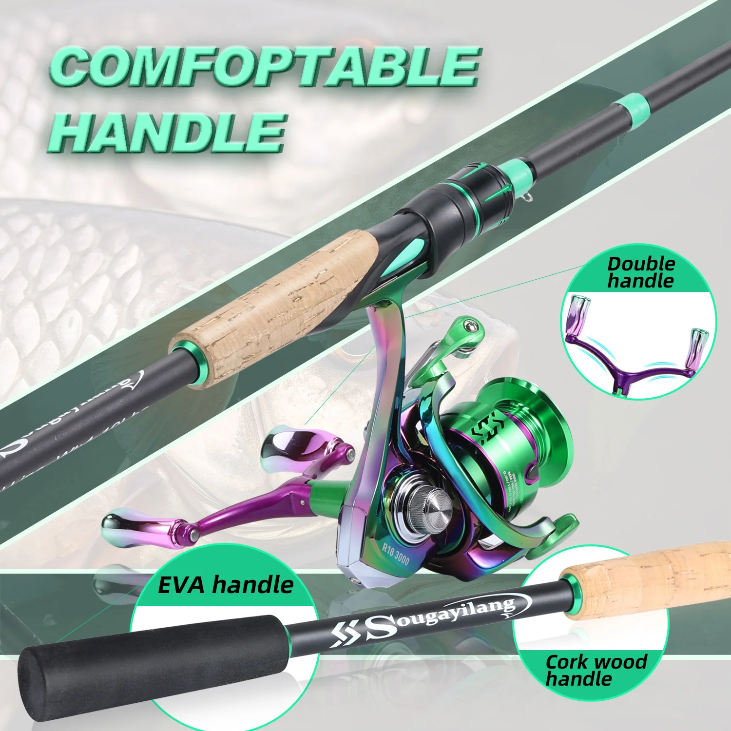 Sougayilang-caña de pescar de fibra de carbono, conjunto de pesca de arrastre máximo de 10kg, 1,8-2,1 m y 1000-3000 tamaños