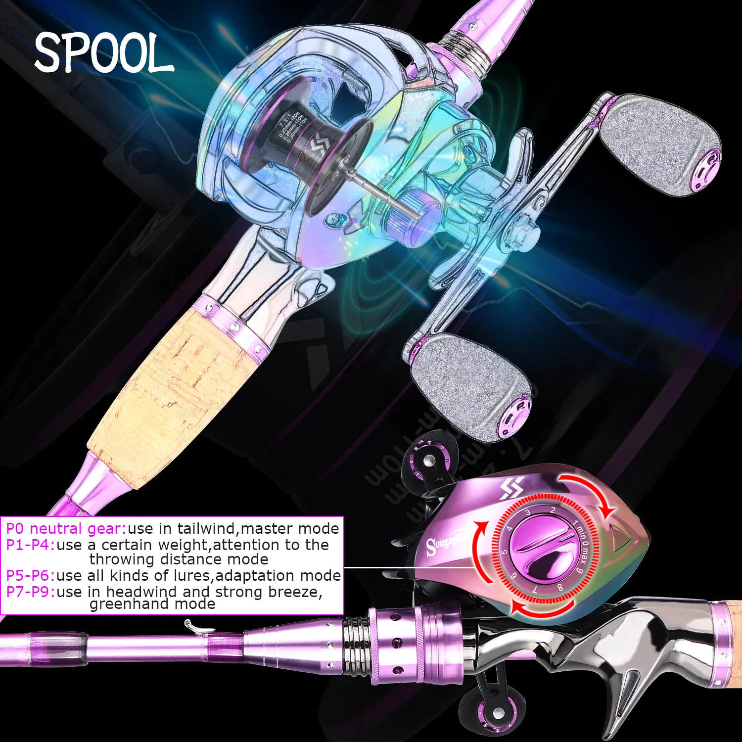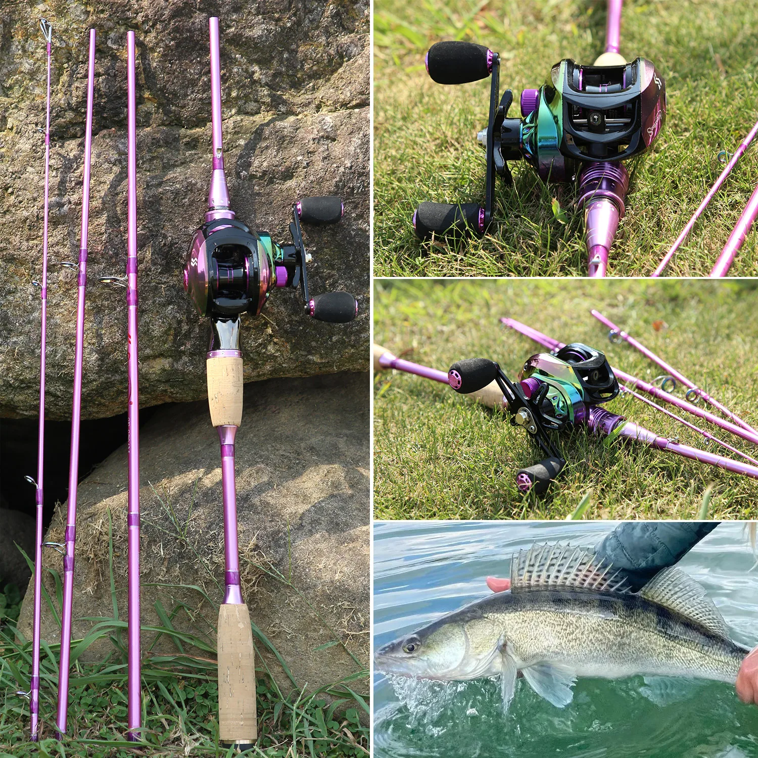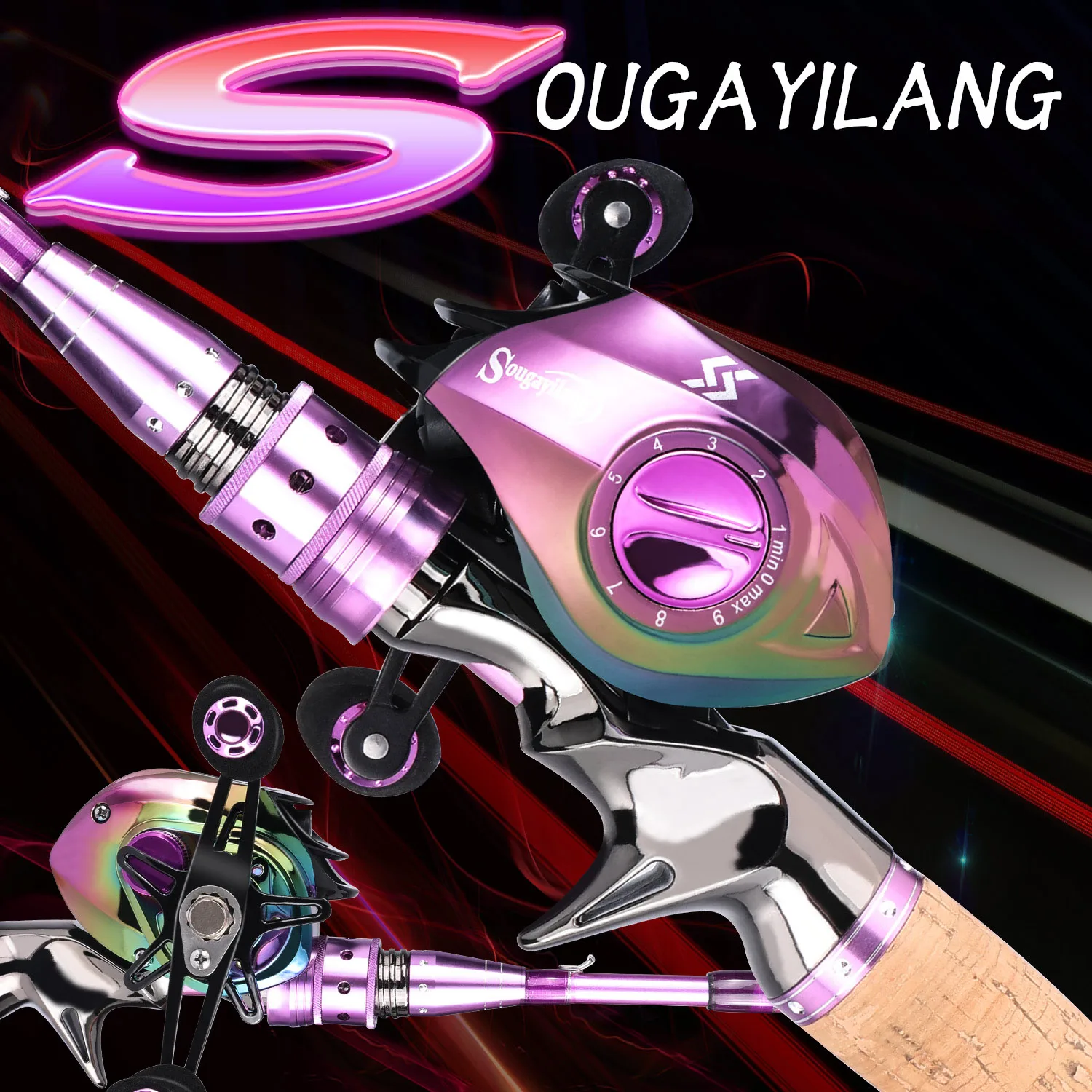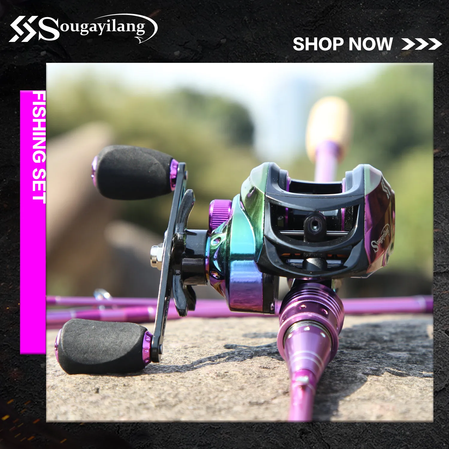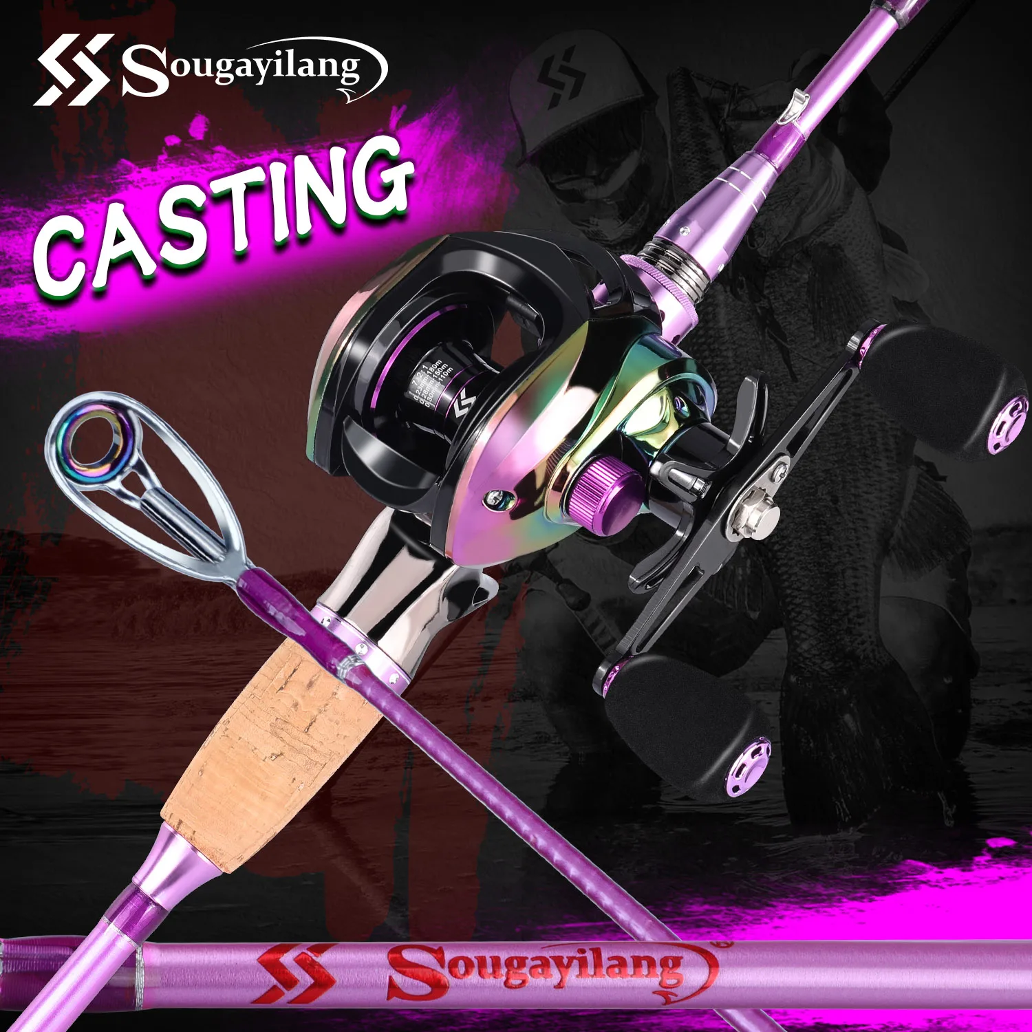 Sougayilang 2,1 m caña de pescar Combo púrpura fibra de carbono Baitcast Rod 19 + 1BB Baitcasting carrete de pesca para agua dulce y agua salada