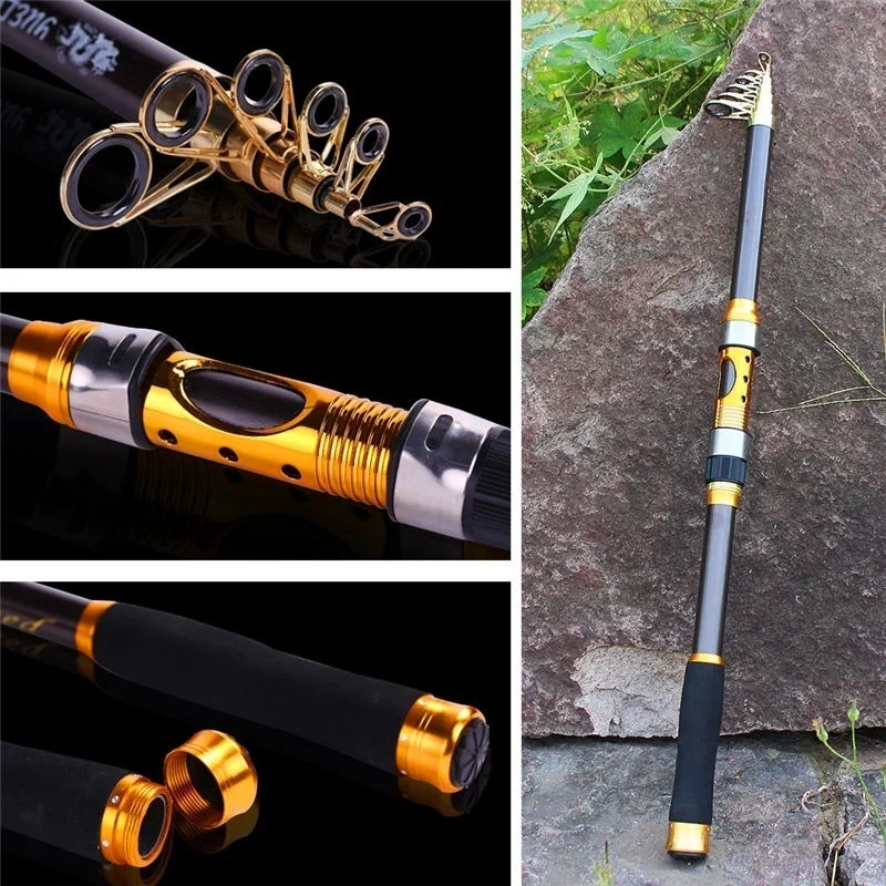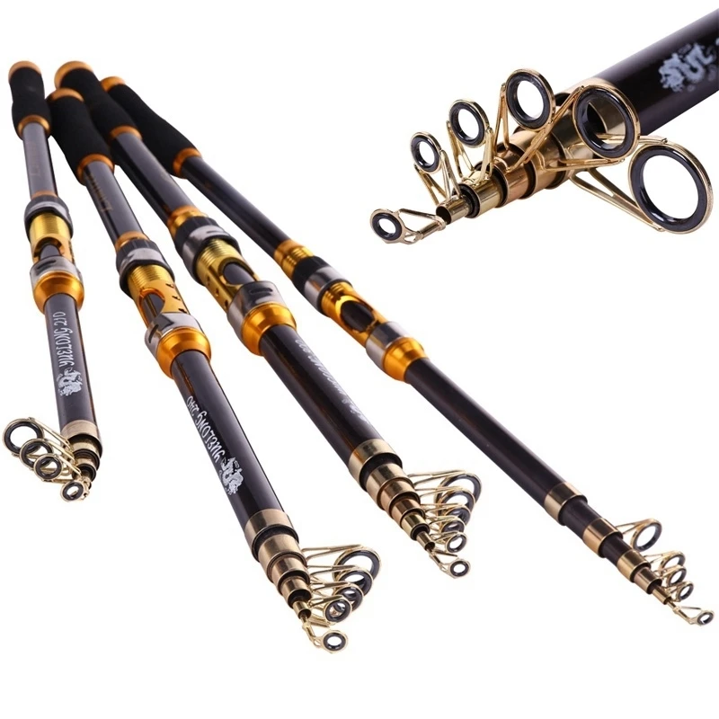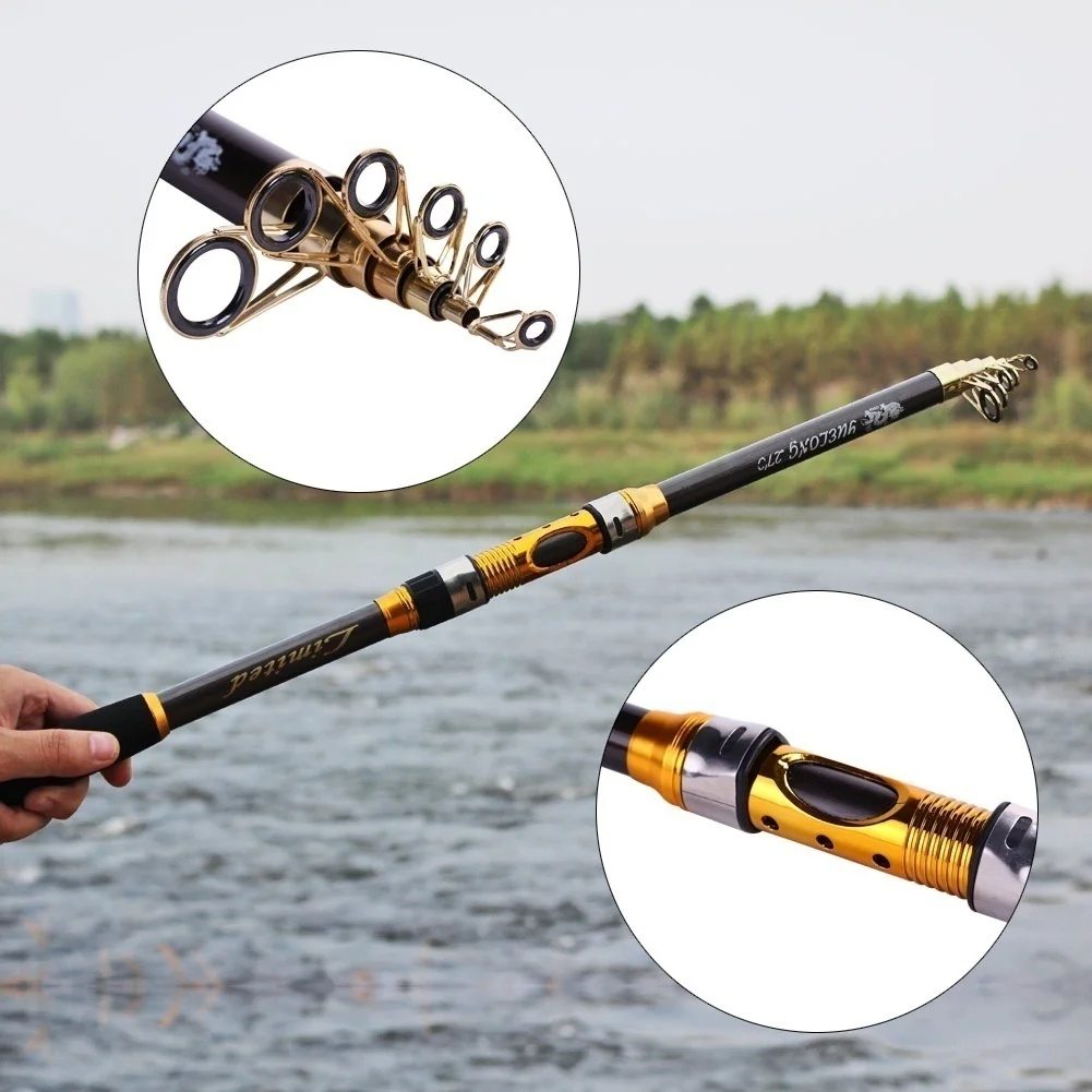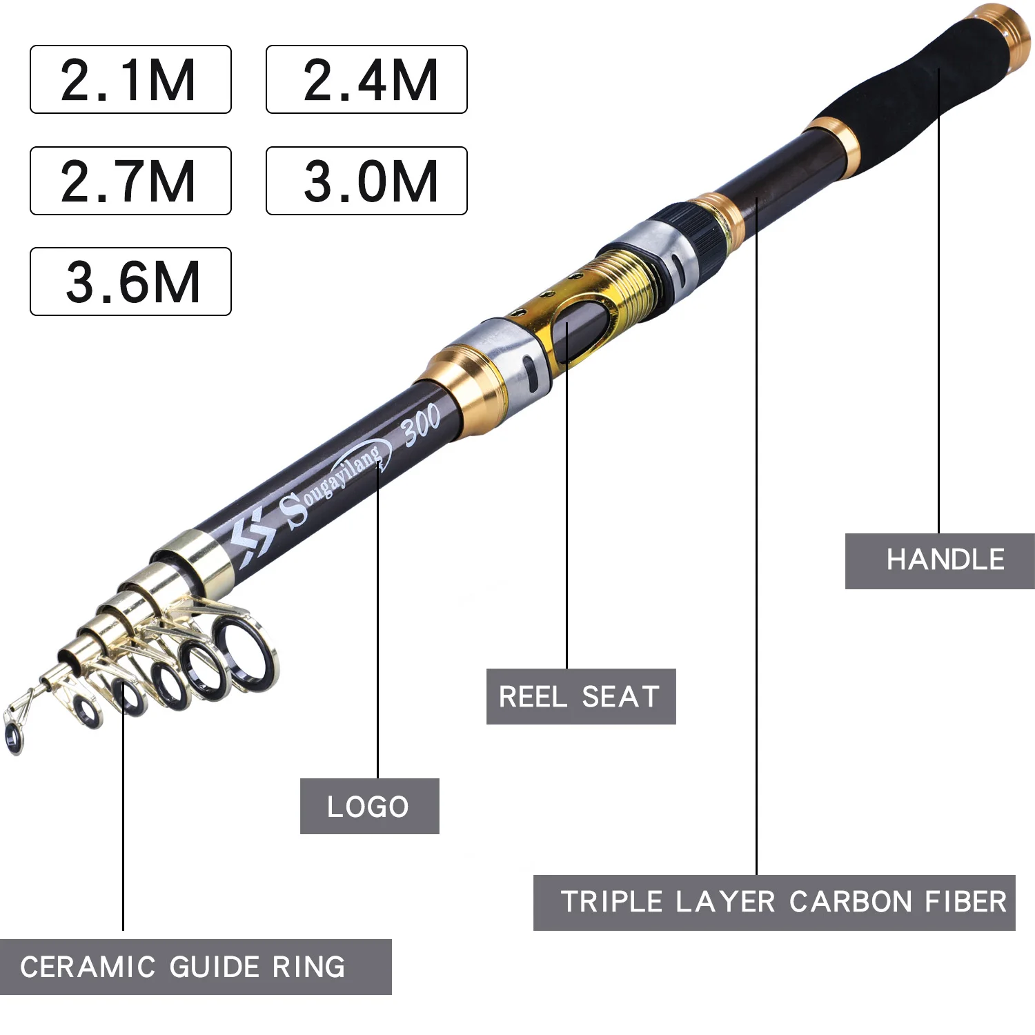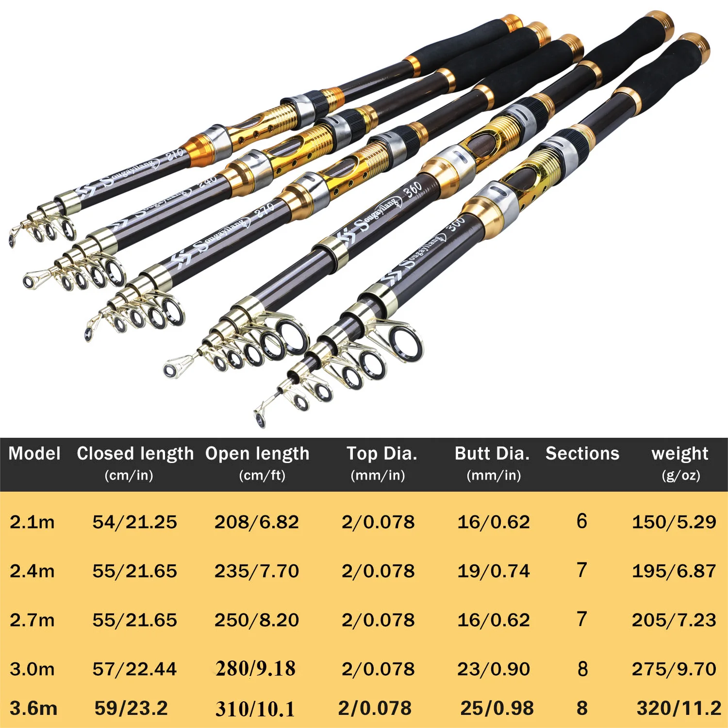 Sougayilang caña de pescar de fibra de carbono súper ligera, caña de pescar giratoria de viaje telescópica portátil, accesorios de pesca de 1,8 m-3,6 m