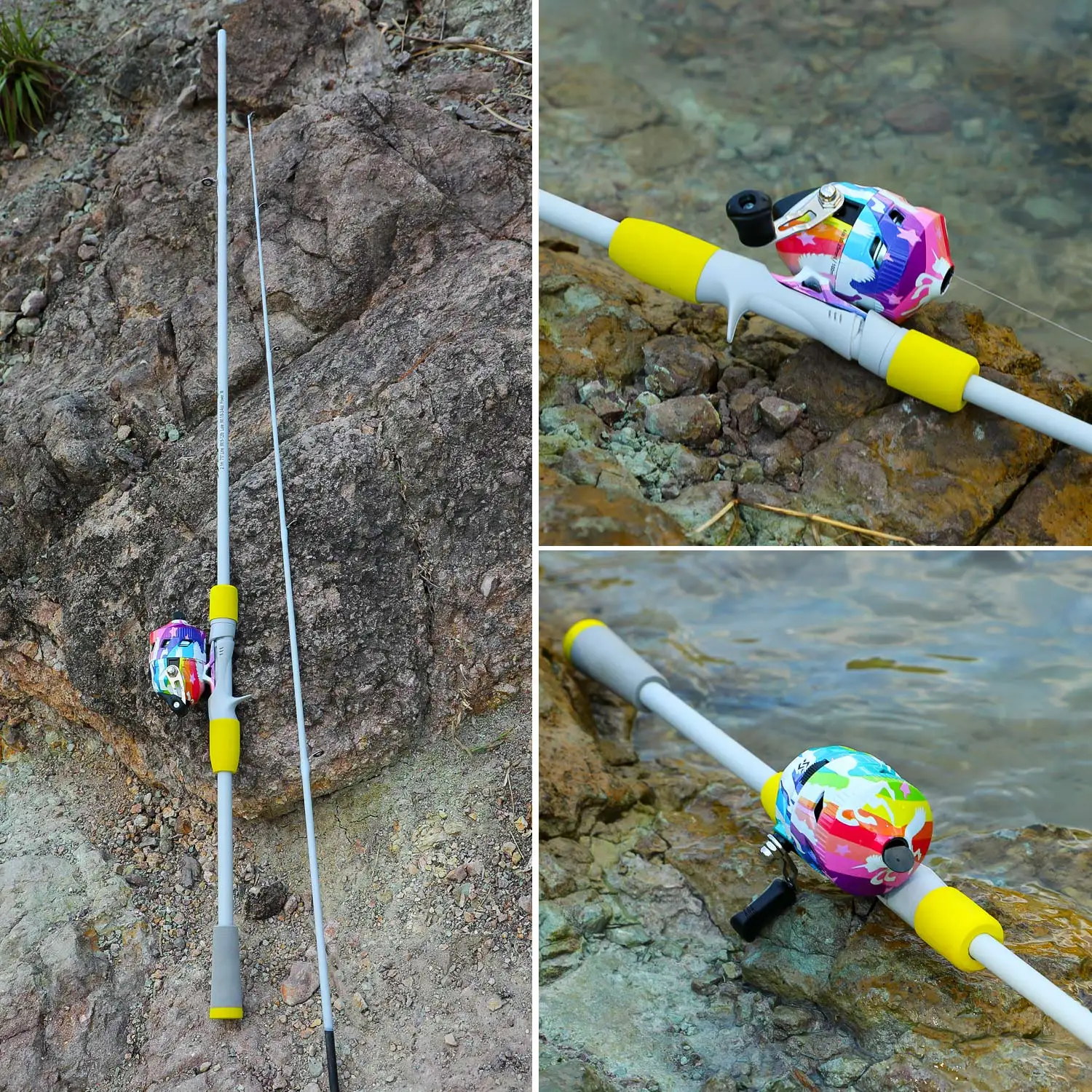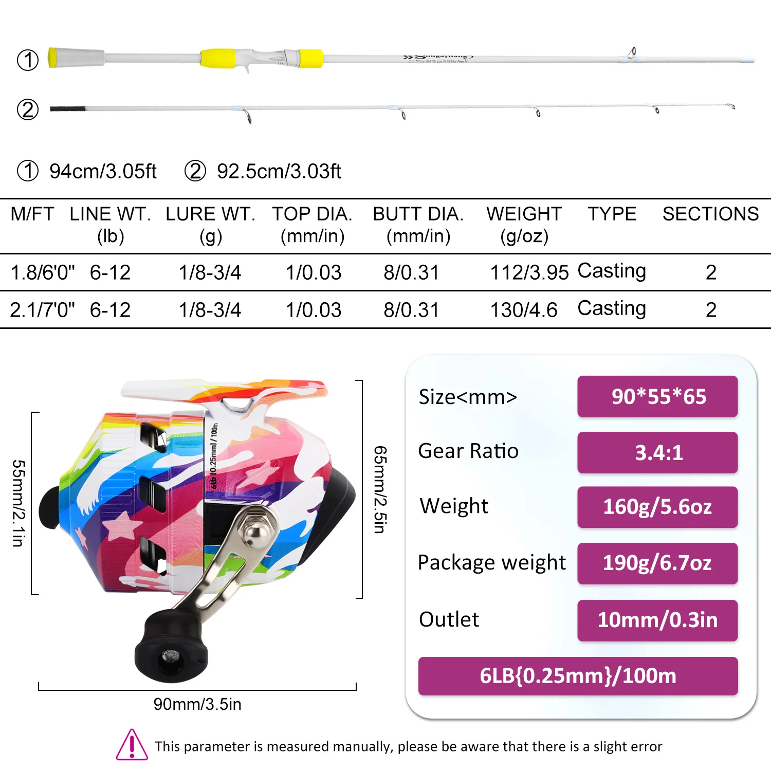 Sougayilang caña de pescar de fundición de 2 secciones y carrete de pesca Baitcasting Combo 1,8/2,1 m mango EVA caña de pescar 3,4:1 pesca de nailon
