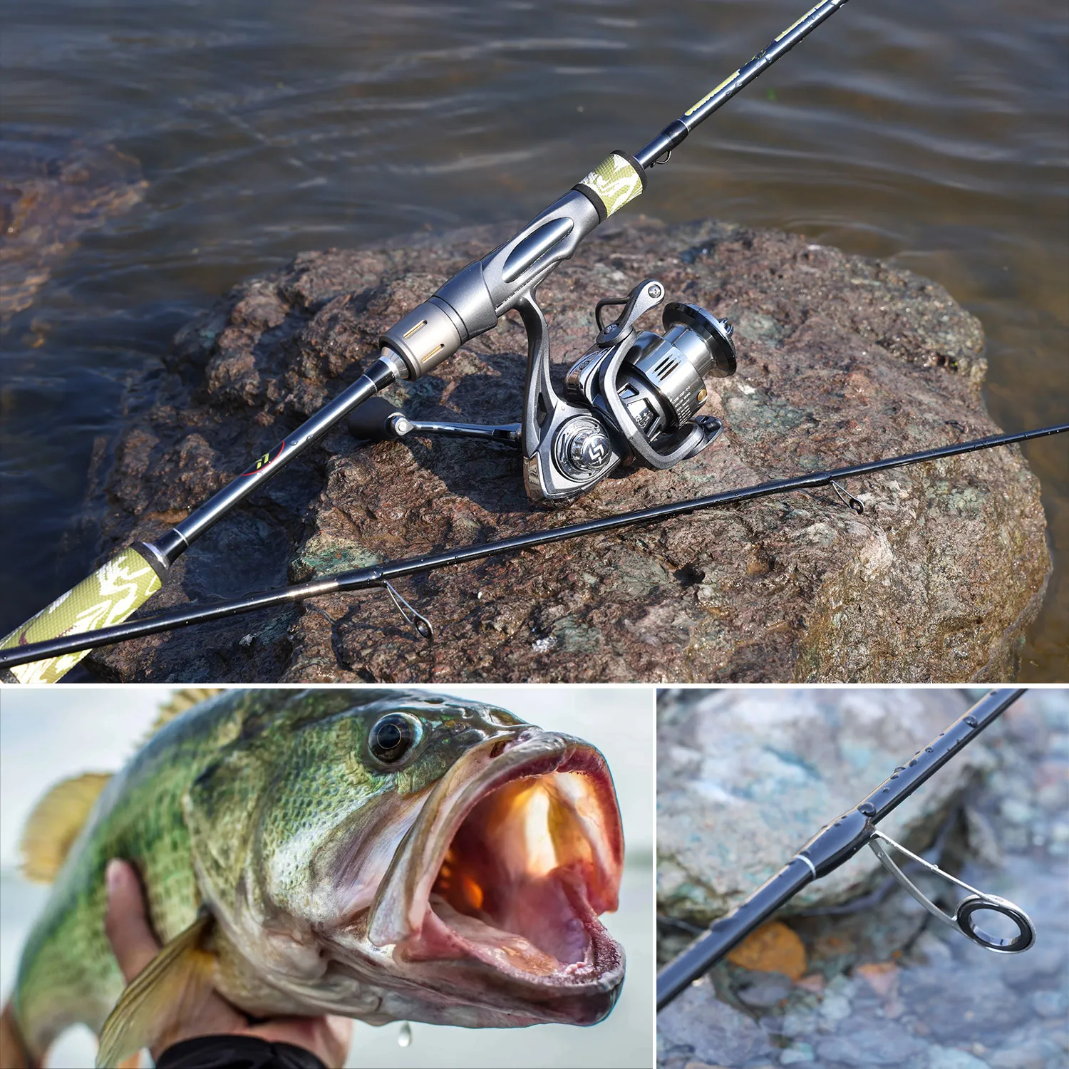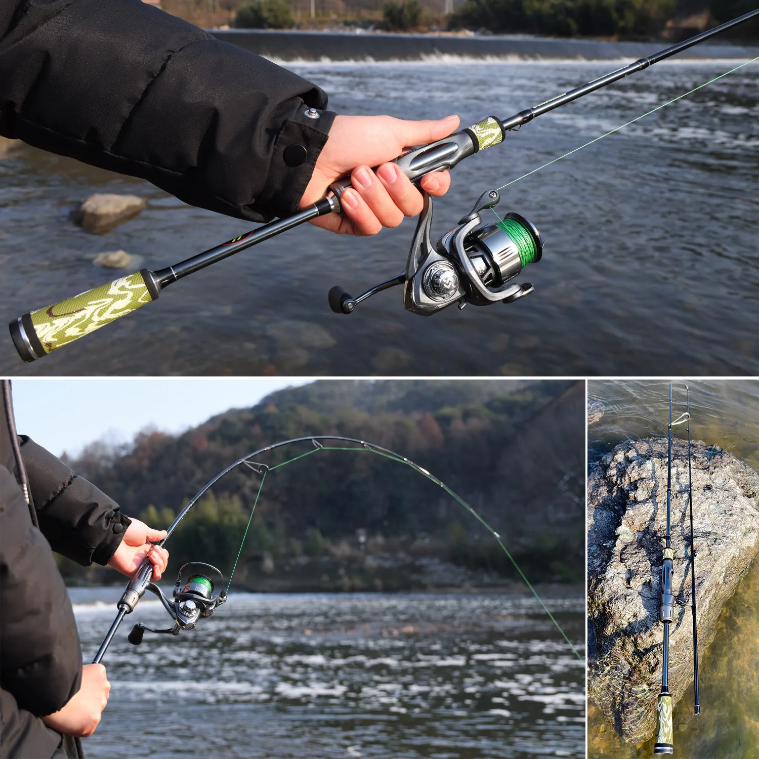 Sougayilang-caña de pescar giratoria de 2 secciones, señuelo giratorio de 180-210cm, pesca de agua dulce de trucha de lubina súper ligera y sensible