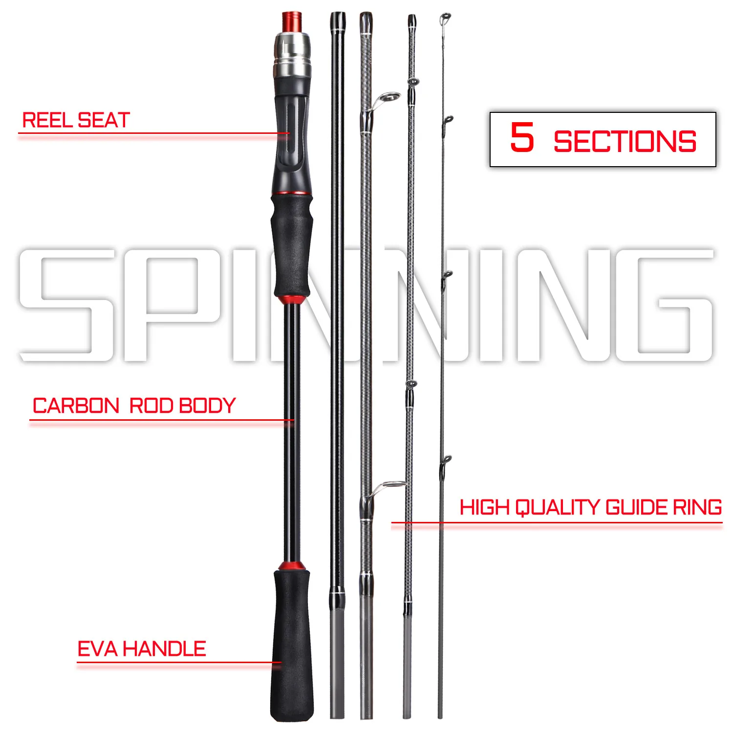 Sougayilang-caña de pescar giratoria/fundida Power M, caña de carbono, 5/6 secciones, viaje, aparejos de pesca