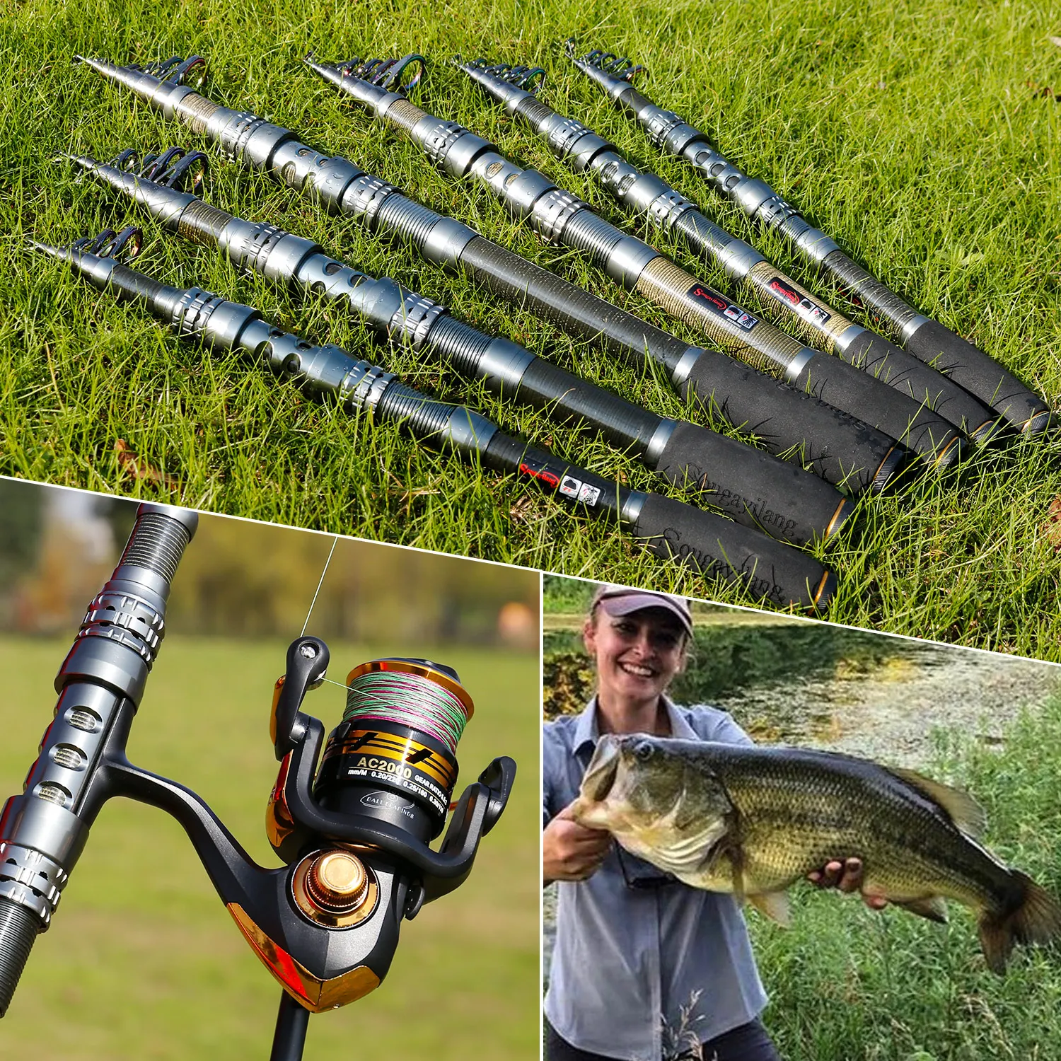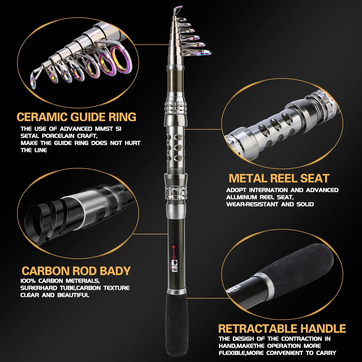 Sougayilang 1.8-3.3M caña de pescar giratoria telescópica 99% fibra de carbono caña de pescar portátil aparejos caña de mar aparejos de pesca Pesca