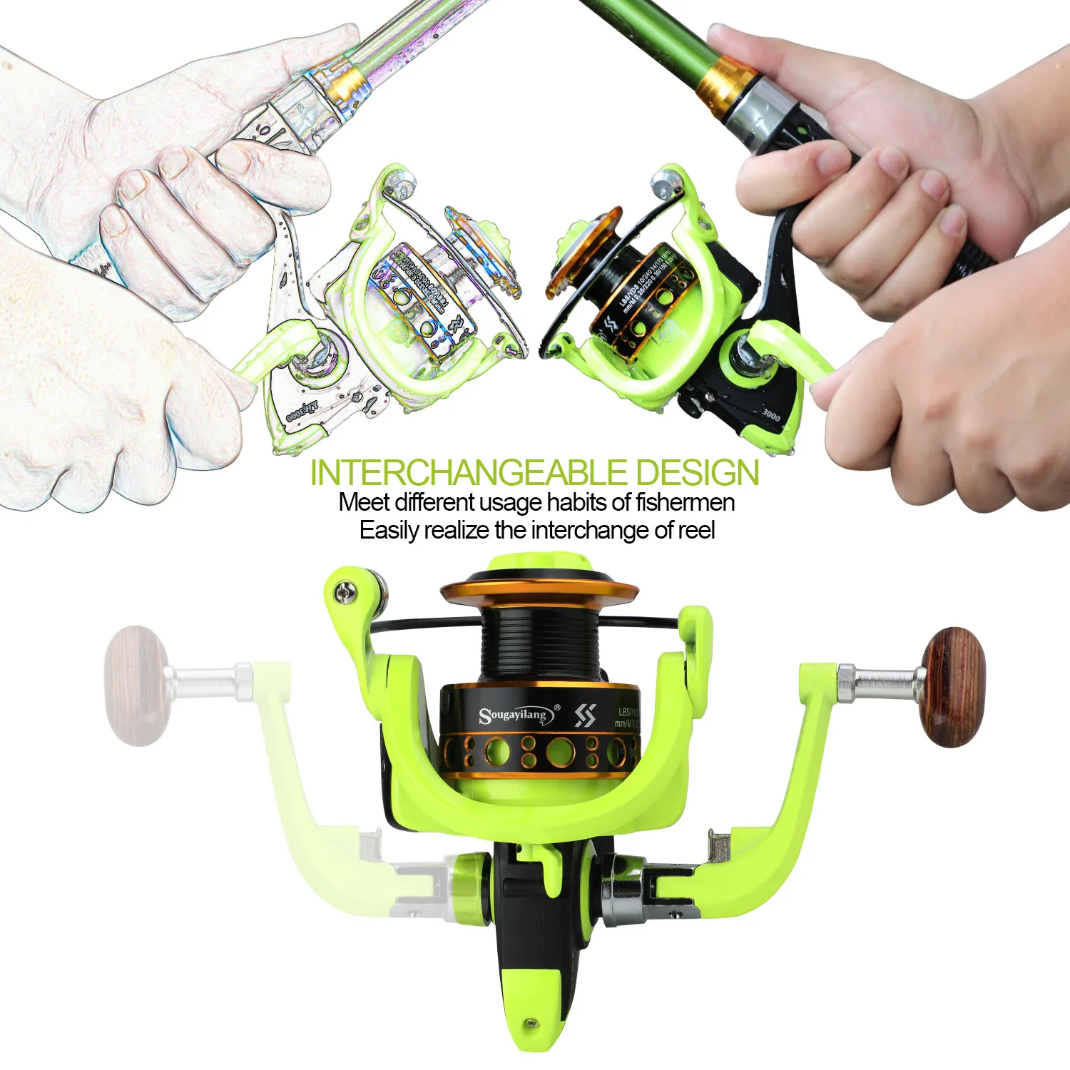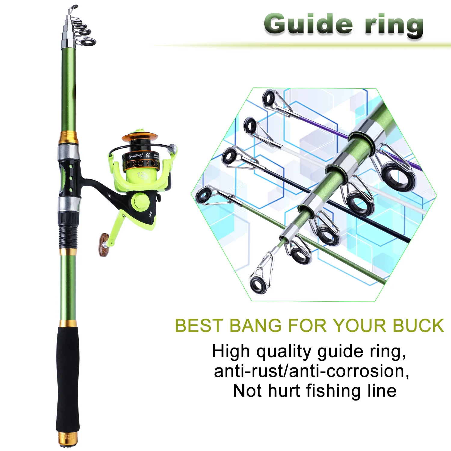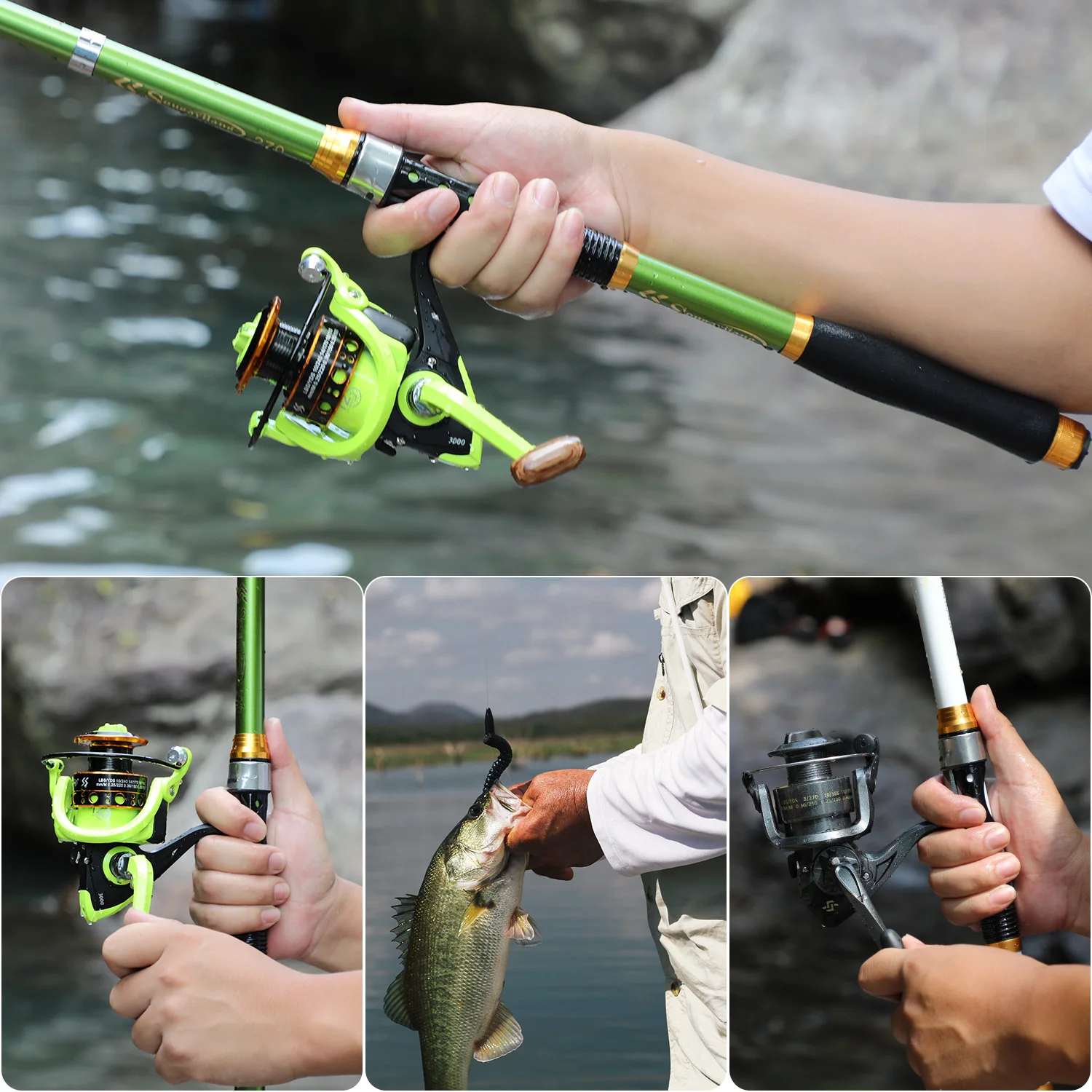 Sougayilang Caña de pescar giratoria y carrete Combo1.8-2,7 M Caña telescópica con 5,2: 1 5,0: 1 Carrete de pesca Max Drag 8kg Kit de pesca