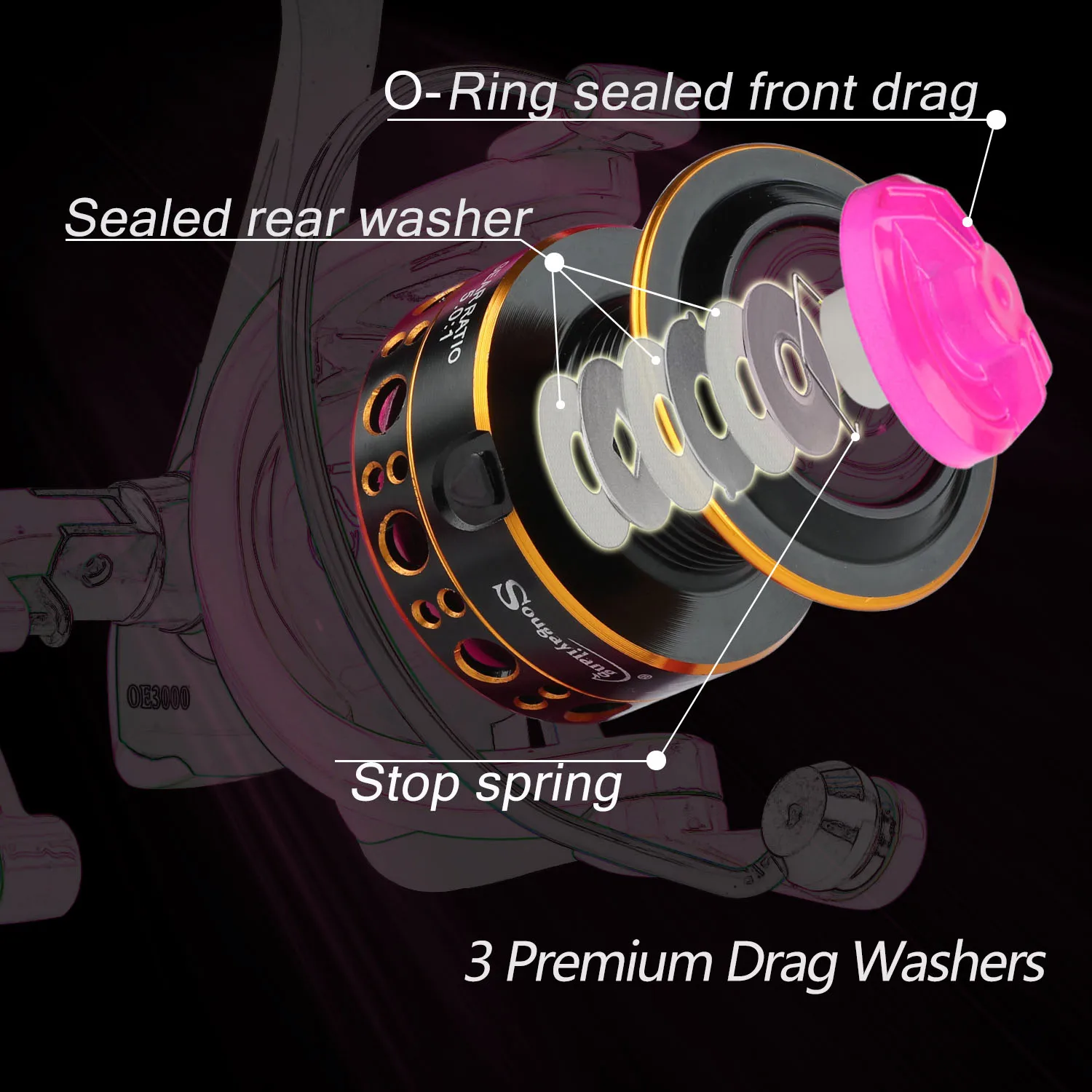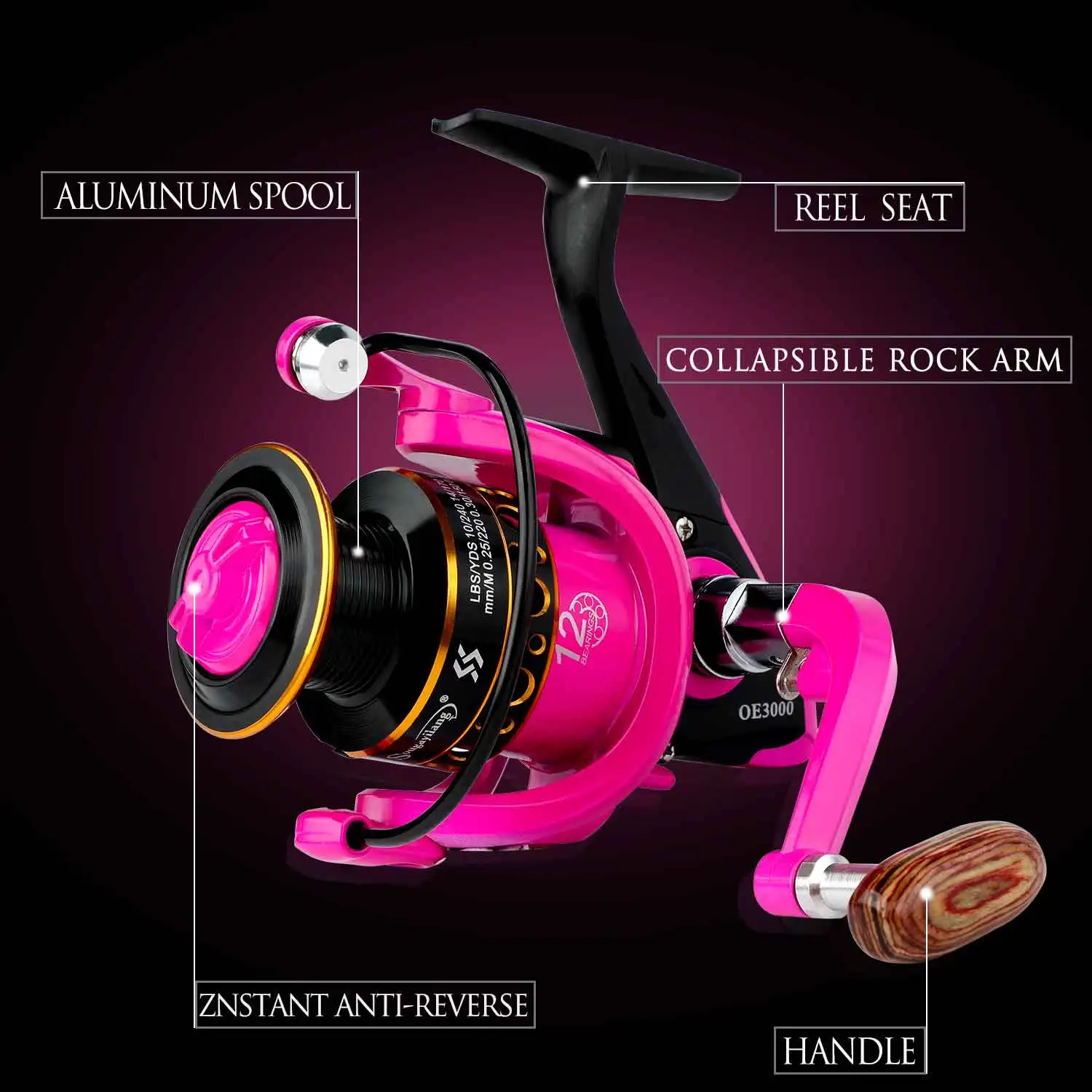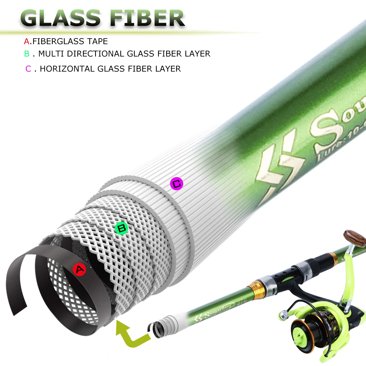 Sougayilang Caña de pescar giratoria y carrete Combo1.8-2,7 M Caña telescópica con 5,2: 1 5,0: 1 Carrete de pesca Max Drag 8kg Kit de pesca