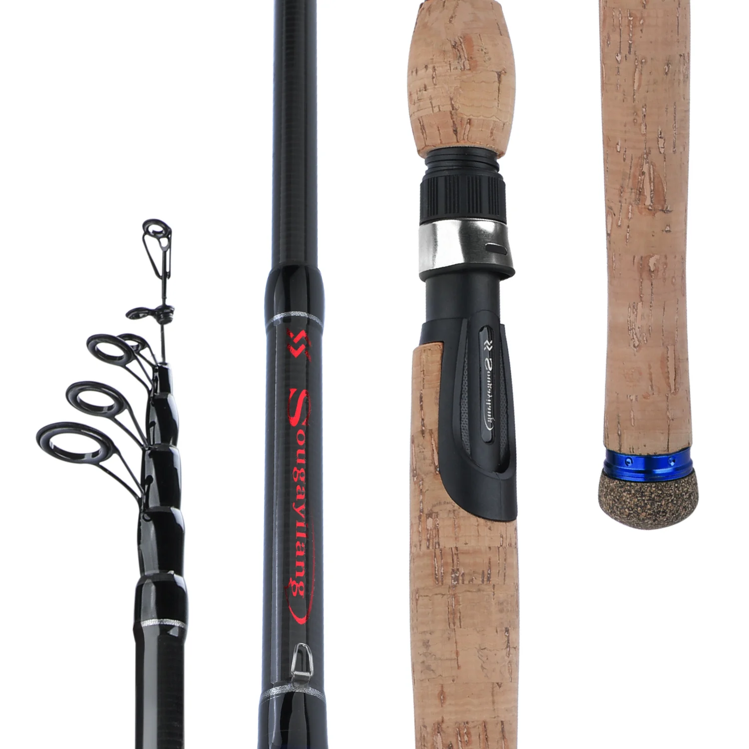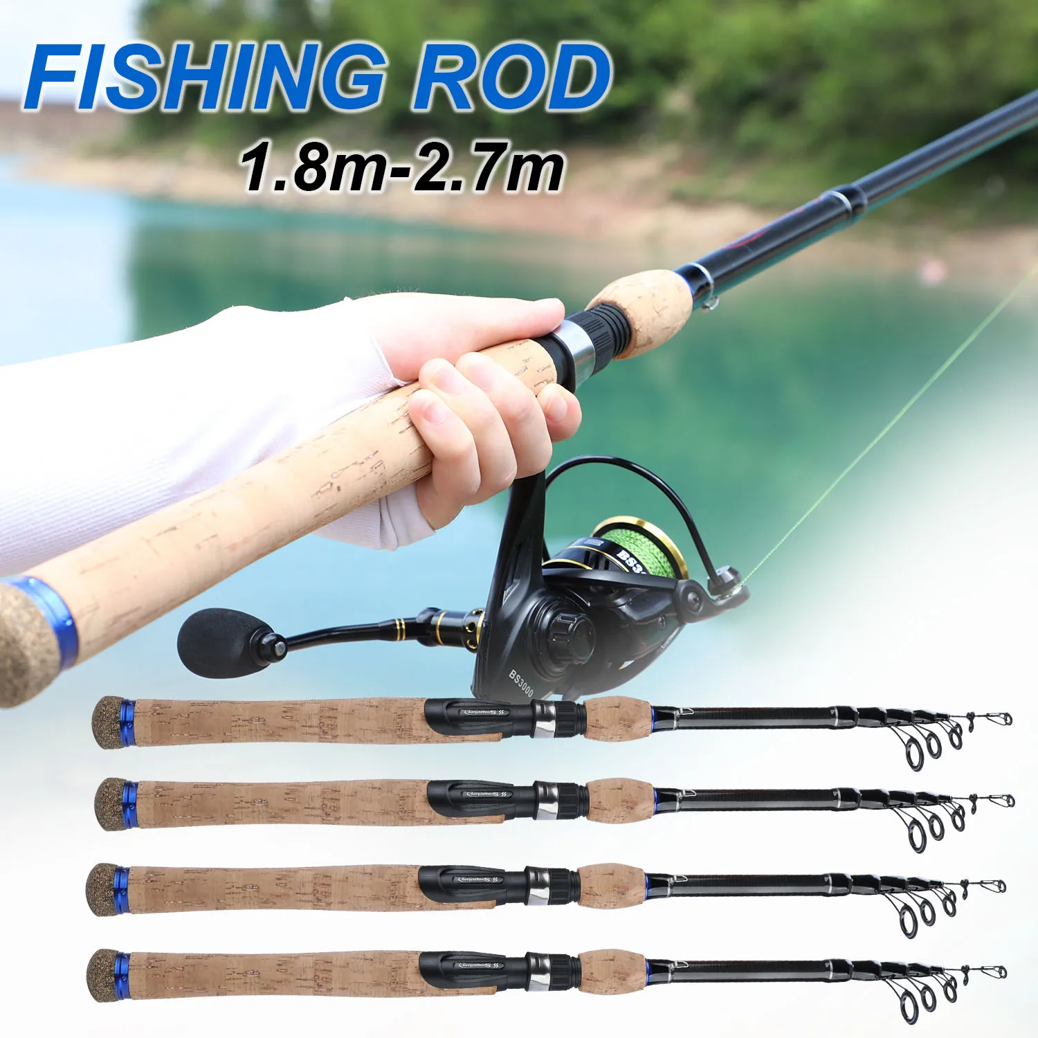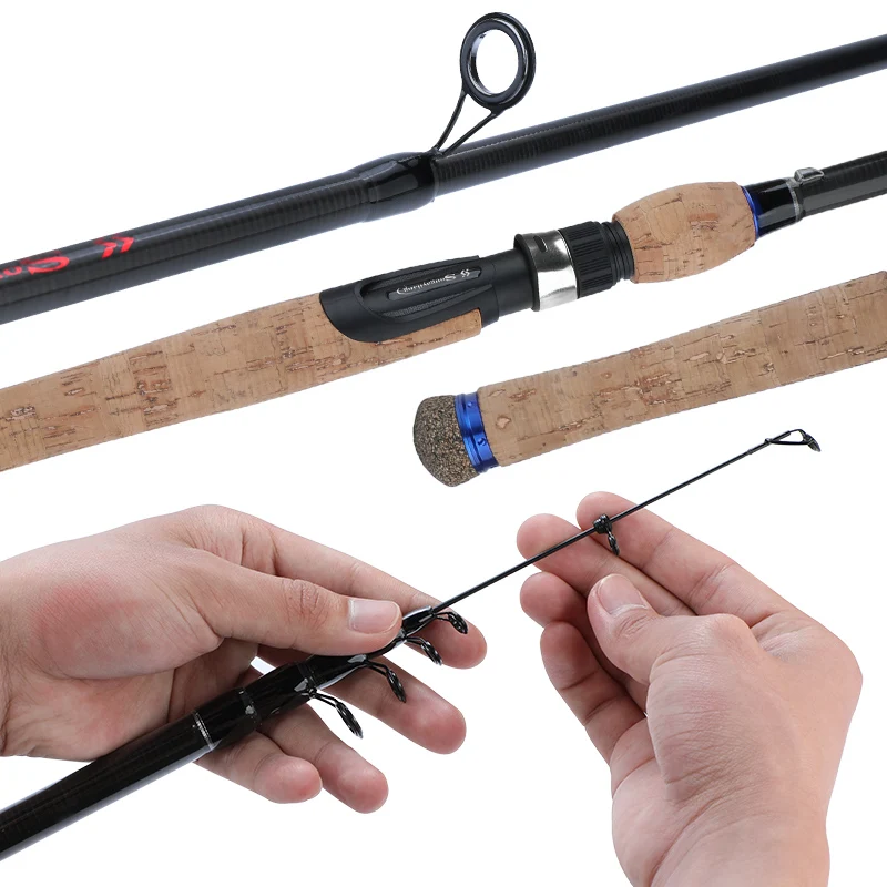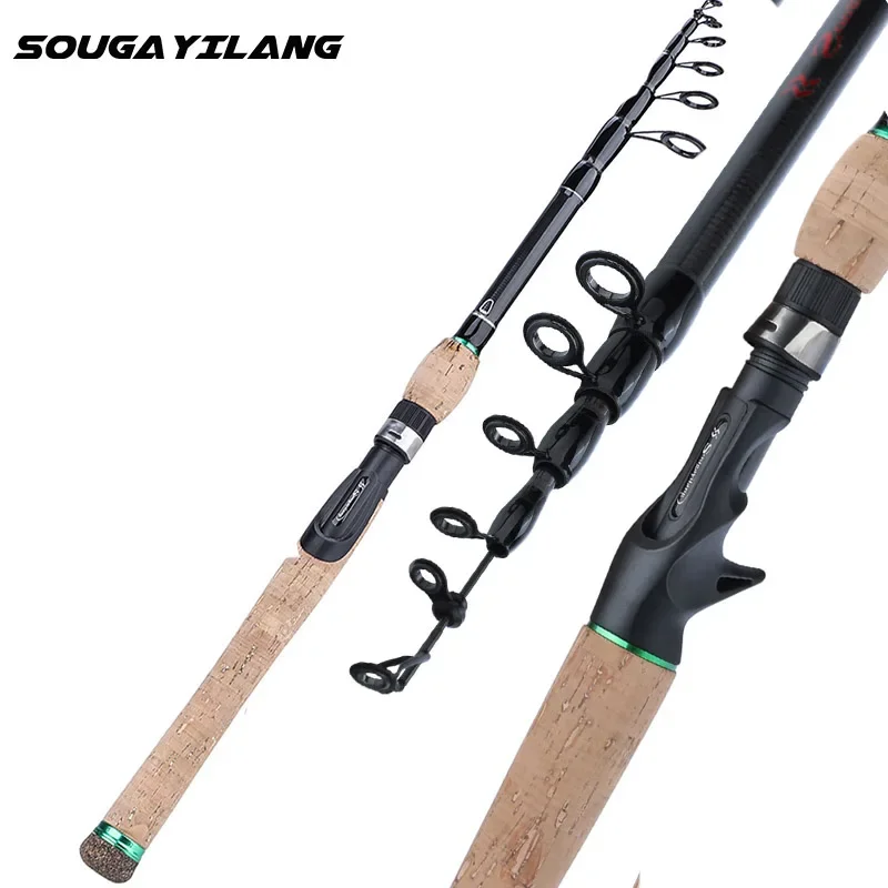 Sougayilang-caña de pescar con mango de madera de corcho, caña telescópica portátil de fibra de carbono, ultraligera, giratoria, fundición, 1,8 M, 2,1 m