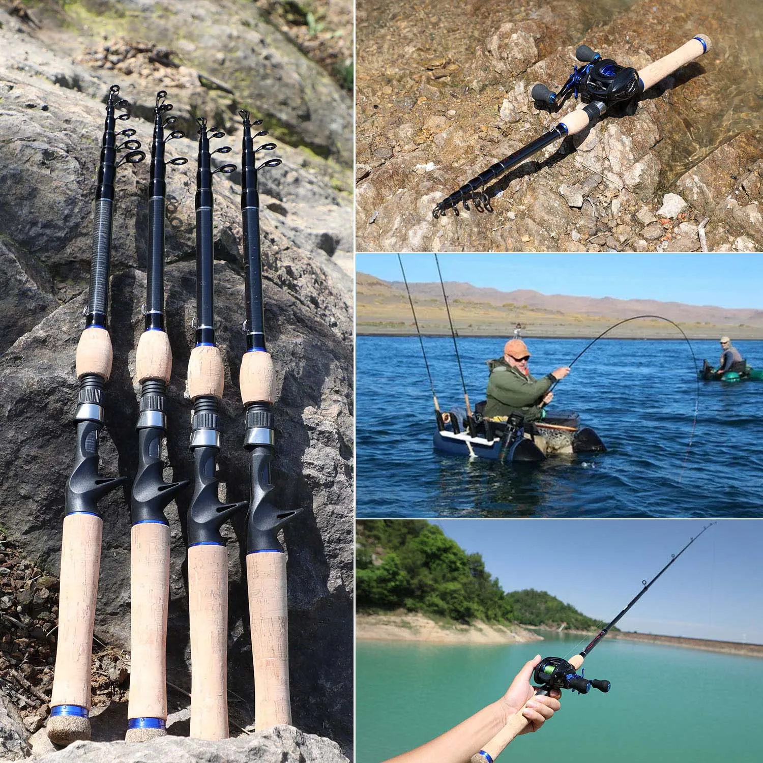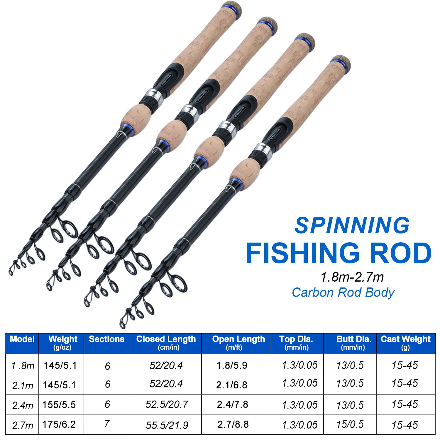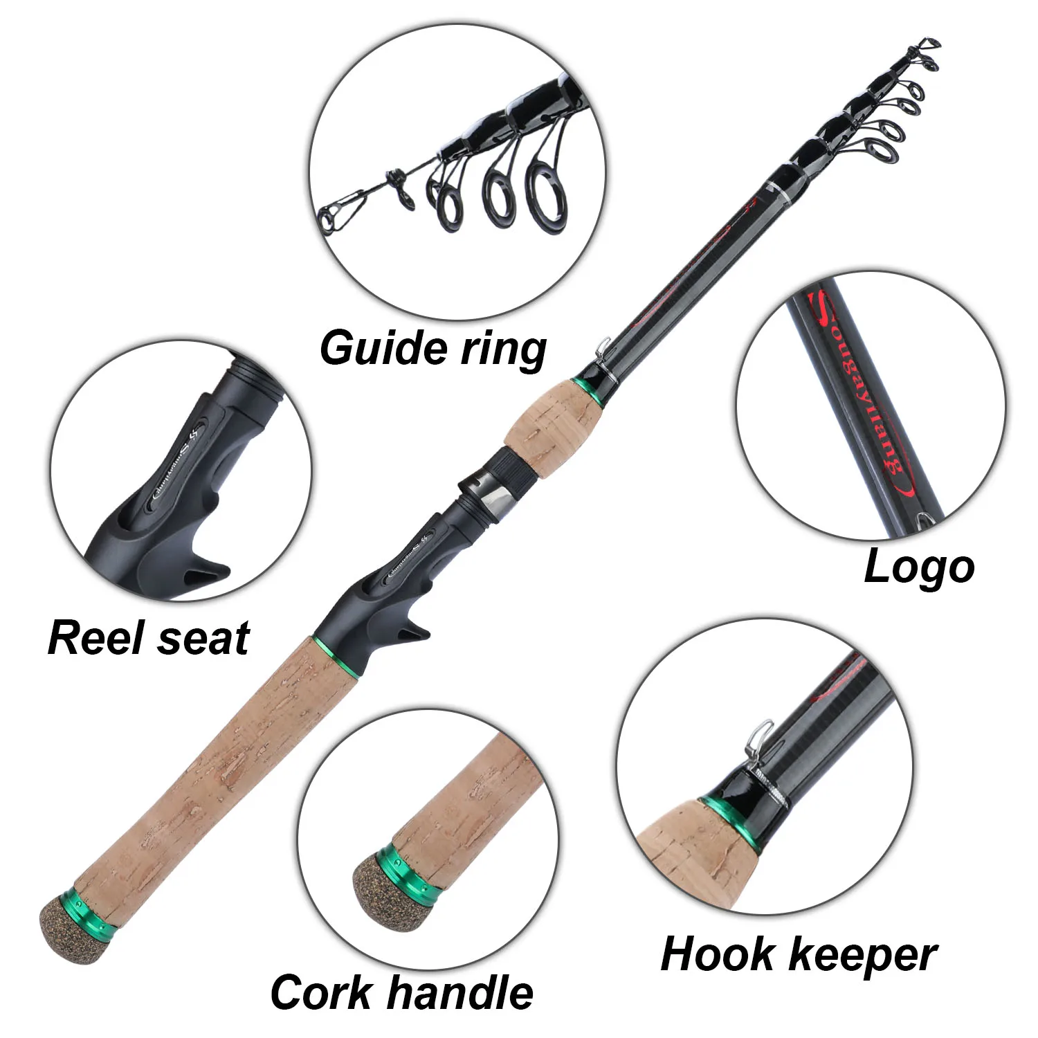 Sougayilang-caña de pescar con mango de madera de corcho, caña telescópica portátil de fibra de carbono, ultraligera, giratoria, fundición, 1,8 M, 2,1 m