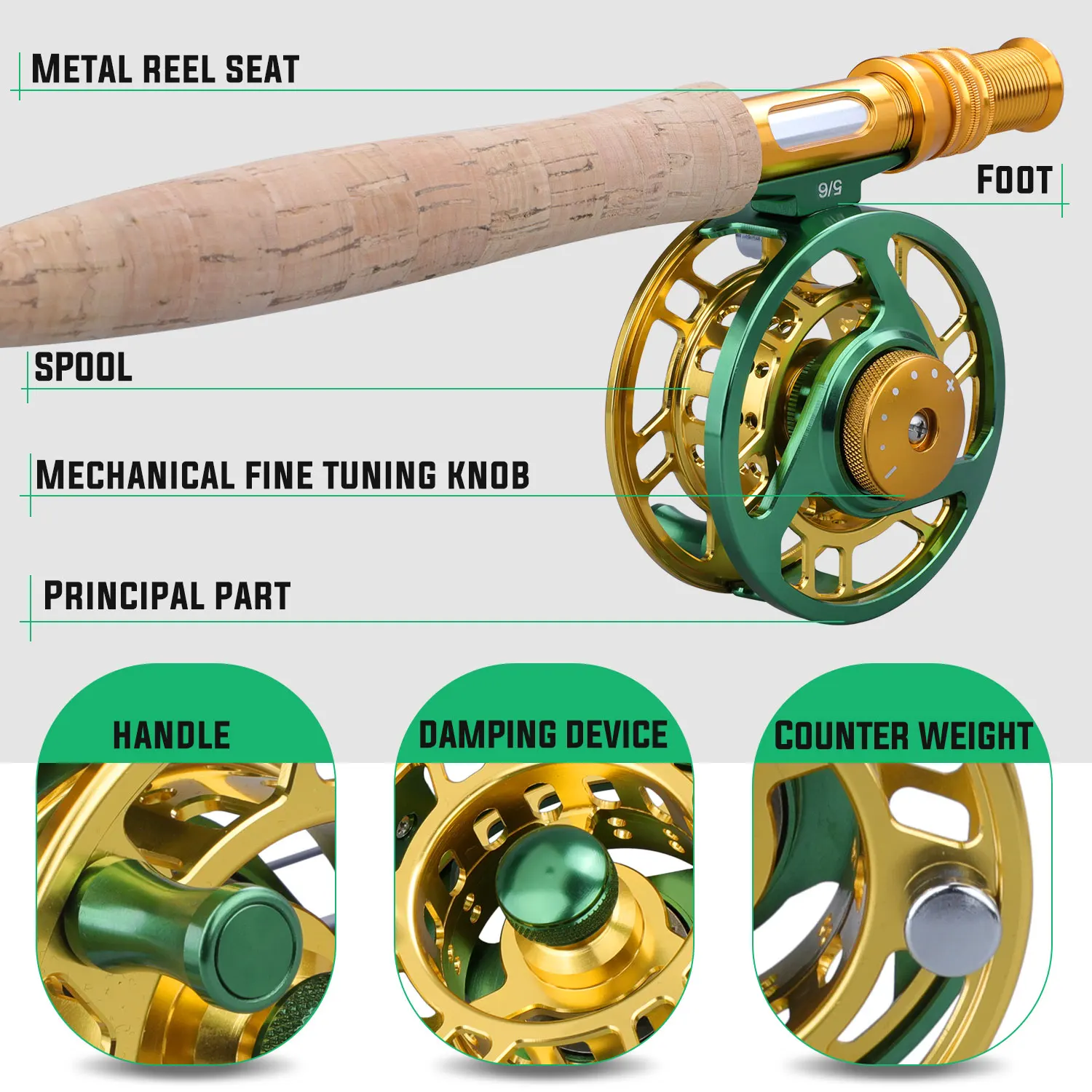 Caña divertida para viajar, incluye todo lo necesario en un solo paquete.