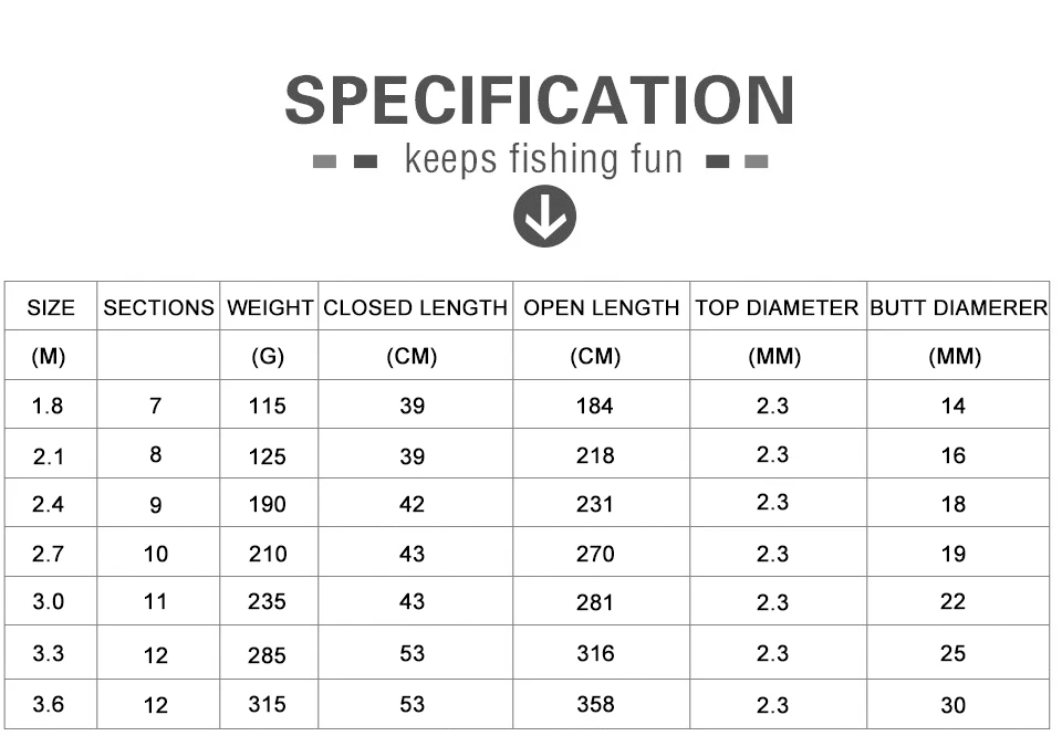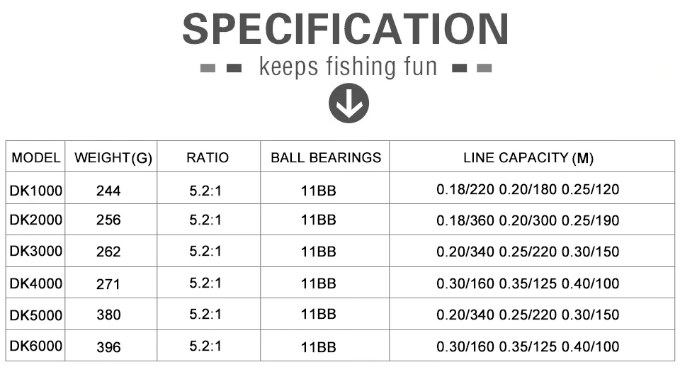 Caña de pescar:1 atraer W: 7-28g2.Material: fibra de carbono + aleación3 secciones: 7 8 9 10 11 124) Longitud: 1,8 m 2,1 m 2,4 m 2,7 m 3,0 m 3,3 m 3,6 m5 Peso: 115g 125g 190g 210g 235g 285g 315g6 cerca de longitud: 39cm 39cm, 42cm 43cm 43cm 53cm 53cmCarrete de pesca:1. Modelo: DK1000-60002 Peso: 244g 256g 262g 271g 380g 396g3. Ratio de engranaje: 5,2: 14. Casquetes: 11BB5 arrastre máximo: 5KG 6KG 8KG 8KG 10KG 10KG 12KG6. Capacidad de la línea (mm-M):BBDK1000: 0,18-220, 0,20-180, 0,25-120BBDK2000: 0,18-240, 0,20-200, 0,25-140BBDK3000: 0,20-240, 0,25-200, 0,30-140BBDK4000: 0,30-200, 0,35-160, 0,40-120BBDK5000: 0,35-150, 0,40-120, 0,45-150BBDK6000: 0,35-190, 0,40-150, 0,45-120El paquete incluye:1 caña de pescar1 carrete de pescaEstimado cliente, el sedal como regalo, ¡el tamaño se envía al azar!