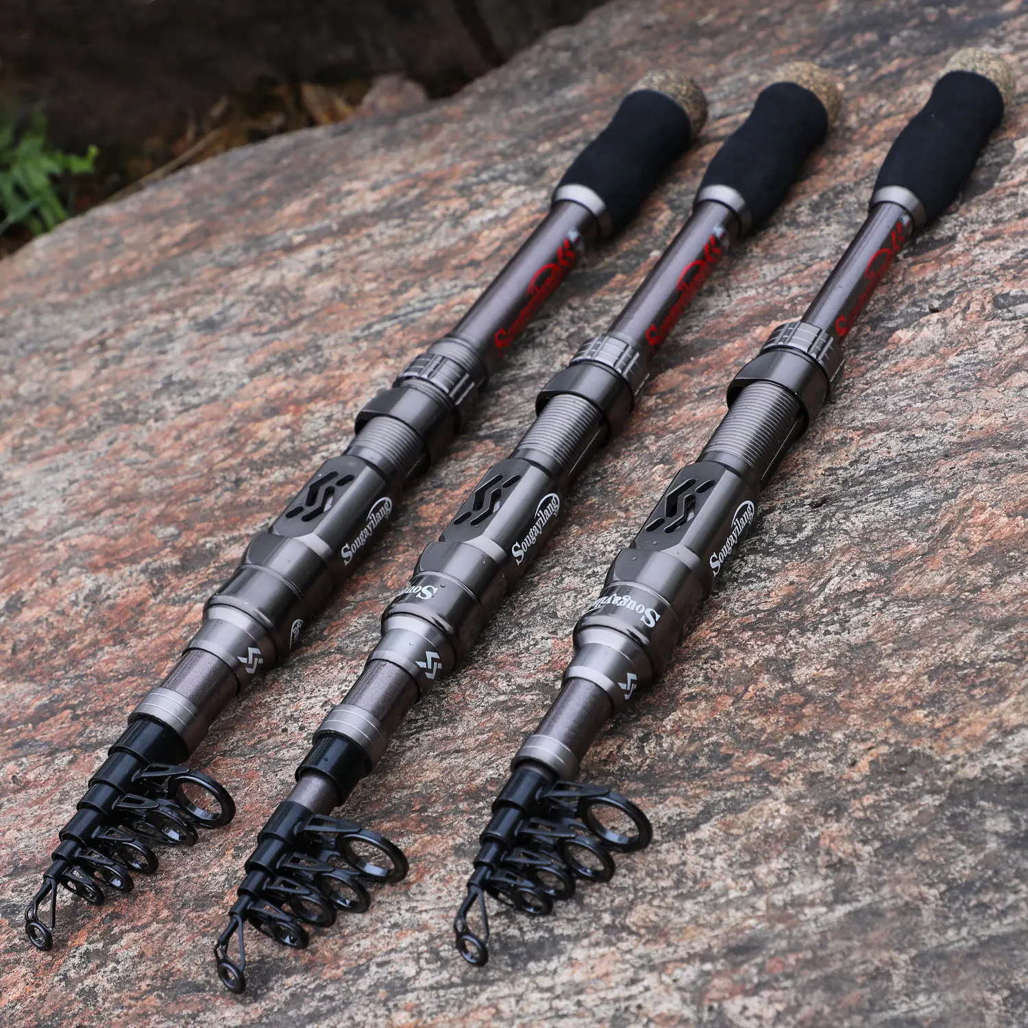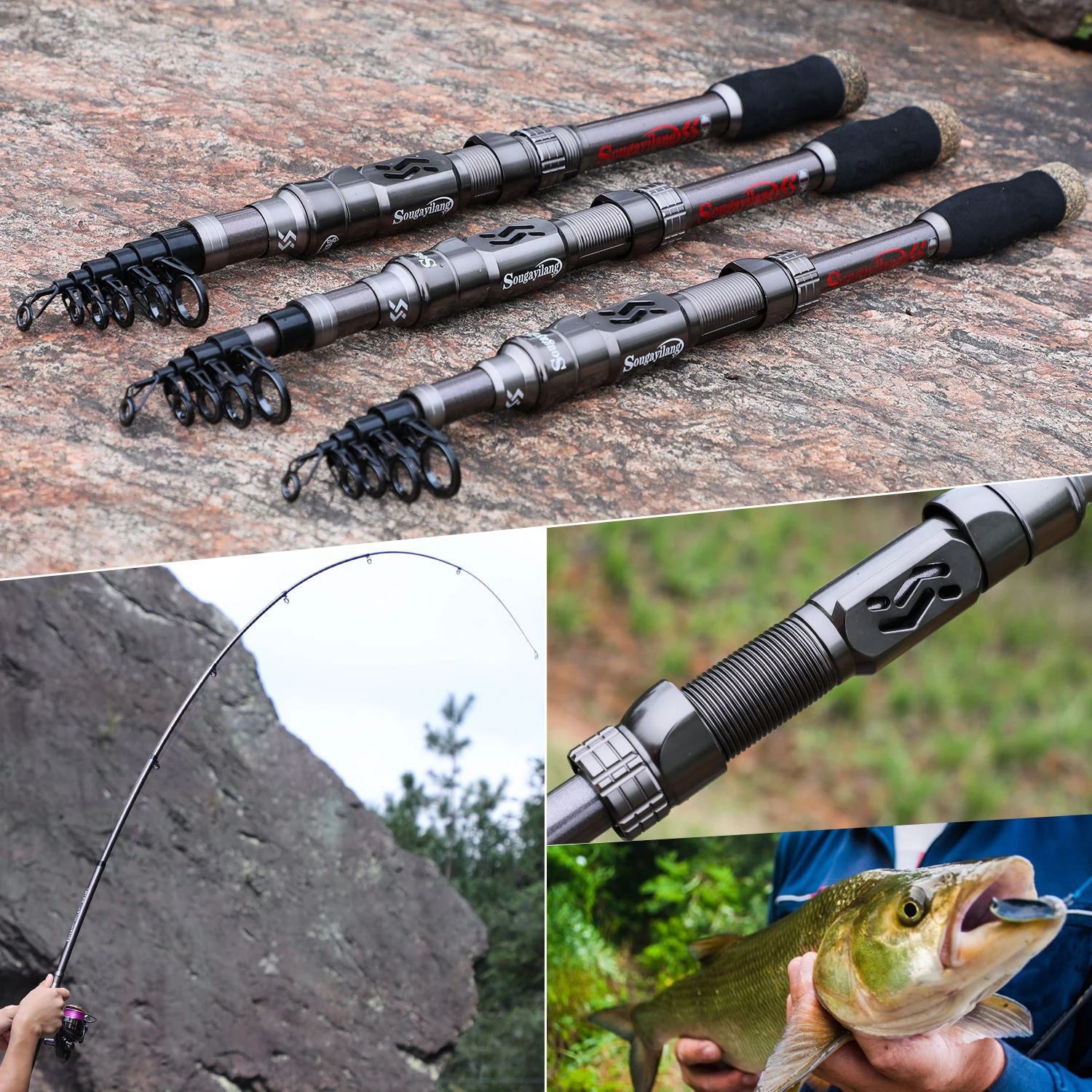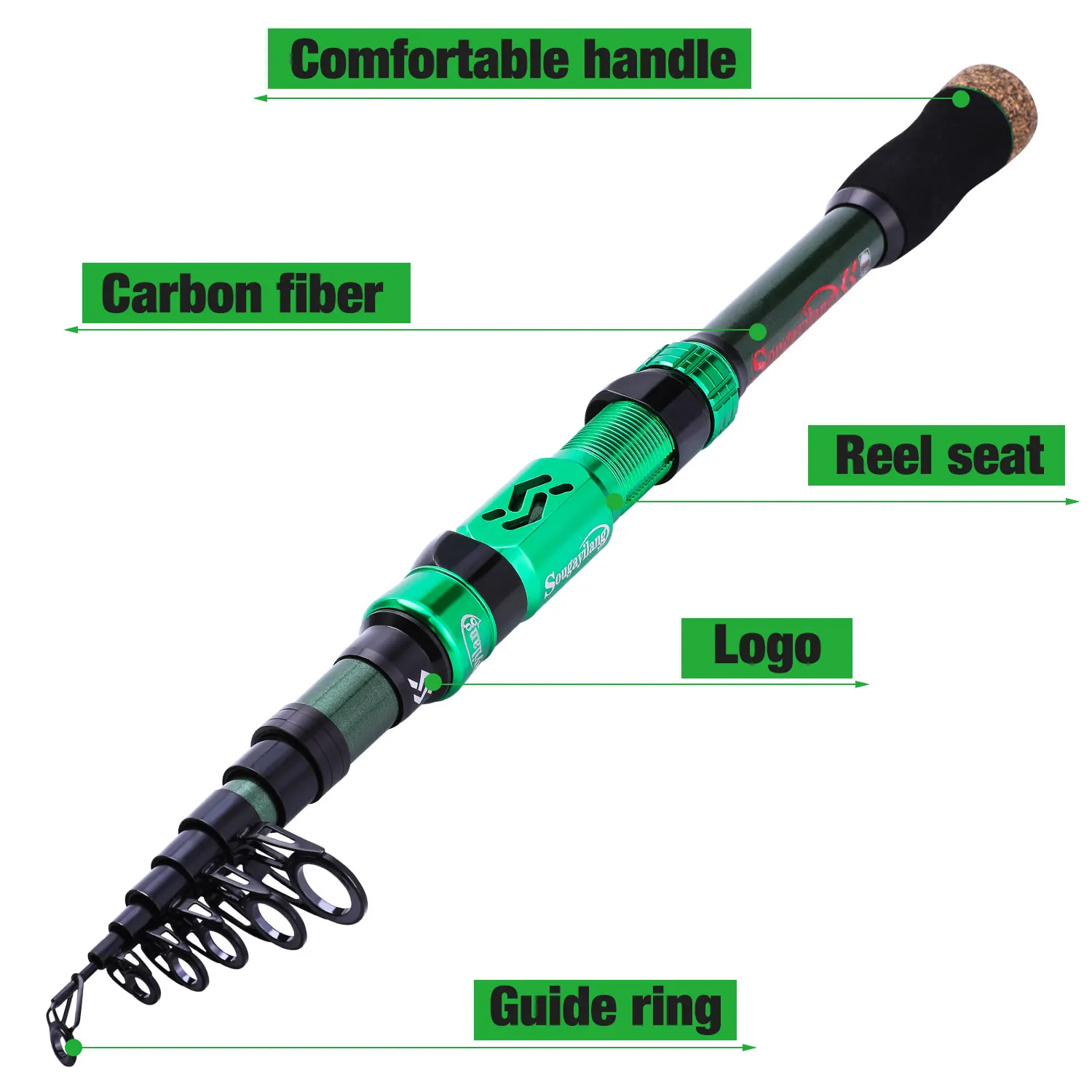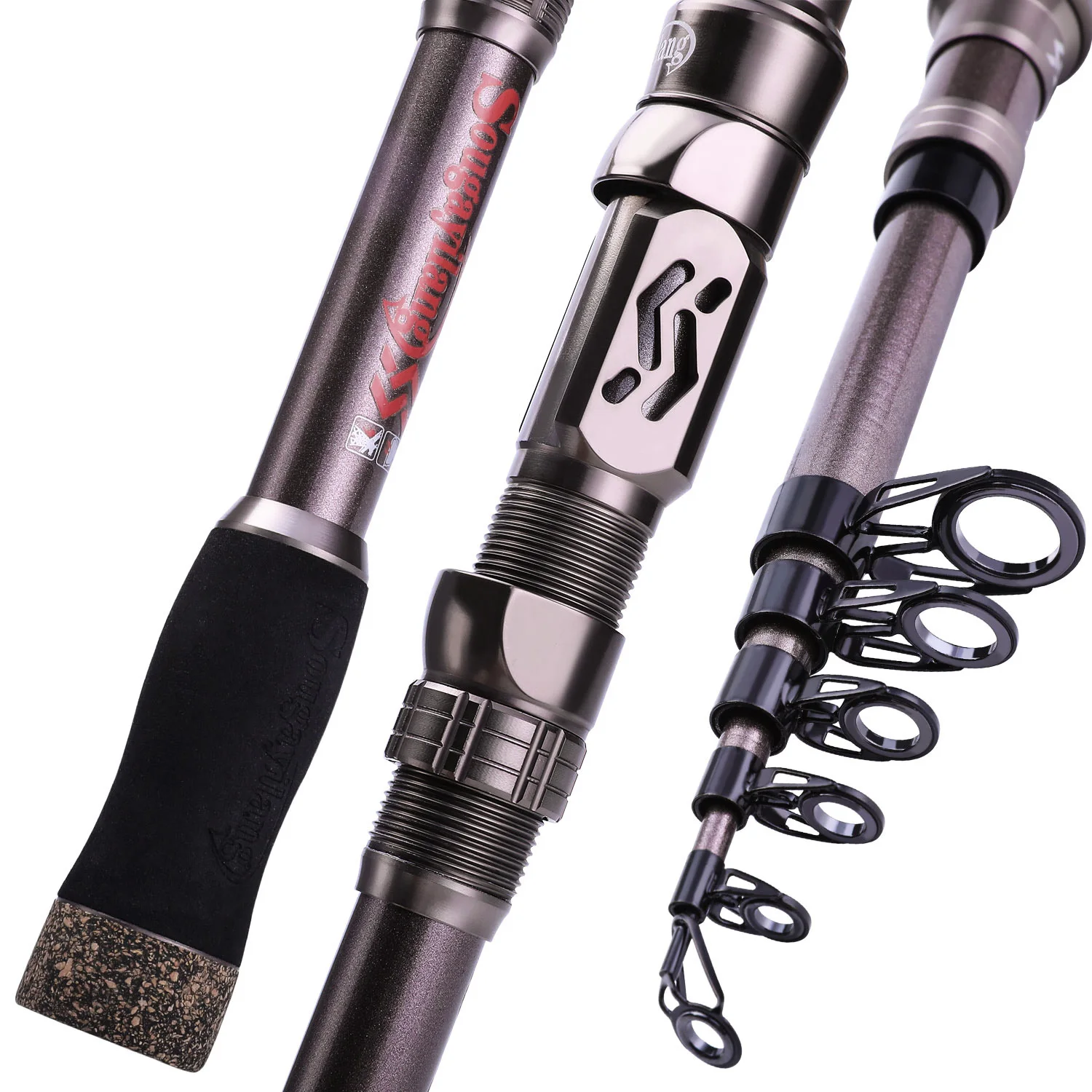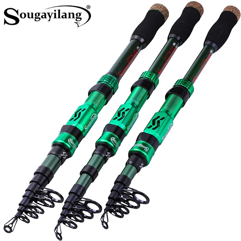 Caña de pescar Sougayilang, caña de pescar telescópica portátil de fibra de carbono de 24 toneladas, asiento de carrete mecanizado CNC, caña de viaje para trucha lubina