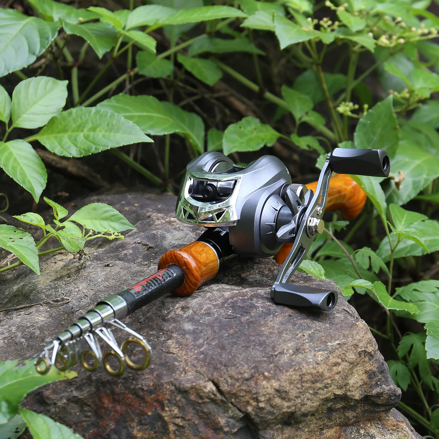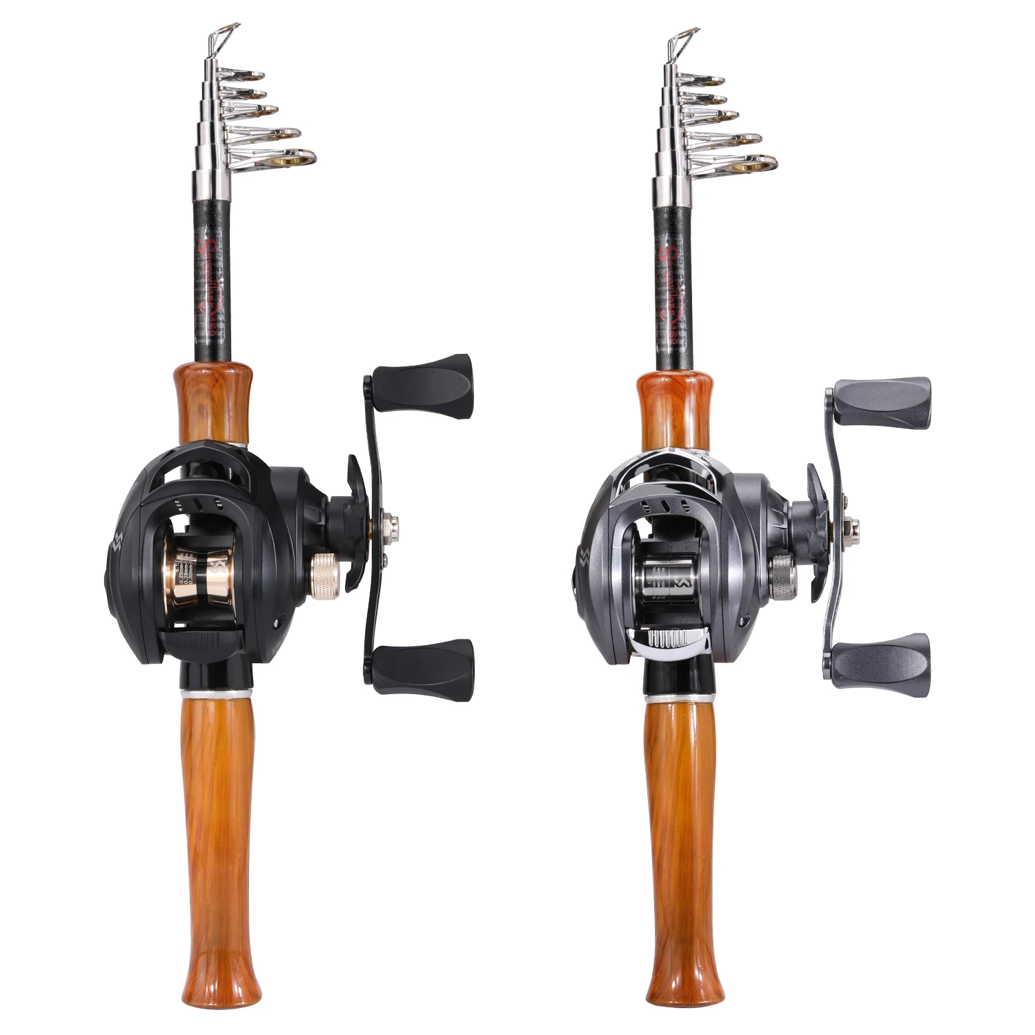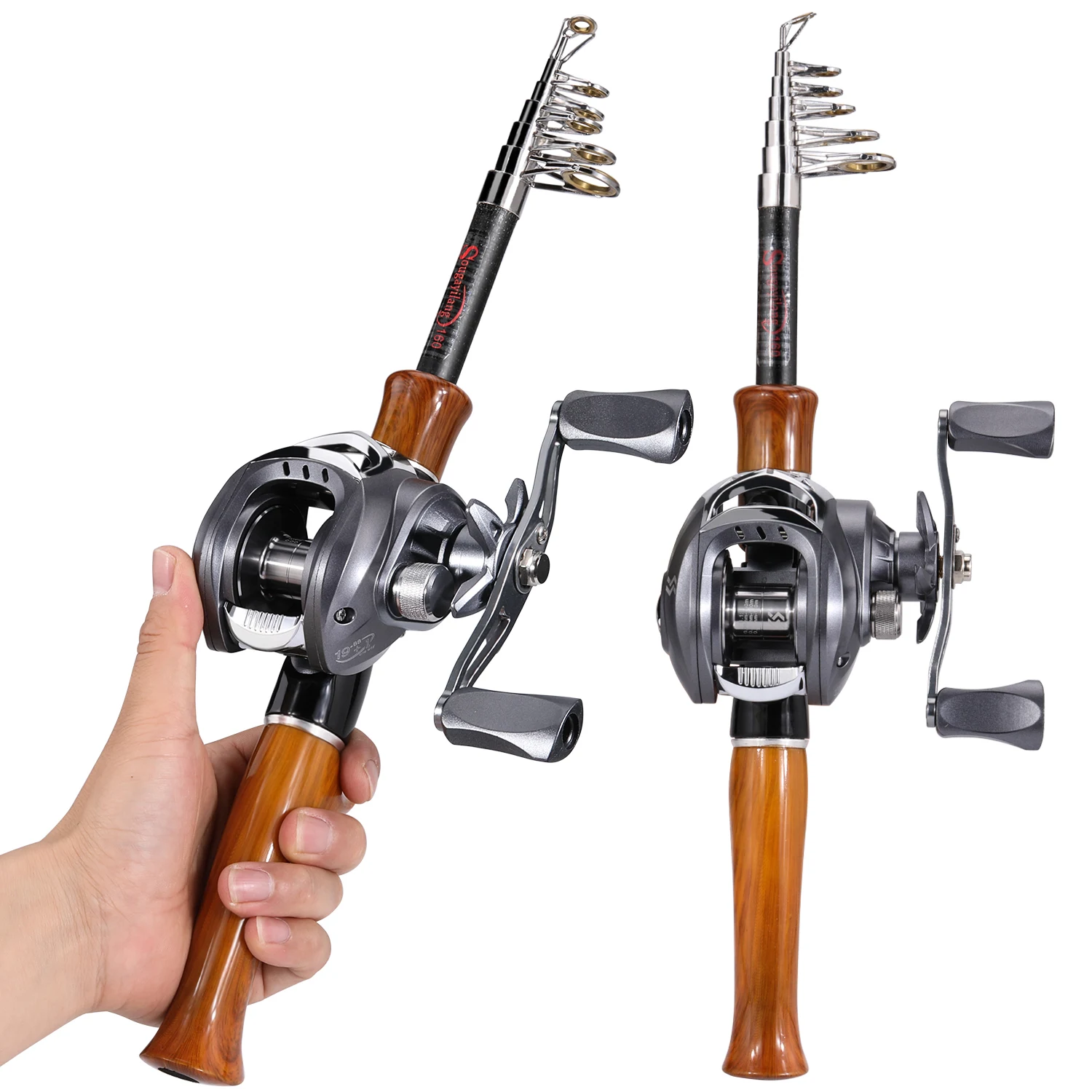 Combo de pesca de fundición Sougayilang, caña de pescar telescópica de fibra de carbono de 1,6 M, relación de engranaje 8,1: 1, carrete de pesca de aleación de aluminio