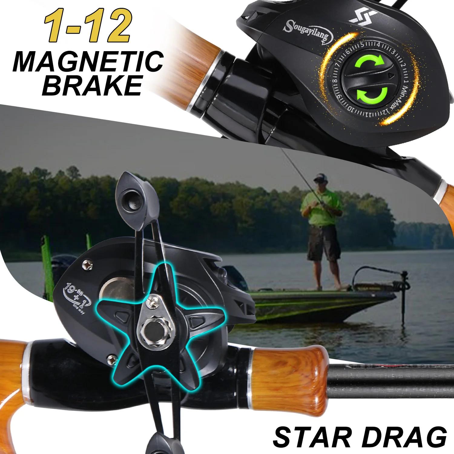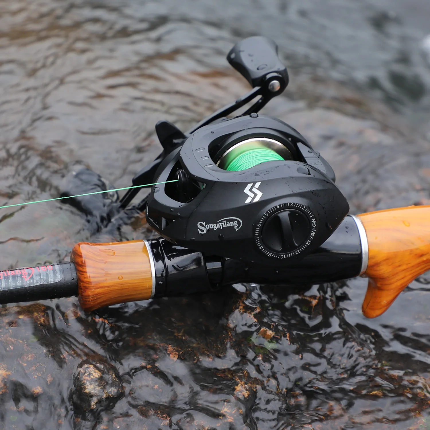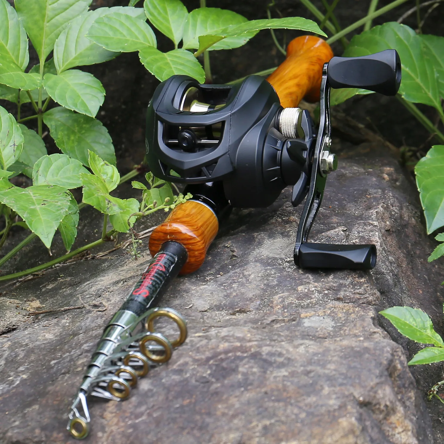 Combo de pesca de fundición Sougayilang, caña de pescar telescópica de fibra de carbono de 1,6 M, relación de engranaje 8,1: 1, carrete de pesca de aleación de aluminio