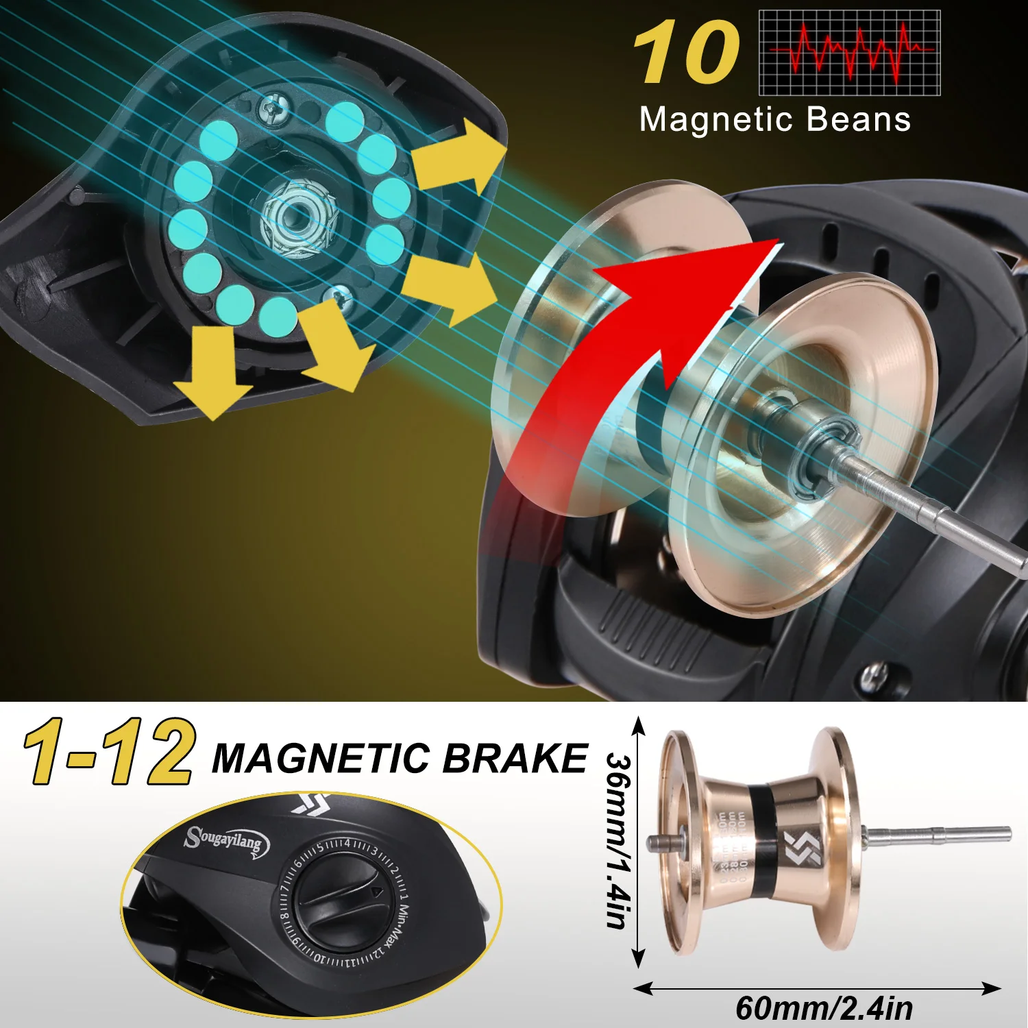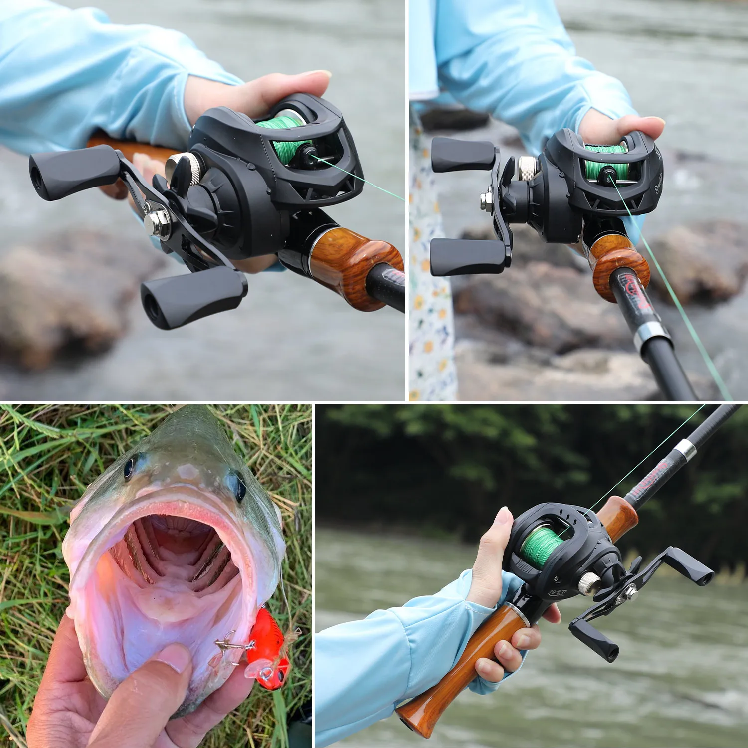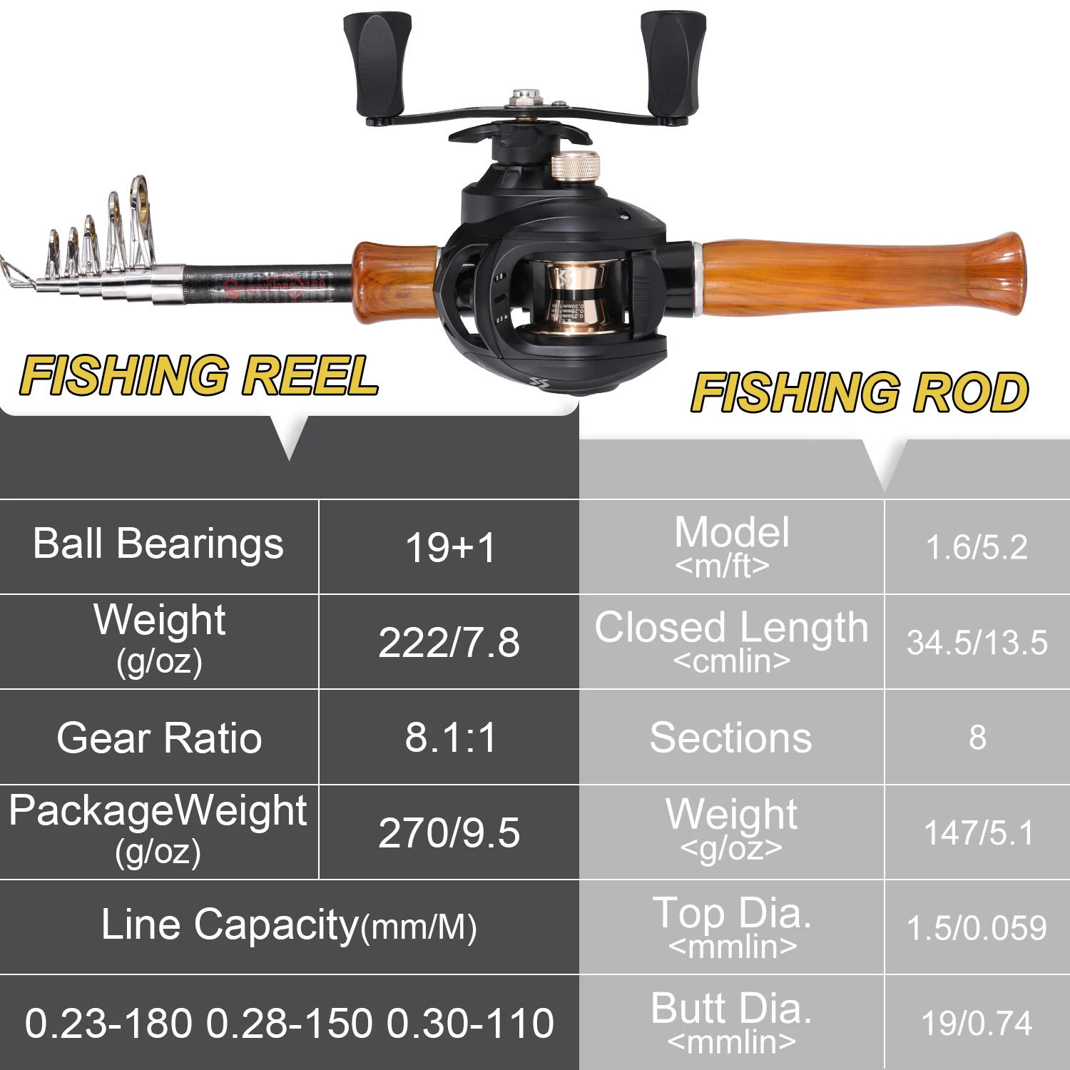 El diseño ligero y portátil hace que quepa fácilmente en el coche, el maletero, la escotilla del barco o la mochila. Carrete de aluminio con equipo de alta resistencia. Las Cañas giratorias y los carretes combinados te permiten viajar a tu lugar de pesca favorito y disfrutar de la pesca cuando y donde quieras.
