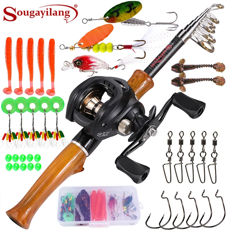 Combo de pesca de fundición Sougayilang, caña de pescar telescópica de fibra de carbono de 1,6 M, relación de engranaje 8,1: 1, carrete de pesca de aleación de aluminio