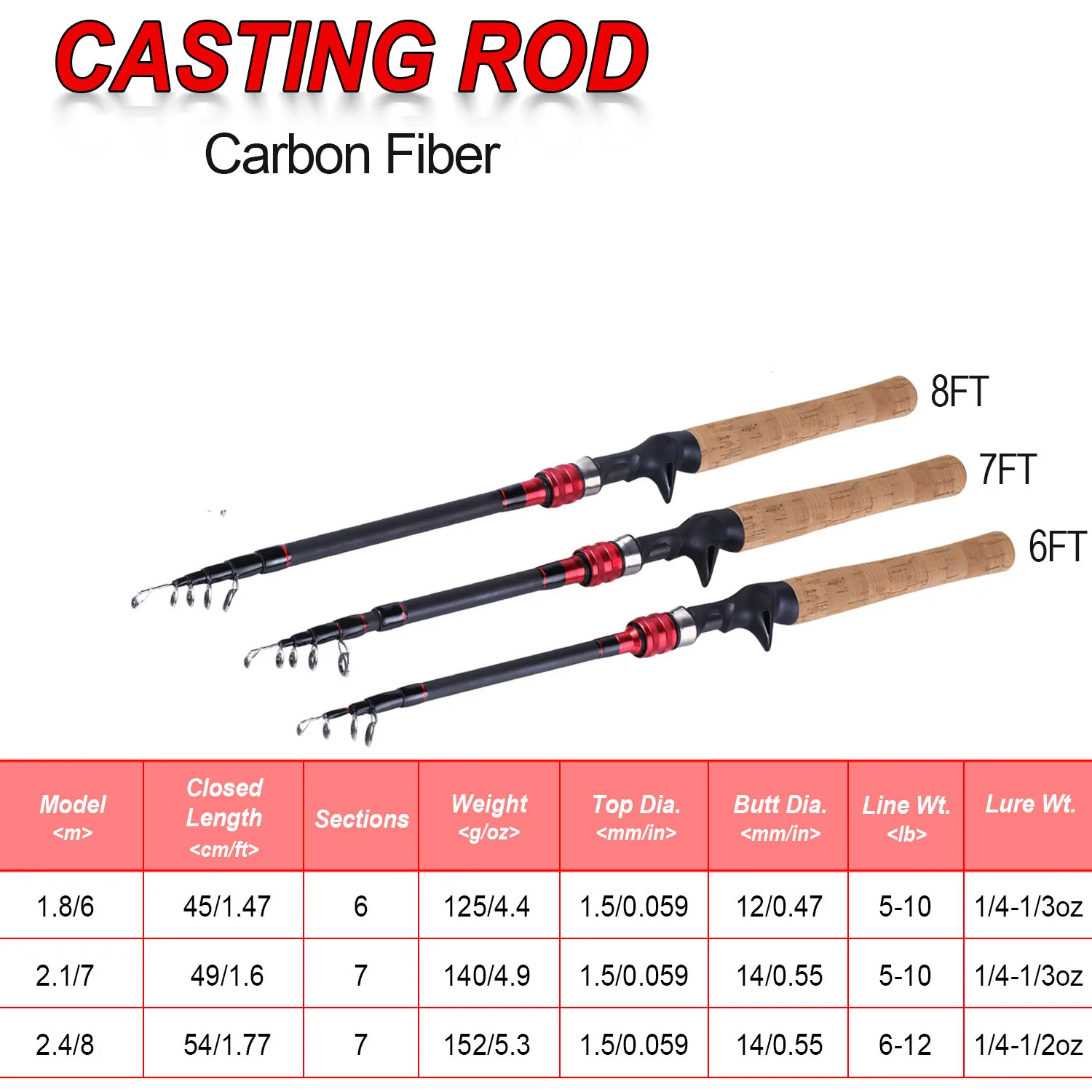 Sougayilang-caña de pescar telescópica portátil, ultraligera, fibra de carbono, señuelo, giratoria, de fundición, aparejos de pesca, 1,8 M, 2,1 M, 2,4 M
