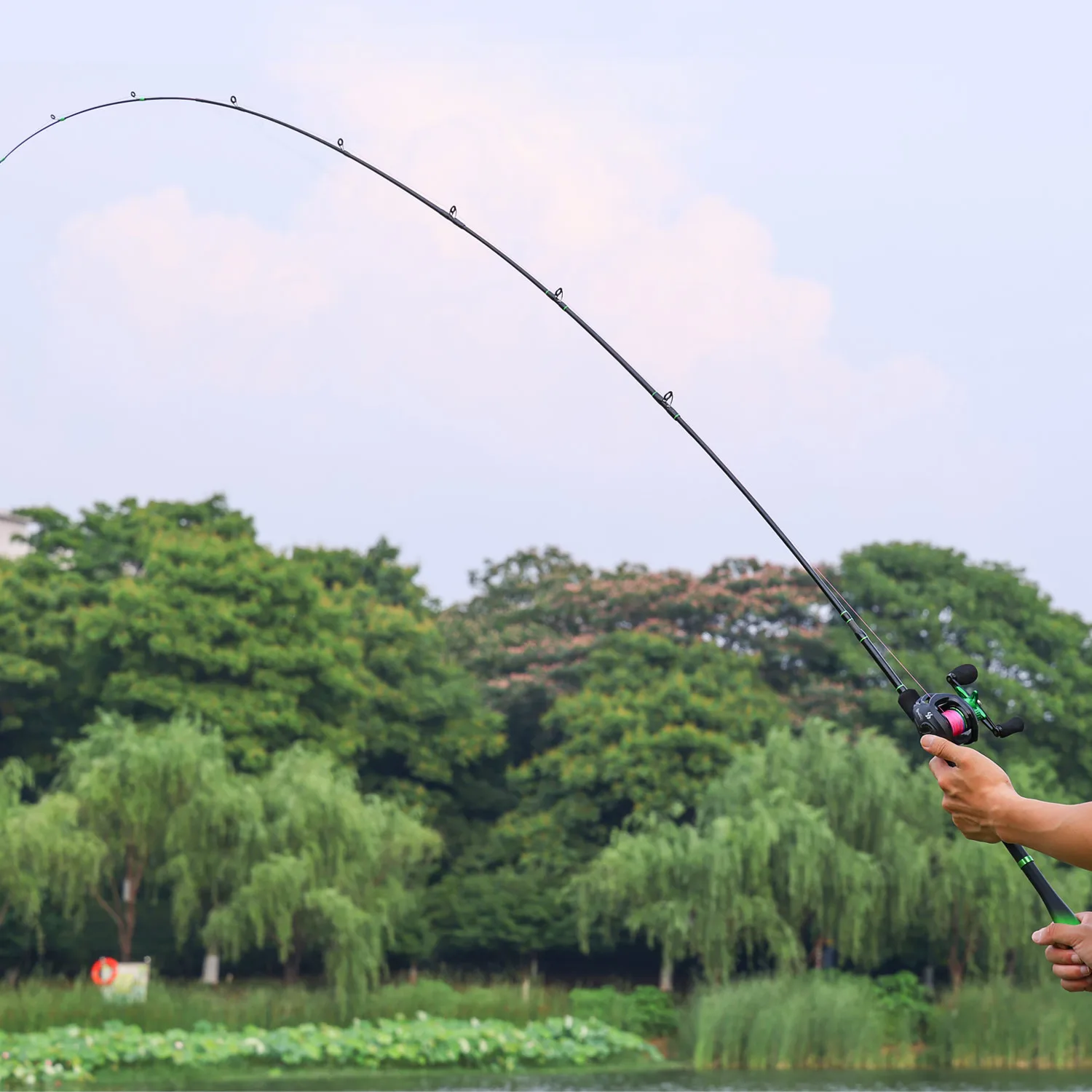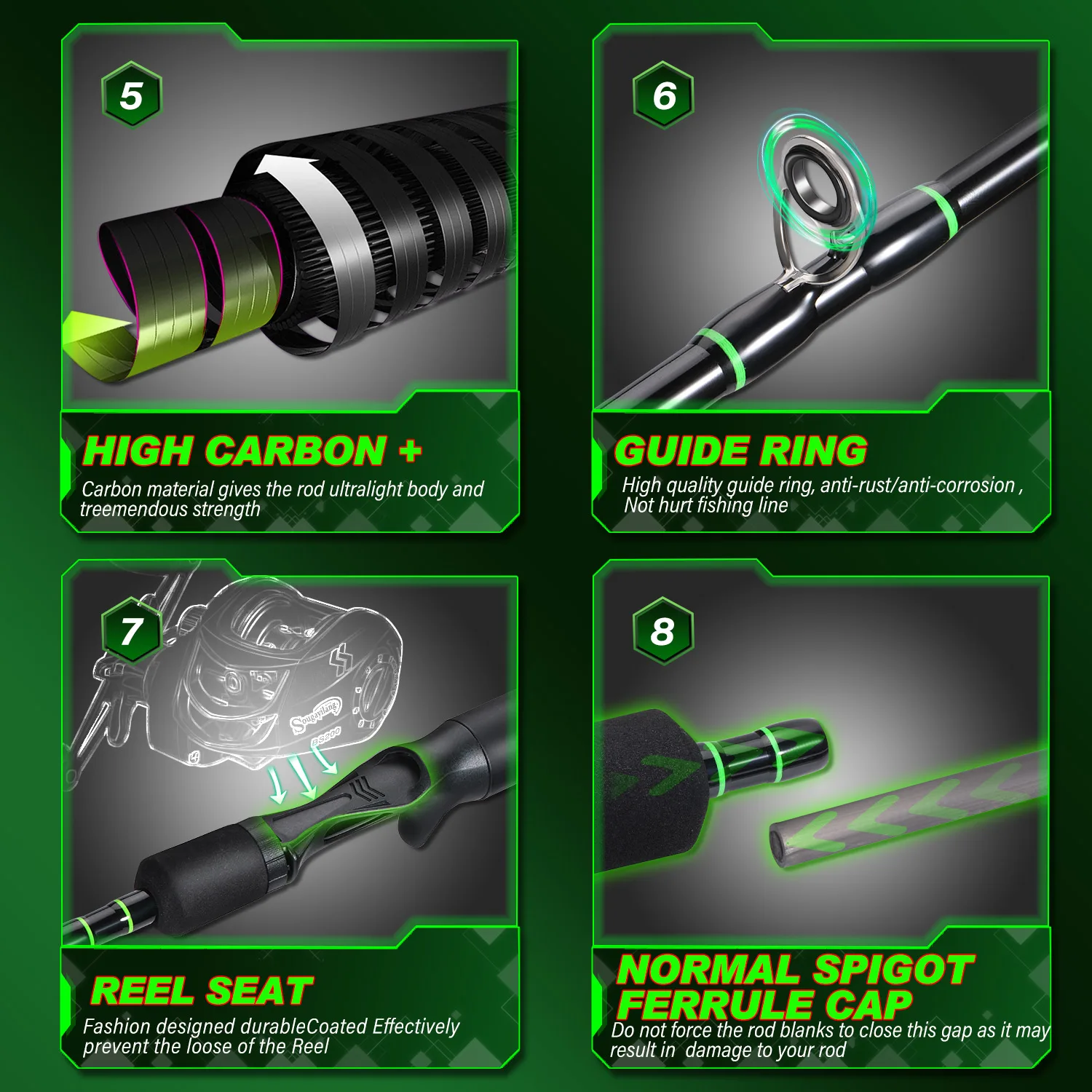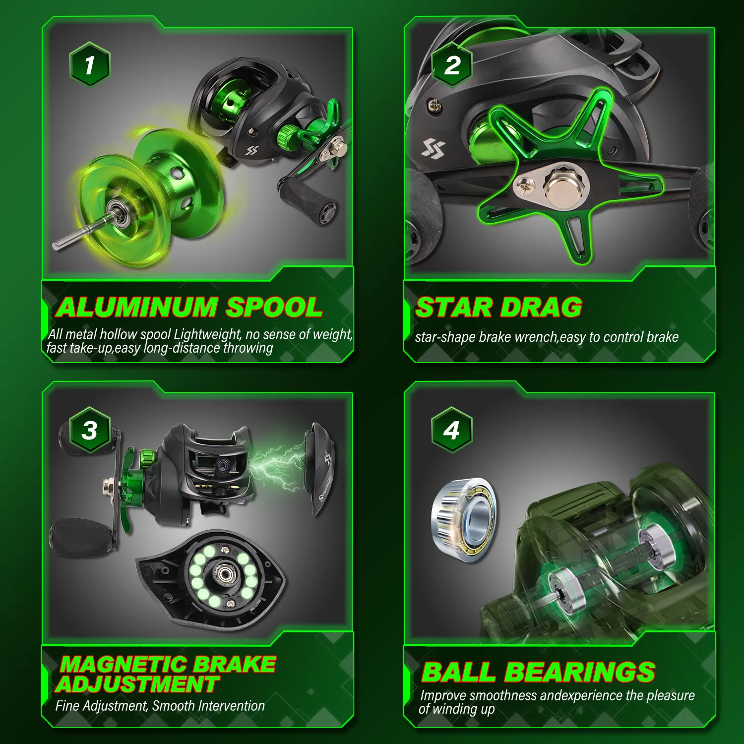 Sougayilang-caña y carrete de Pesca Baitcasting, conjunto combinado de 5 secciones, caña de fibra de carbono y carrete de fundición de arrastre máximo de 10kg para Pesca de lubina