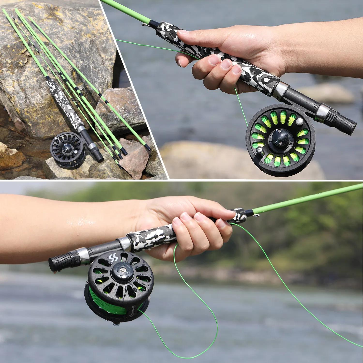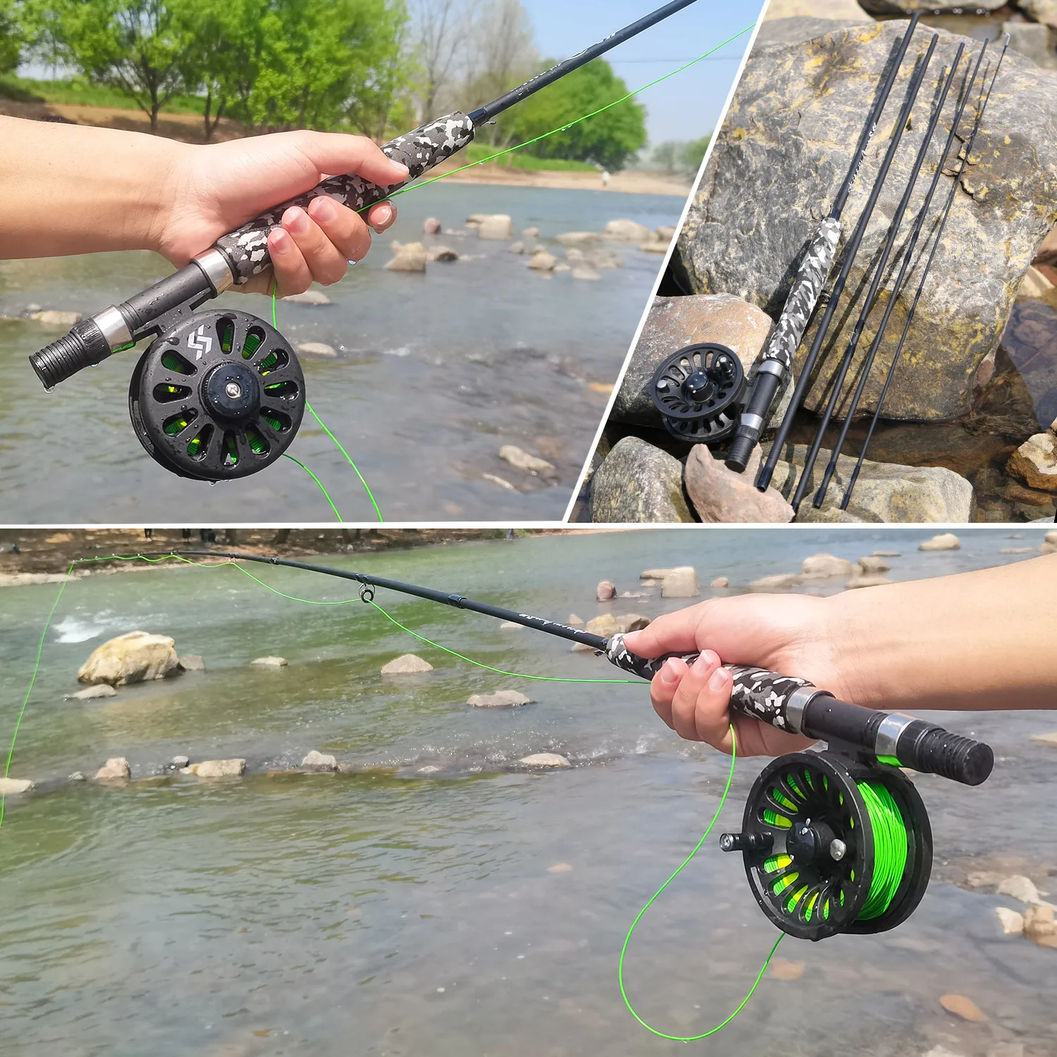 Sougayilang caña y carrete de pesca con mosca, combinación de múltiples secciones para pesca de trucha, adecuado para pesca de ocio en Río