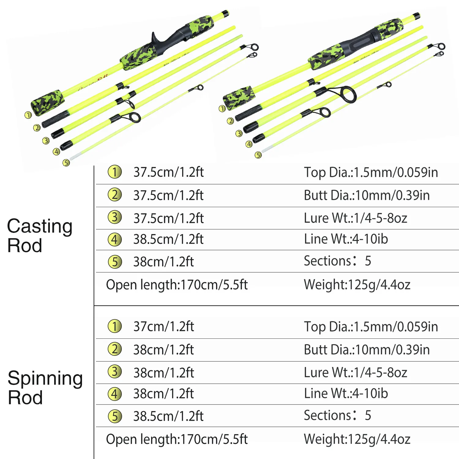 Sougayilang, 5 secciones, señuelos de fundición giratoria, cañas de pescar, peso ultraligero, fibra de carbono para viajes, pesca de carpa de agua dulce, Pesca