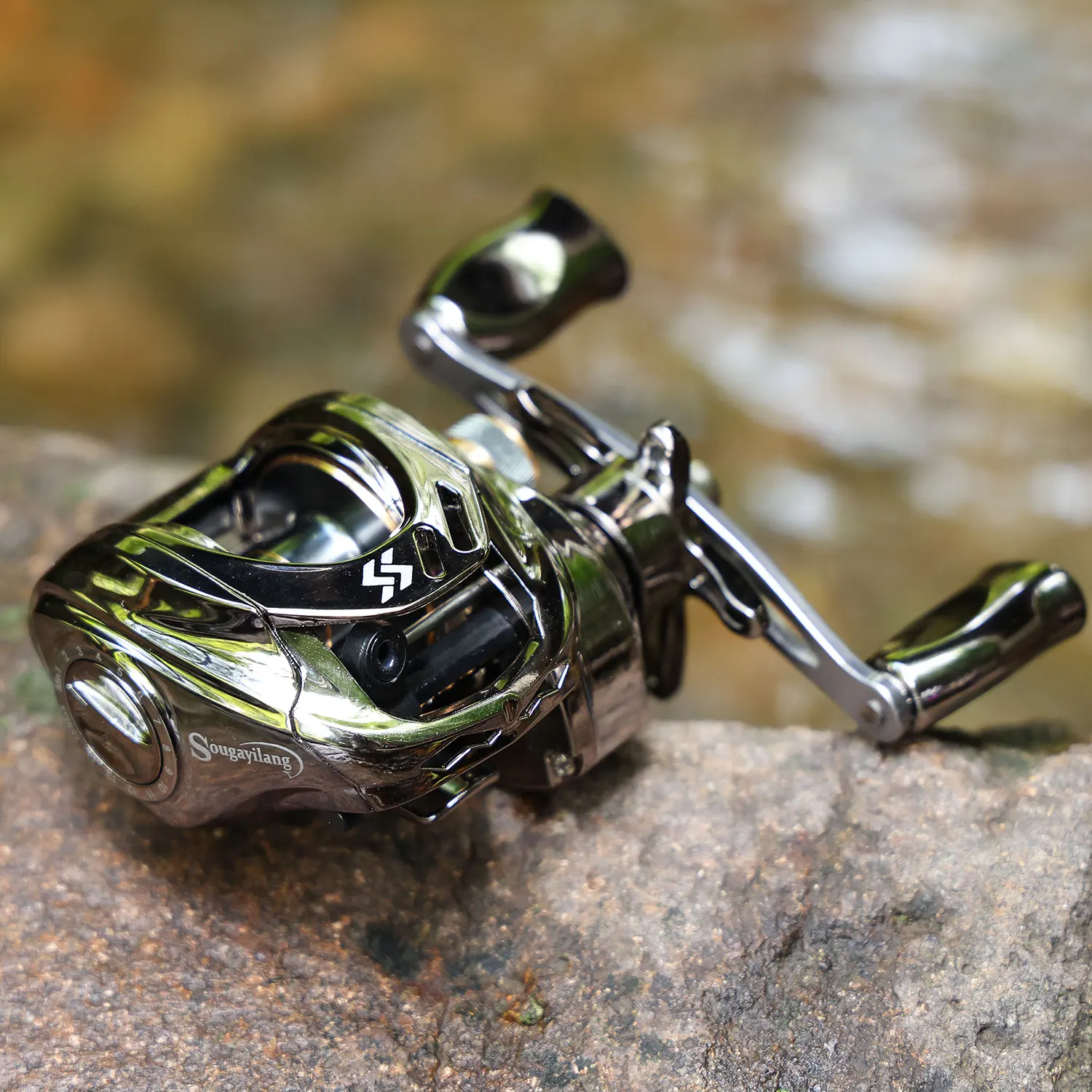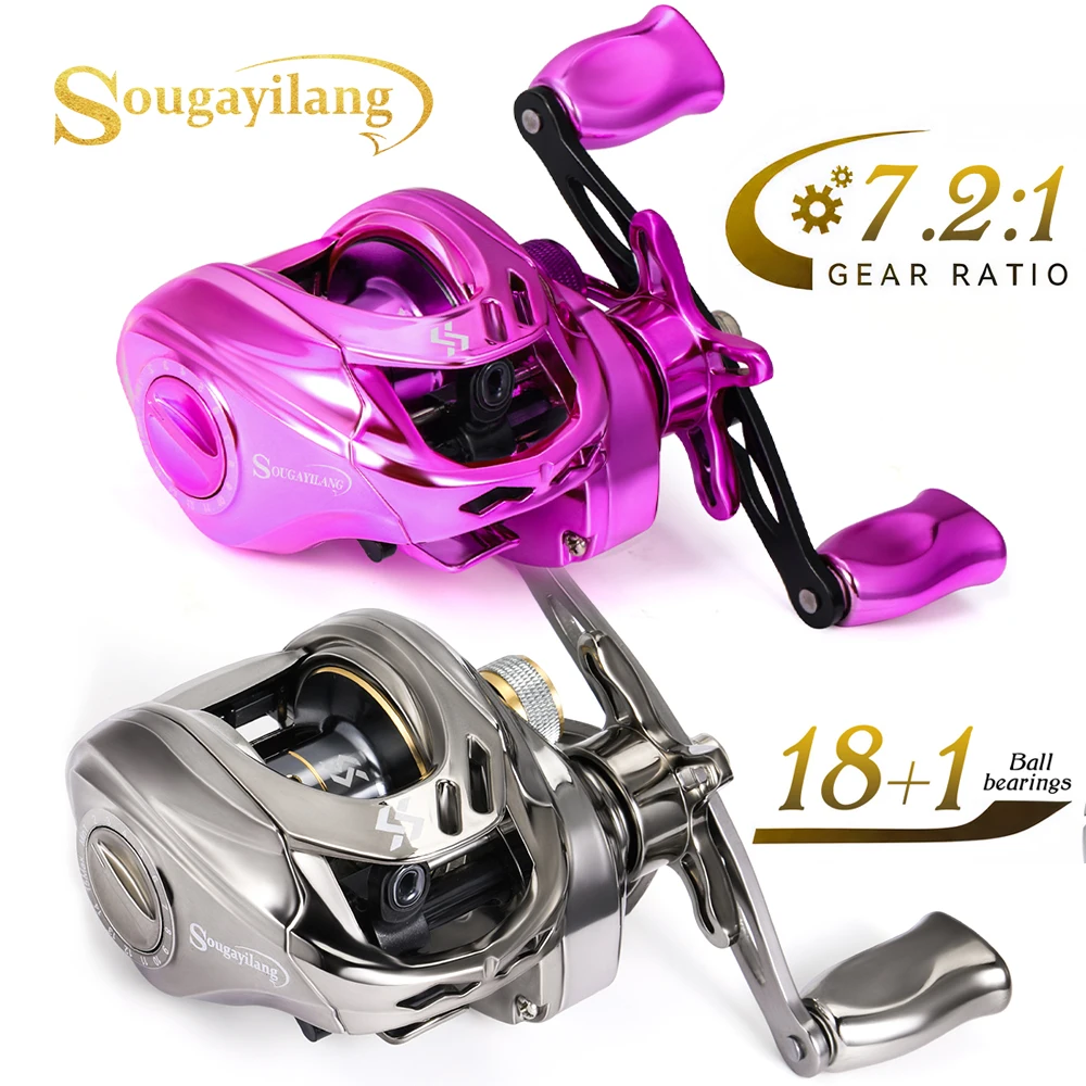 Sougayilang-carrete de Baitcasting 7,2: 1, relación de engranaje de alta velocidad, arrastre máximo de 10kg, carrete de fundición con carrete de aluminio para pesca de lubina y Lucio