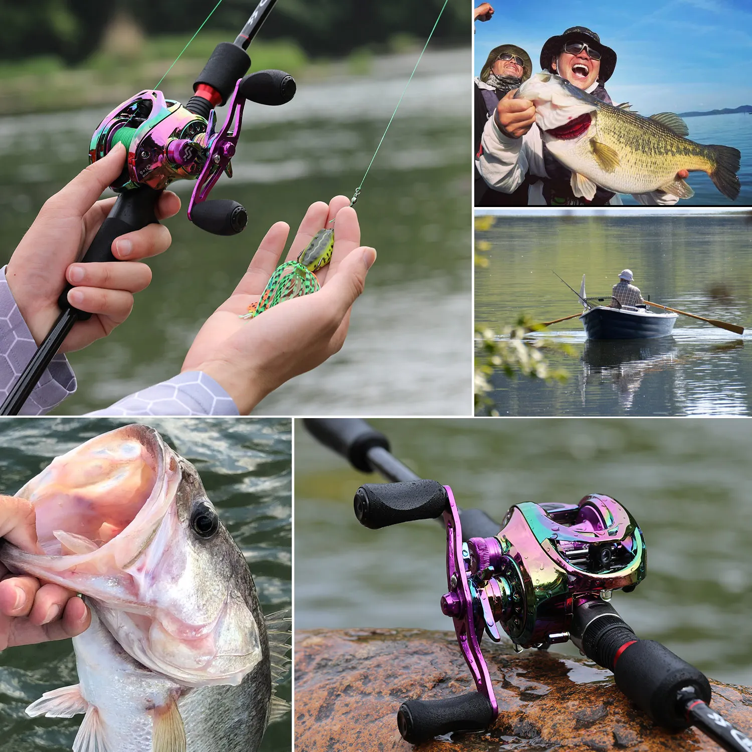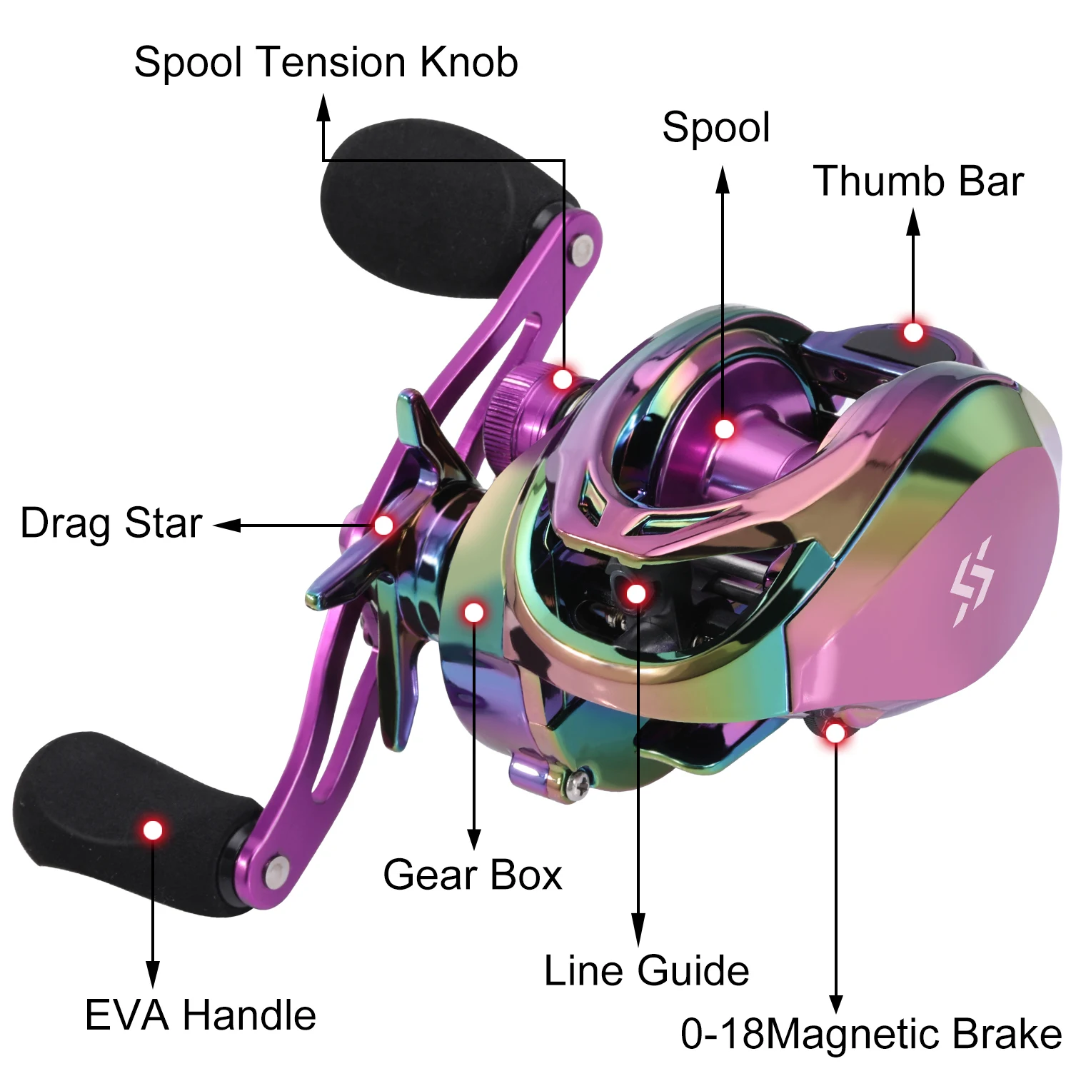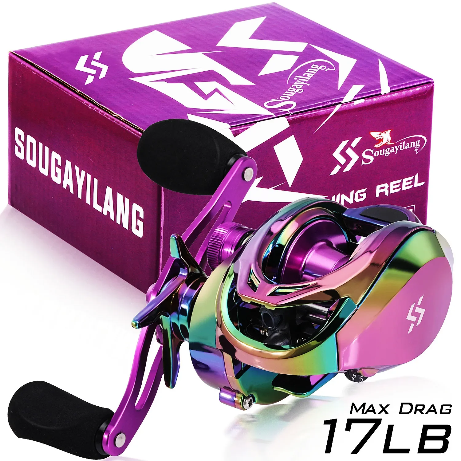 Sougayilang-carrete de Baitcasting Multicolor, arrastre máximo 17.6LB 6,5: 1, relación de engranaje de alta velocidad, sistema de freno magnético, carrete de pesca de fundición
