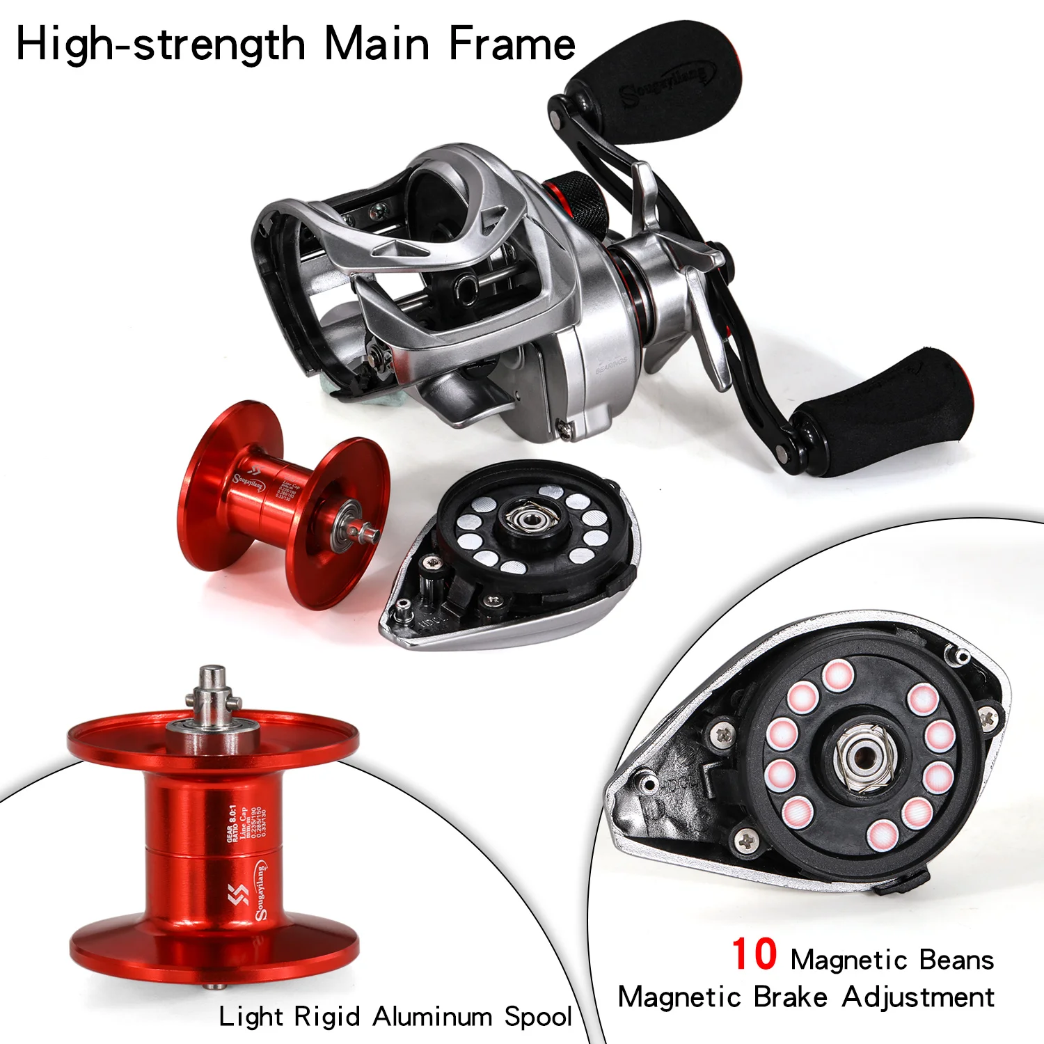 Sougayilang-carrete de Baitcasting ultraligero serie MAX 9 + 1BB 8,0: 1, sistema de freno magnético de arrastre máximo de 8KG, bobina de agua salada y dulce