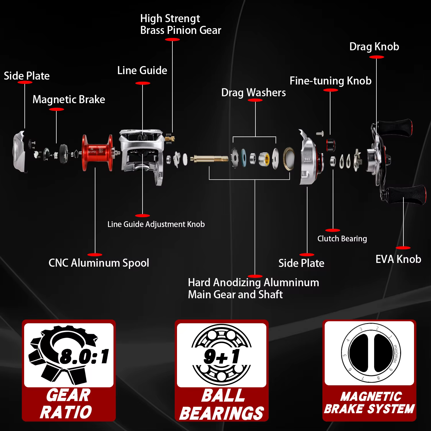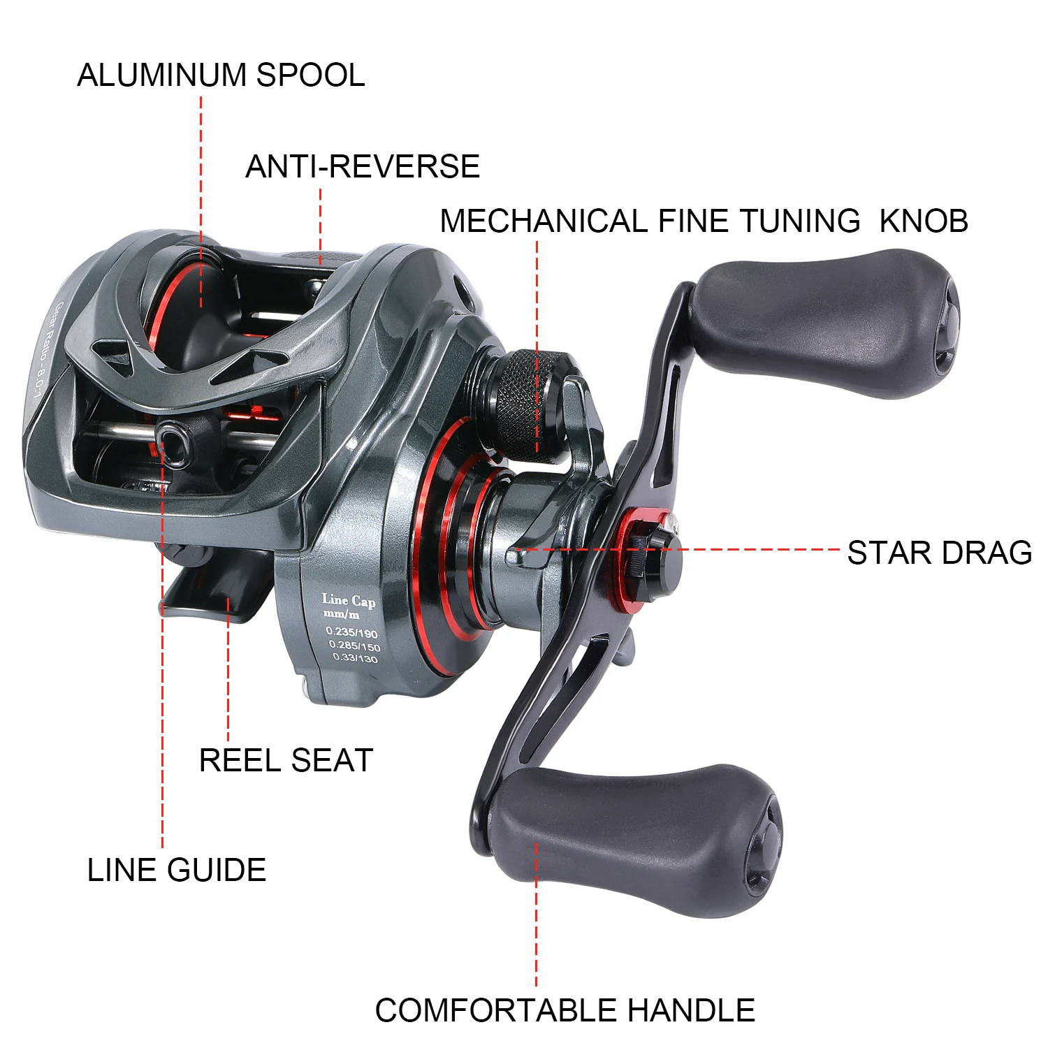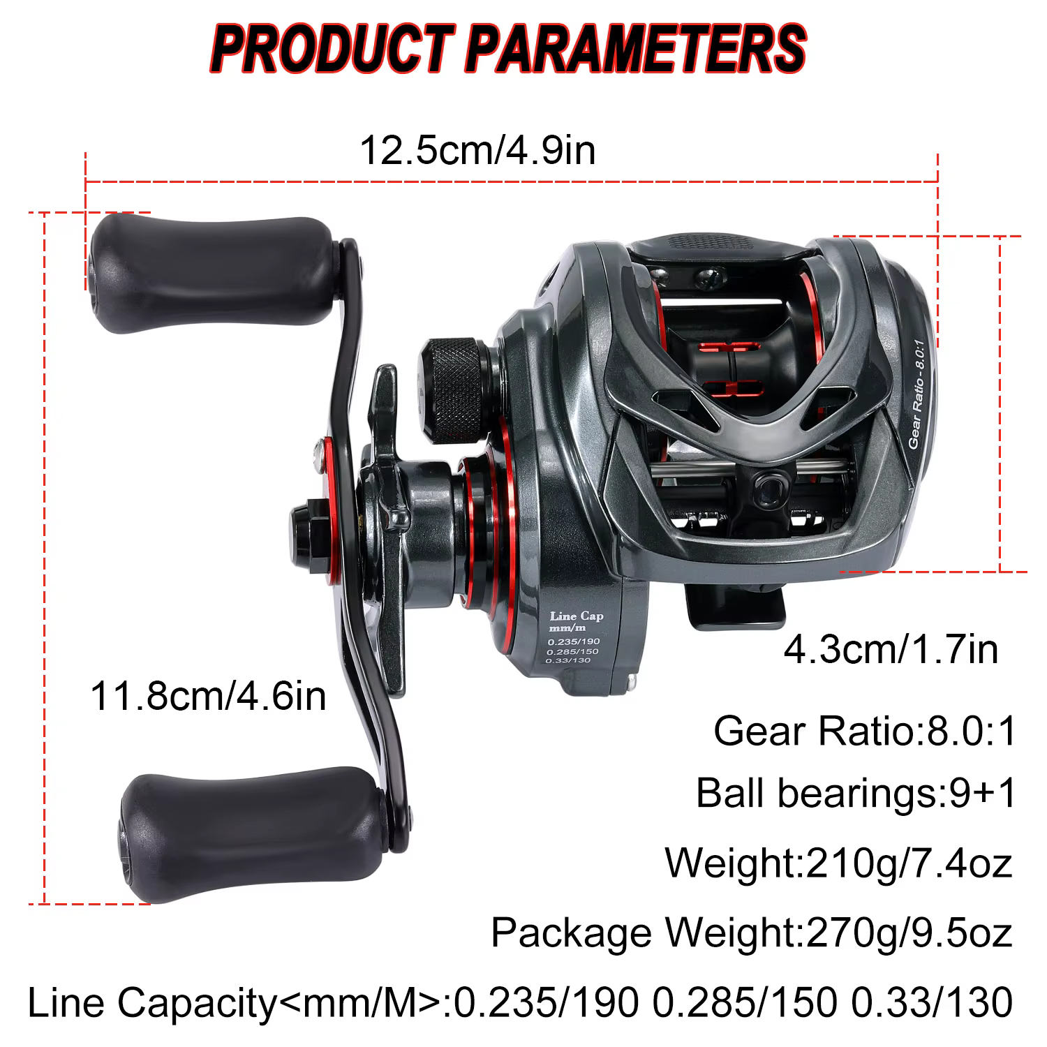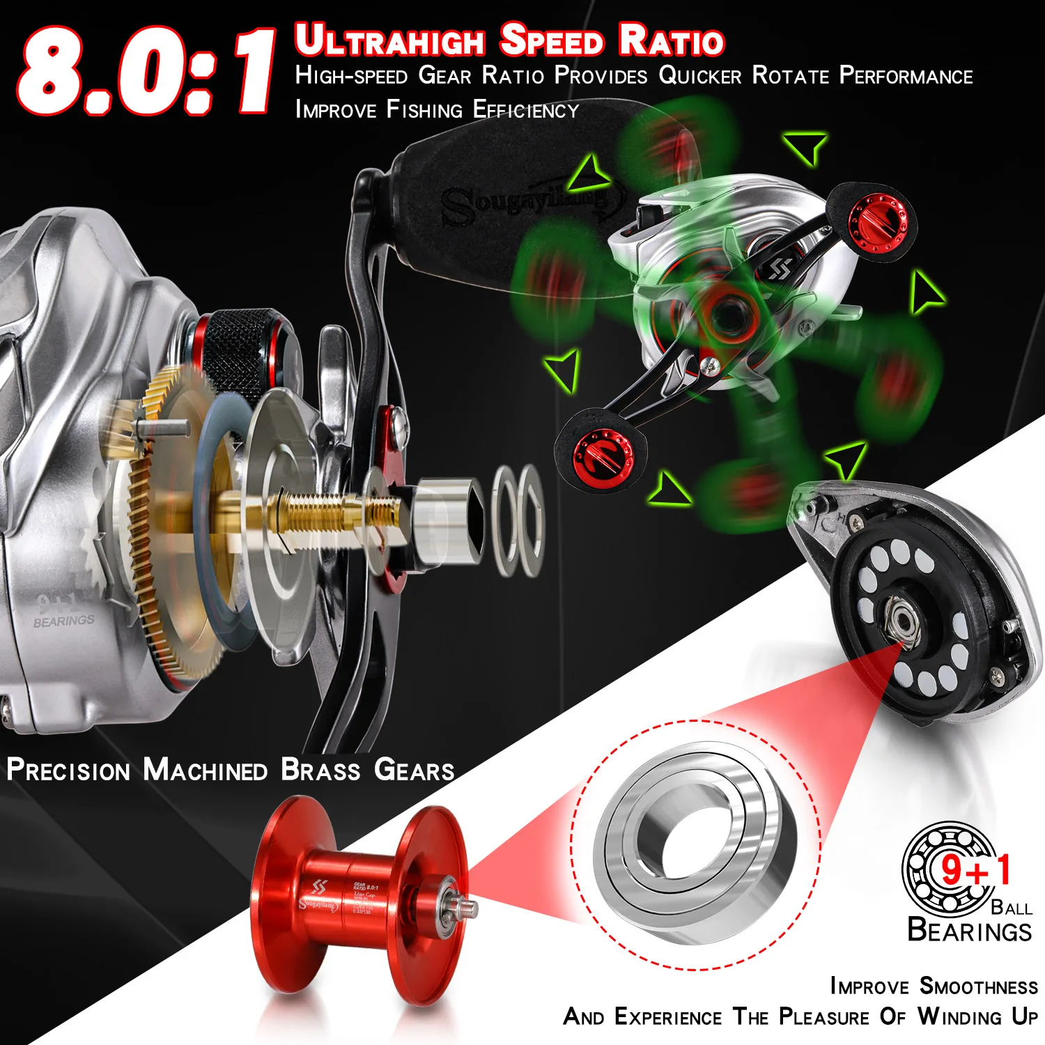 Sougayilang-carrete de Baitcasting ultraligero serie MAX 9 + 1BB 8,0: 1, sistema de freno magnético de arrastre máximo de 8KG, bobina de agua salada y dulce
