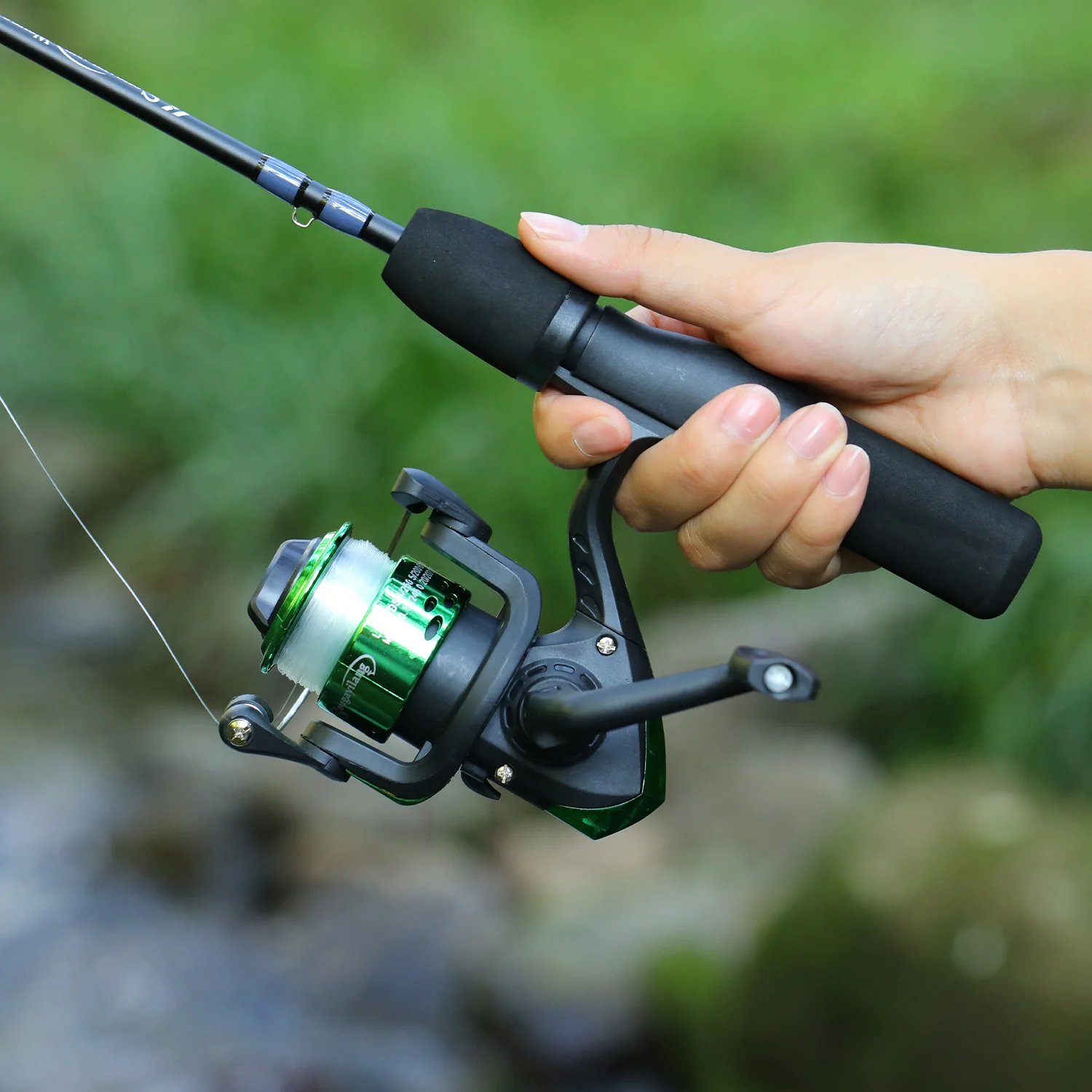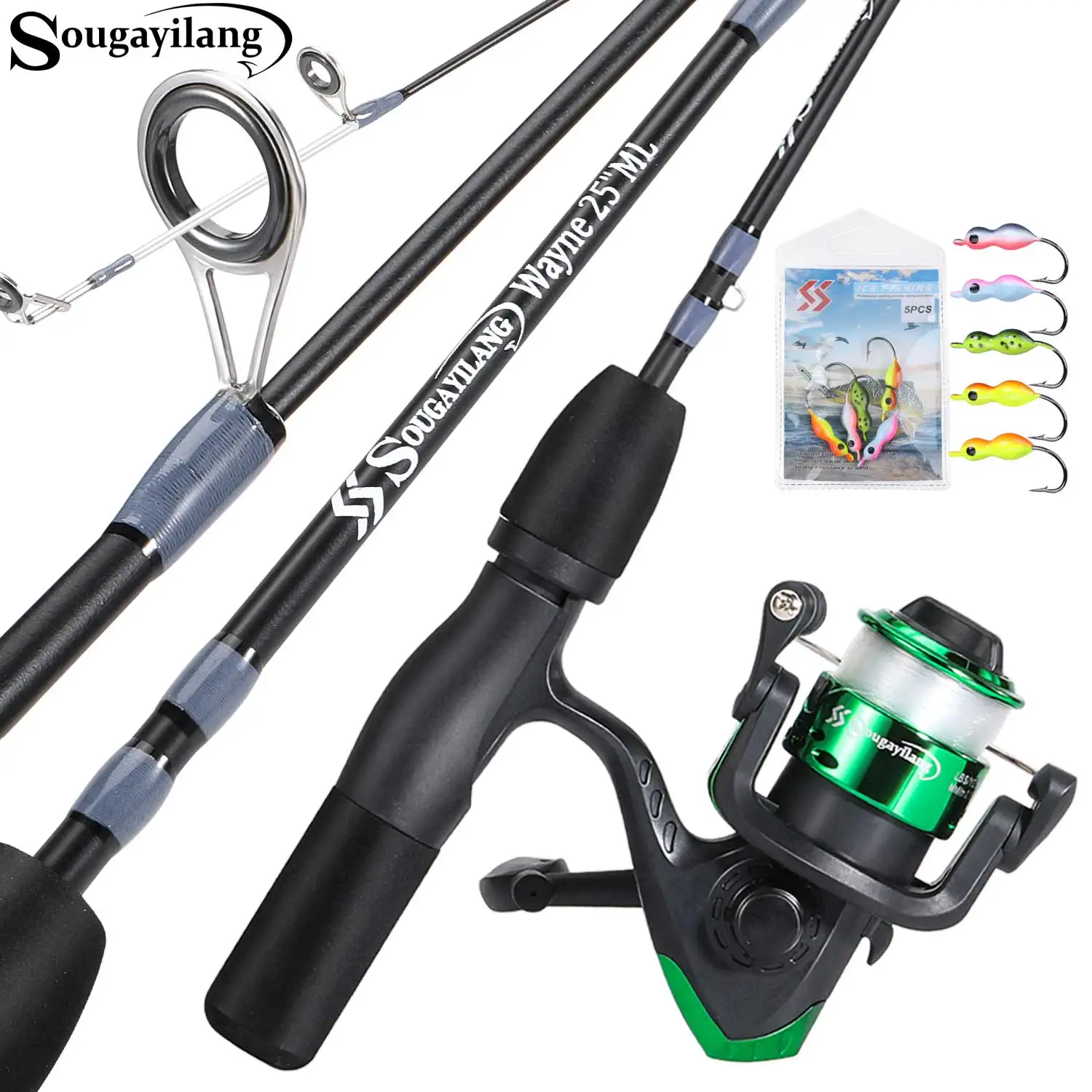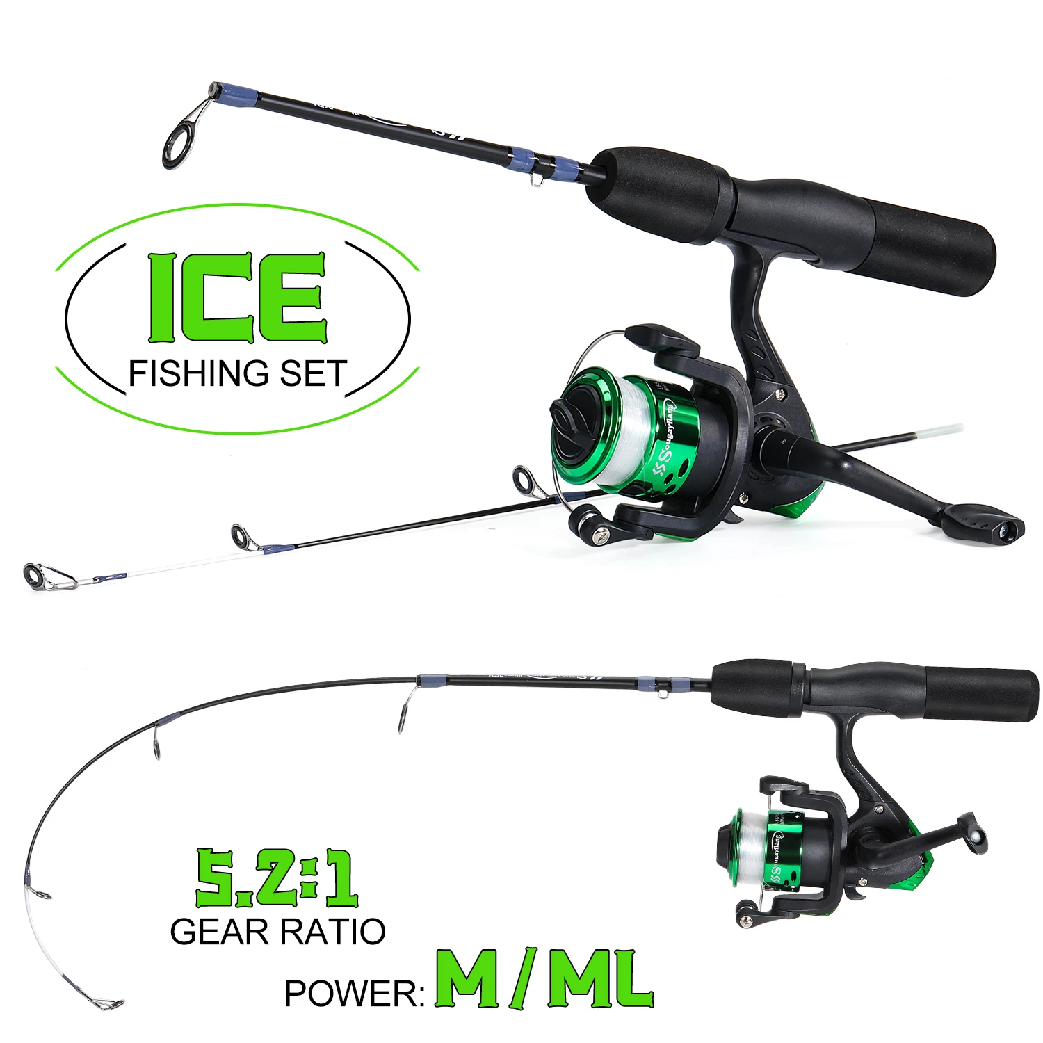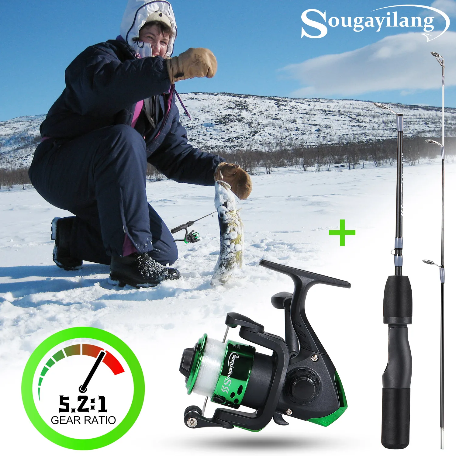 Sougayilang-carrete de caña de hielo Combo 63/66cm, caña de hielo de fibra de carbono alta y carrete giratorio de alta velocidad 5,2: 1, arrastre máximo 5Kg, pesca en hielo