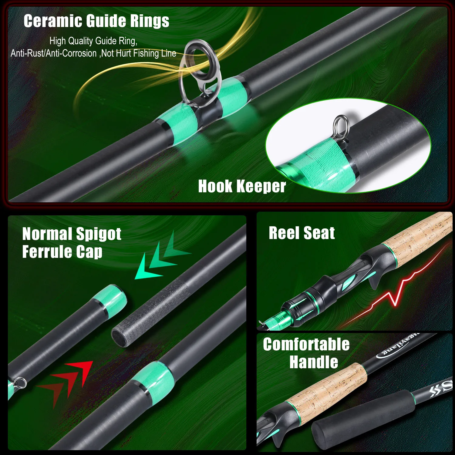 1.Diseño de longitud moderada: 1,8-2,1 metros, flexible y versátil, gran adaptabilidad, adecuado para una variedad de escenarios de pesca.