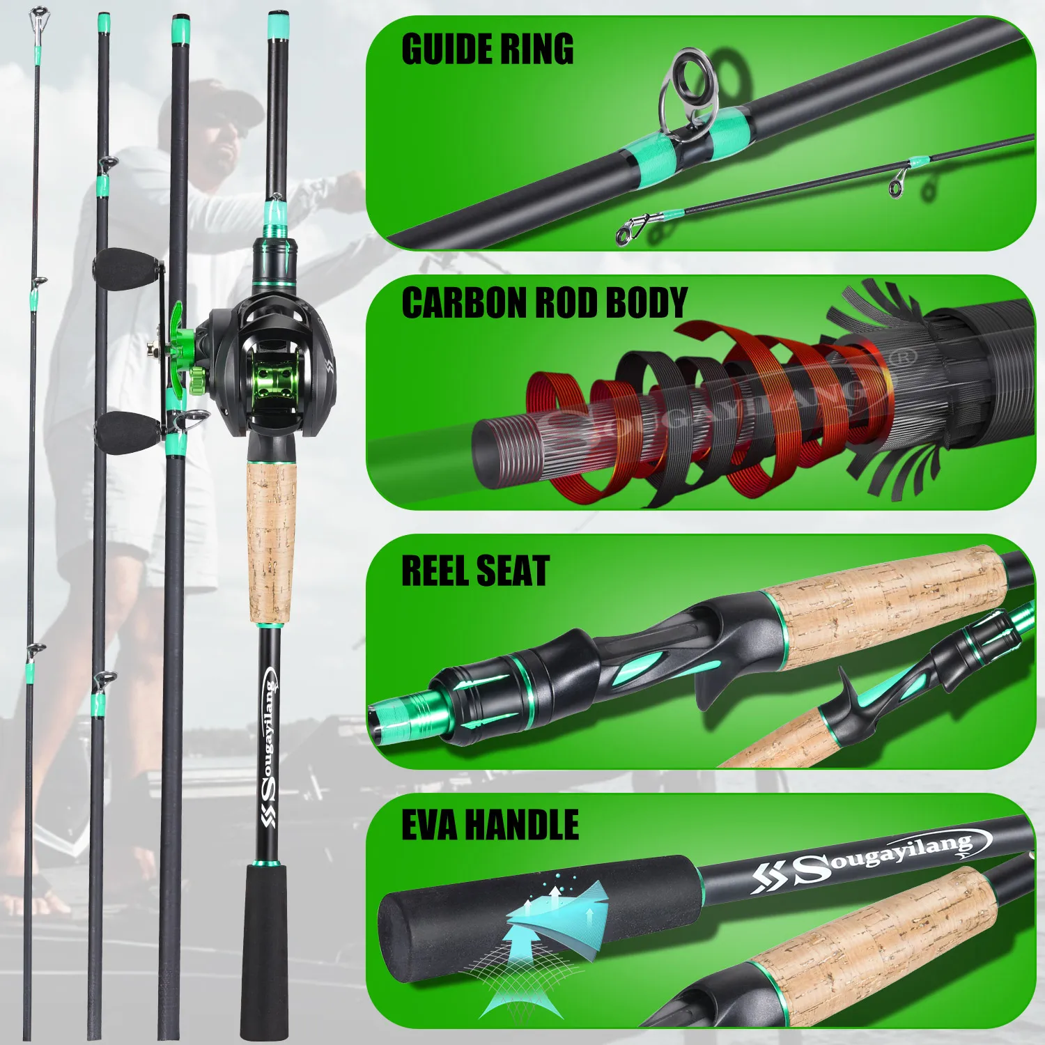 Sougayilang Casting caña de pescar carrete Combo 1,8-2,1m caña de pescar ultraligera de fibra de carbono y bobina de pesca de carrete de aluminio con relación de engranaje 7,2:1