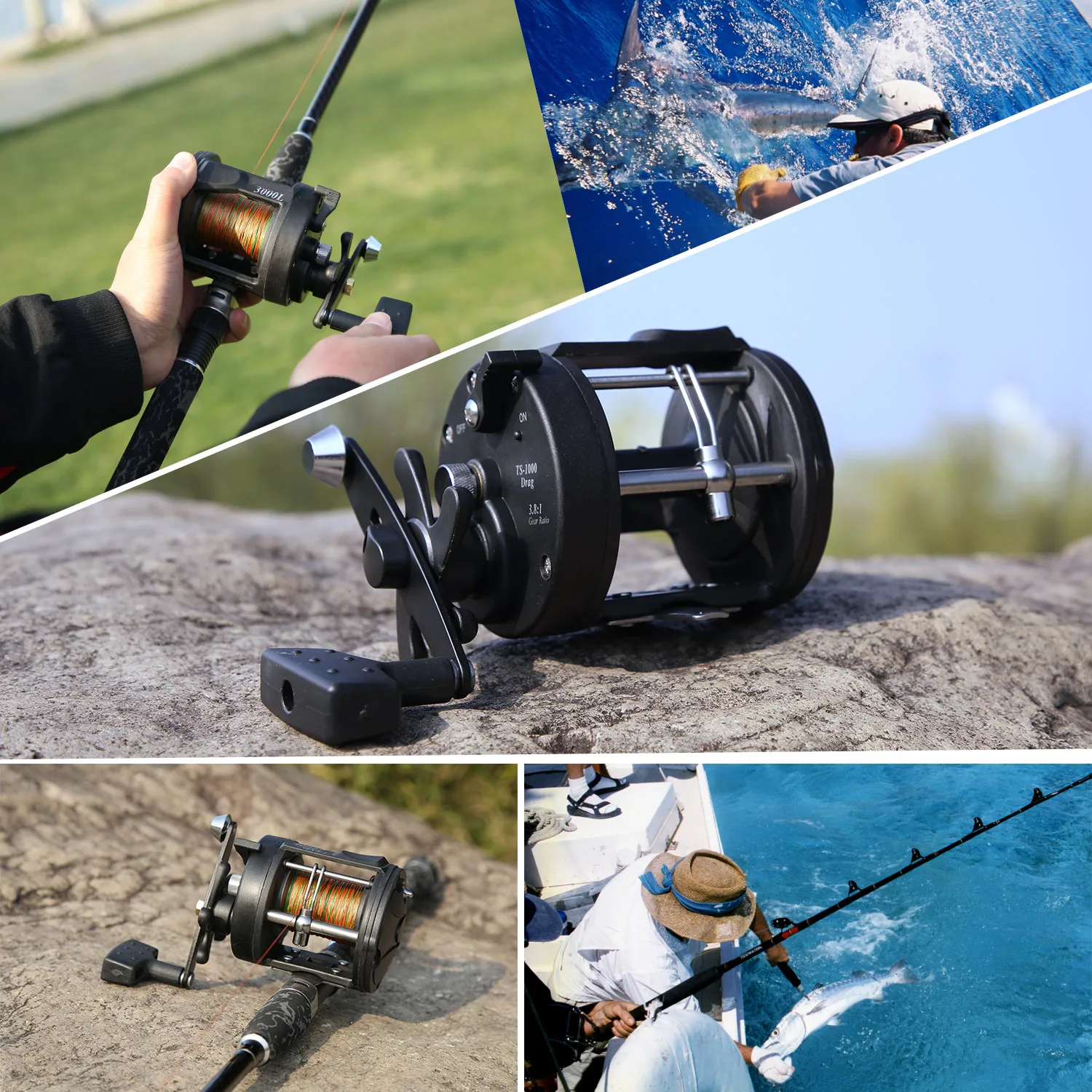 1. Engranaje de alta resistencia con sistema de arrastre de cinco estrellas, precisión y bajo ruido.Cojinete de bolas 2,1 + cojinete de embrague unidireccional, relación de engranaje 3,8: 13. Mango doble equilibrado con clicker de cebo ON/OFF.4. Excelente sistema de oscilación de línea. Herramienta perfecta para la pesca en el mar.Especificaciones: